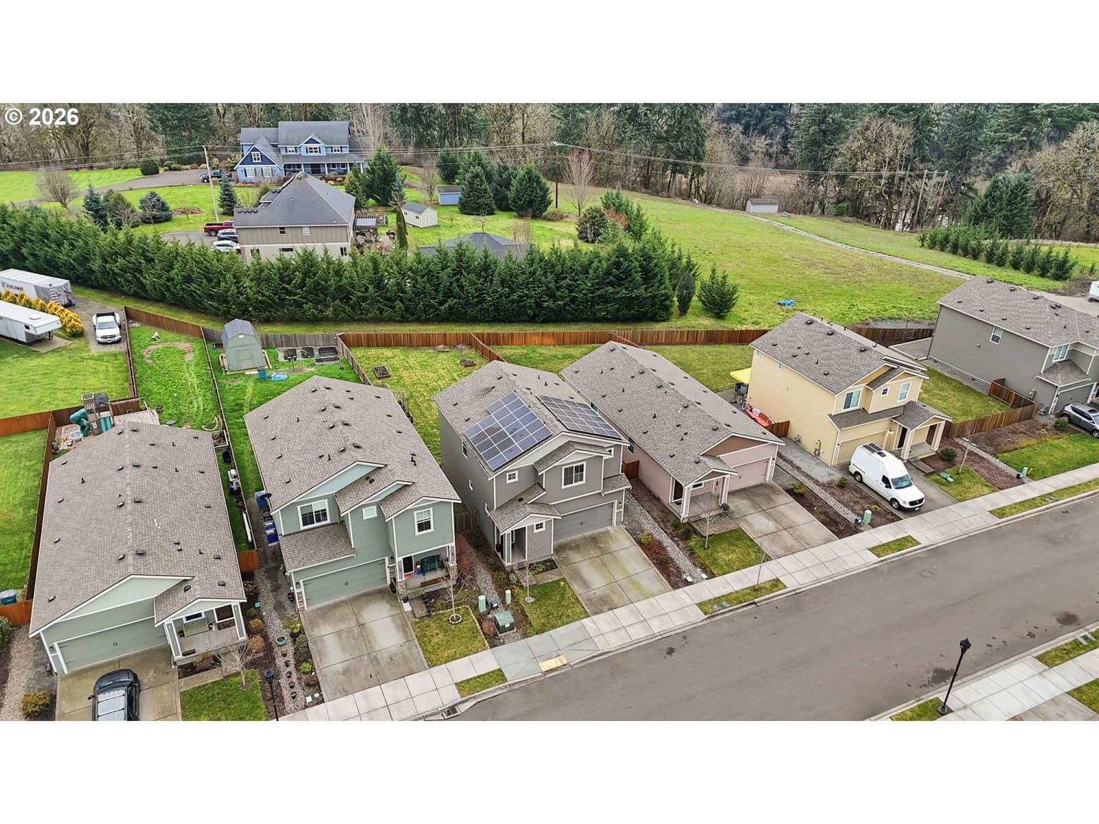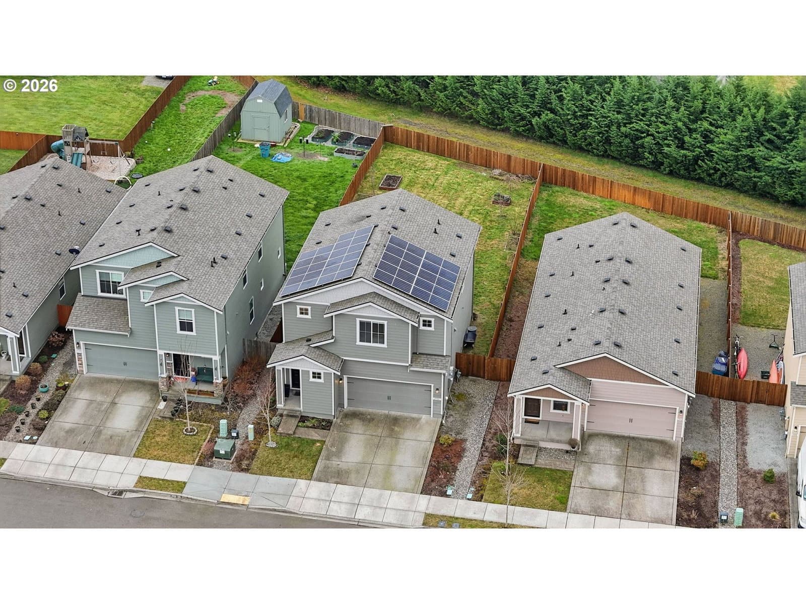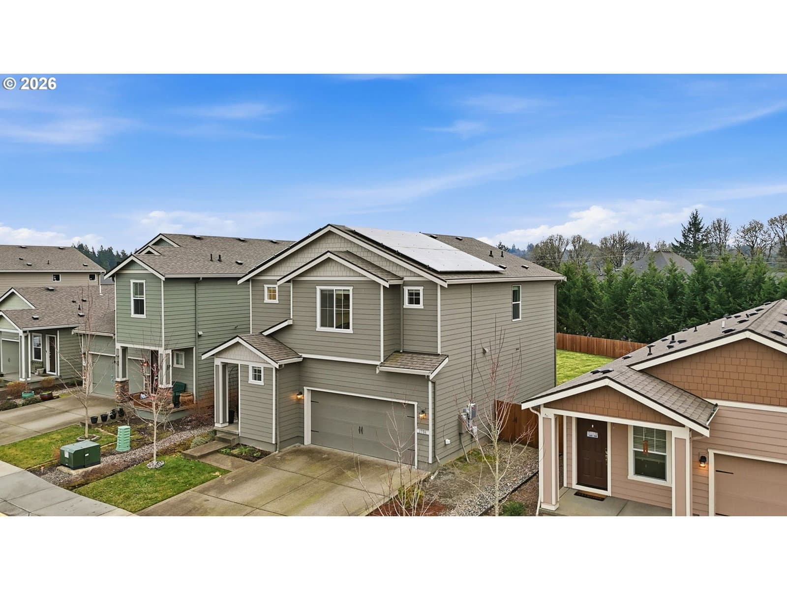 Light, bright, and beautifully finished, this newer two-story home offers space to spread out with a smart, comfortable layout in Riverside Estates. The main level is designed for gathering, with an open living and dining area and a stylish kitchen featuring granite counters, a center island, pantry, and stainless steel appliances.Upstairs, the spacious primary suite includes a walk-in closet and a private bath with double sinks and a walk-in shower, while additional bedrooms and a flexible loft area give you room for guests, hobbies, or a work-from-home setup. Quality finishes, ceiling fans, and thoughtful storage throughout make everyday living feel easy. Step outside to a fully fenced yard with room to relax, garden, or let pets play, plus a two-car attached garage and driveway parking for added convenience. Solar panels add to energy efficiency and come with the house at no additional cost to the buyer. Set in a friendly neighborhood within a thriving community and located in the La Center School District with quick access to local amenities, this home blends modern comfort with practical function in a setting you will love coming home to.