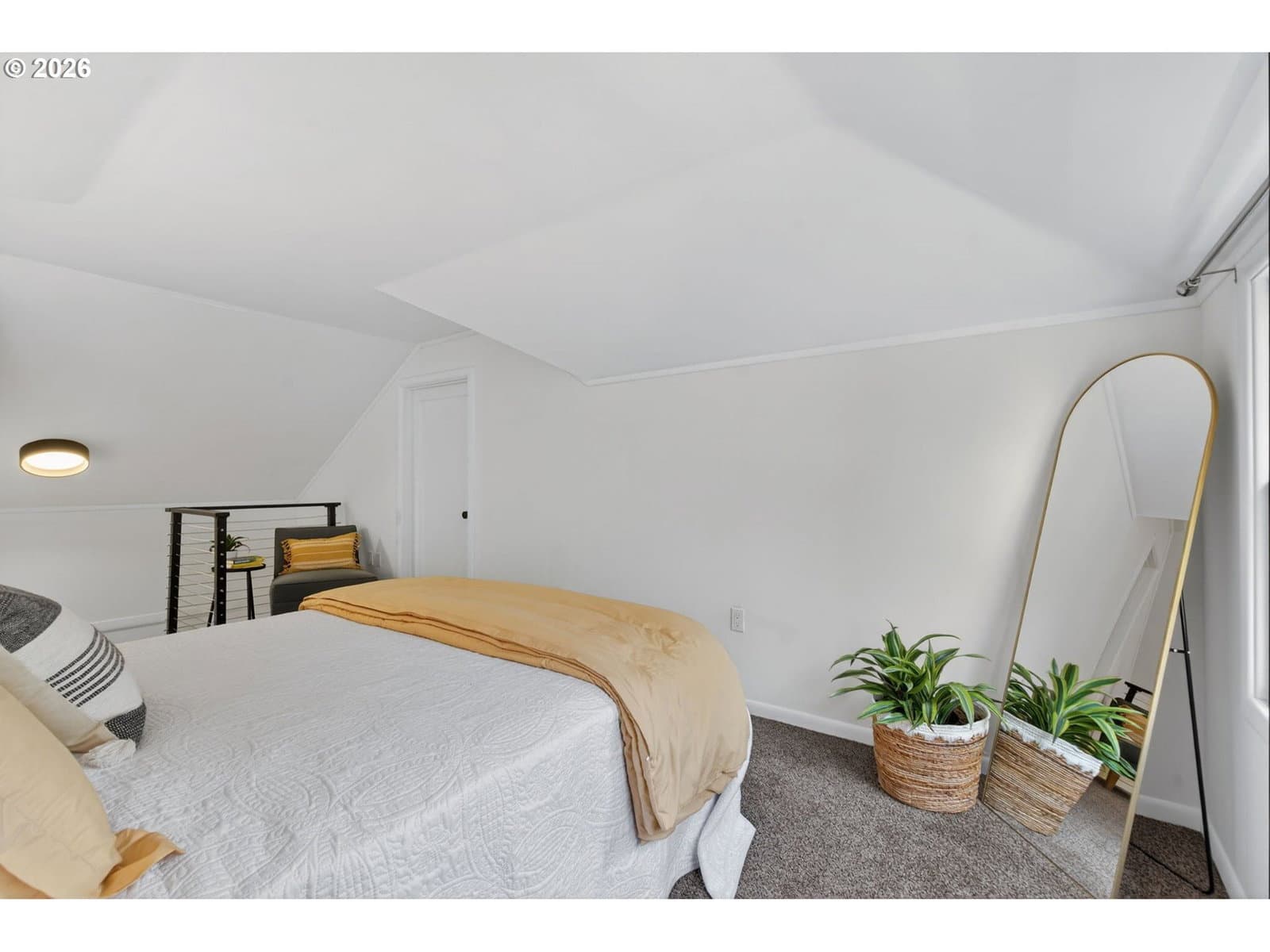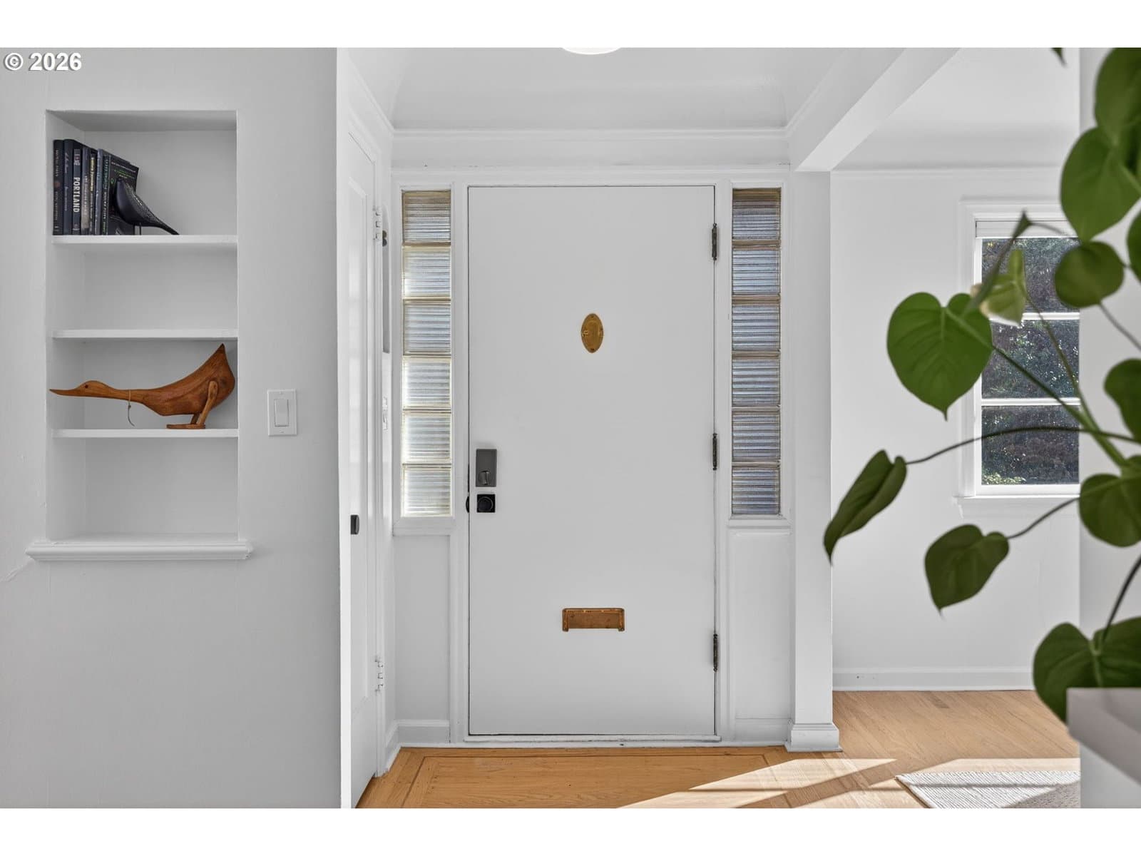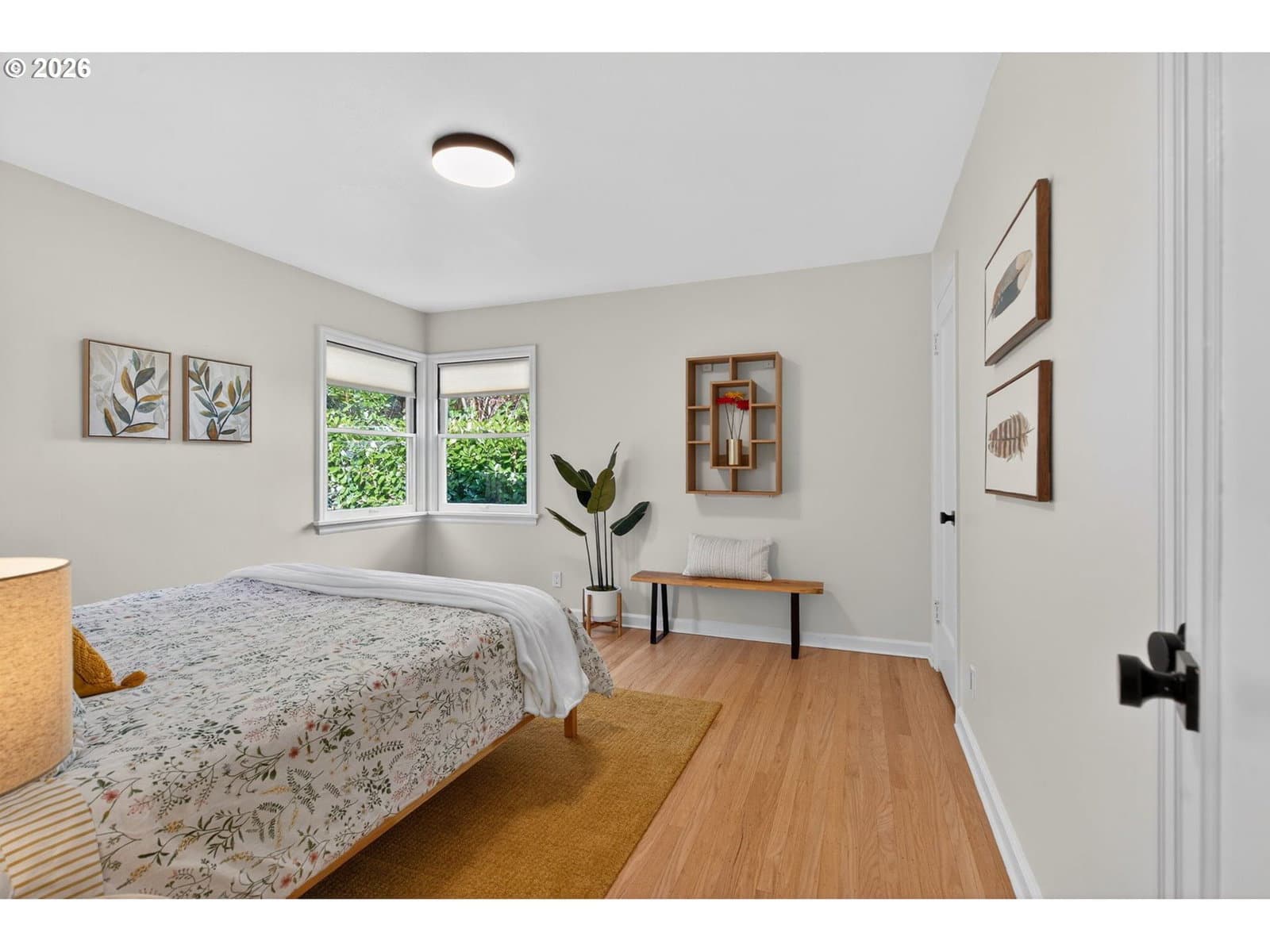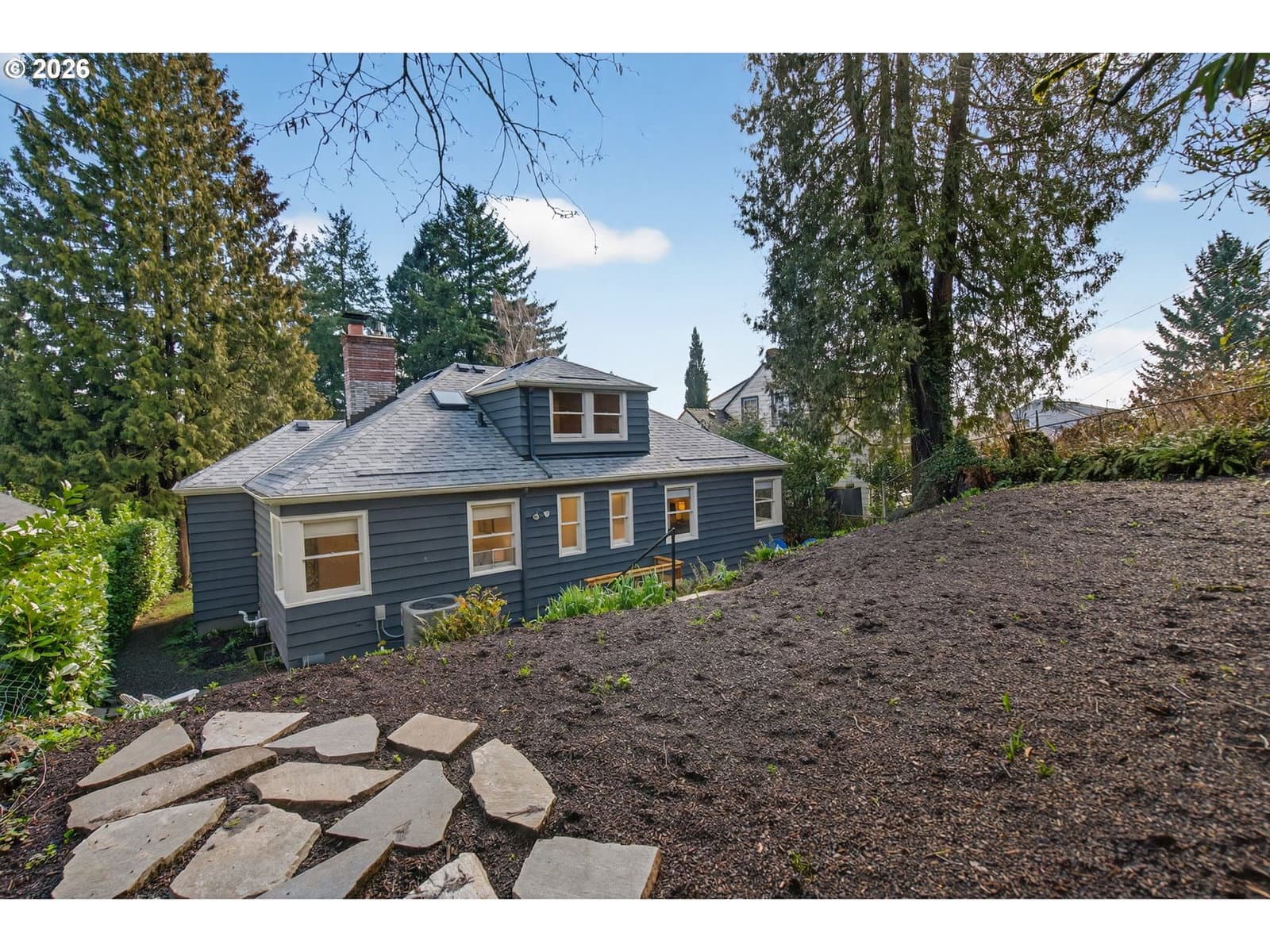 Positioned above the street, this rad 1940's bungalow delivers so much personality and a cool mid-century vibe. The pictures are great--but this one is even better in person! Generous windows let the natural light just pour in, giving the home an effortless, airy energy. Charming? Absolutely! Updated? You bet! Recent improvements include a new tear off roof, high-efficiency furnace and A/C, refinished hardwoods, a thoughtfully redesigned kitchen and main-floor bath, a refreshed half bath, and modern fixtures and hardware. Two generously sized bedrooms are on the main floor with excellent light and impressive closet space. The main floor bathroom is really quite beautiful. An additional hideaway bedroom suite upstairs that is private and unexpected. It has a walk-in closet and a sweet half bath. The kitchen. Ah, the kitchen. This beauty opens seamlessly to the dining area, creating an easy, social flow with clear sightlines into the living room. The sun-soaked coffee nook will be an instant favorite. Just off the kitchen, the mudroom/laundry room, with exterior access, includes a pantry and clever built-ins to keep daily life organized. Downstairs is a super cozy, carpeted family room. A separate bonus space with its own exterior entrance offers flexibility—studio, workshop, hobby room, or some serious storage. Low-maintenance terraced front yard with a lovely view, a back patio perfect for lounging, and a yard with space to garden or play. The two-car tandem tuck-under garage adds everyday convenience. Location-wise, it’s hard to beat. Steps to George Himes City Park, Hillsdale downtown and farmer's market, popular schools, OHSU, and highway access to pop downtown PDX. The neighborhood is awesome, and definitely one to explore.