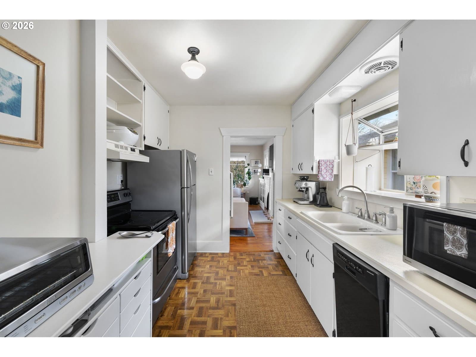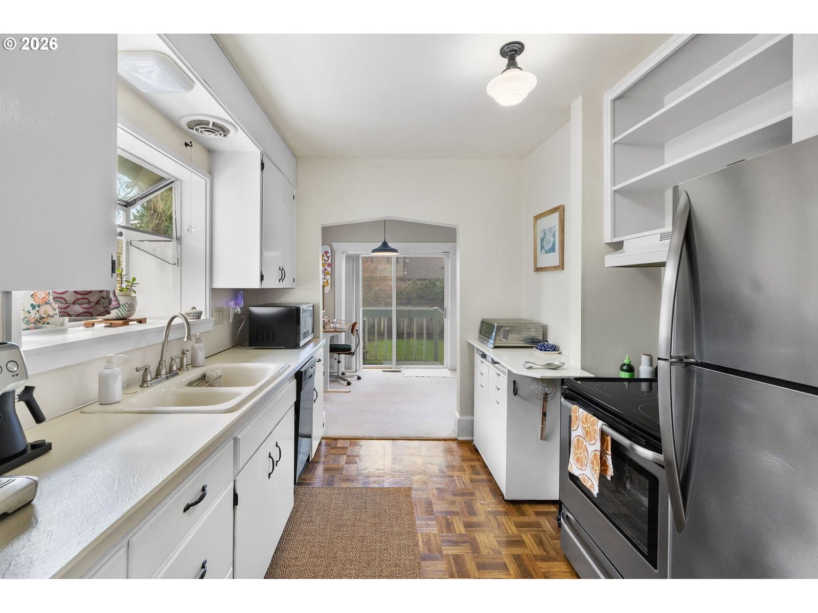This adorable NE Portland bungalow blends classic charm with an unbeatable, walkable location. Fresh paint and engineered hardwood floors brighten the living and dining rooms, while the cozy living room features a wood-burning fireplace with built-ins. Enjoy morning coffee on the spacious Trex front deck or unwind in the private backyard with patio and pergola.The primary bedroom is on the main level with fir hardwoods, multiple closets, and built-ins next to a generous bath. A partially finished basement adds flexibility with three additional bedrooms, an office, and ample storage. Recent updates include exterior paint (2021), furnace (2018), and water heater (2017).Set in a flat, highly walkable neighborhood just 0.3 miles to Rose City Park, close to Rose City Golf Course, the Rose City Food Carts on NE Sandy, and only 12 minutes to the airport.Cute, convenient, and perfectly Portland.