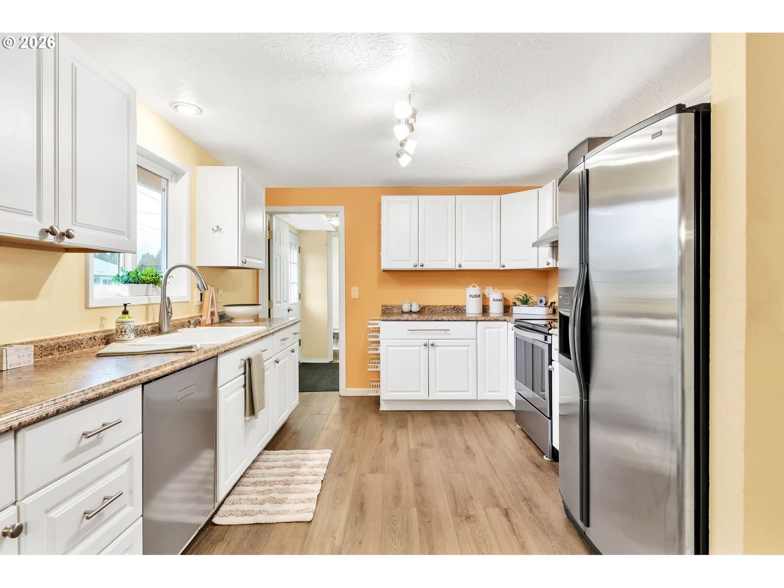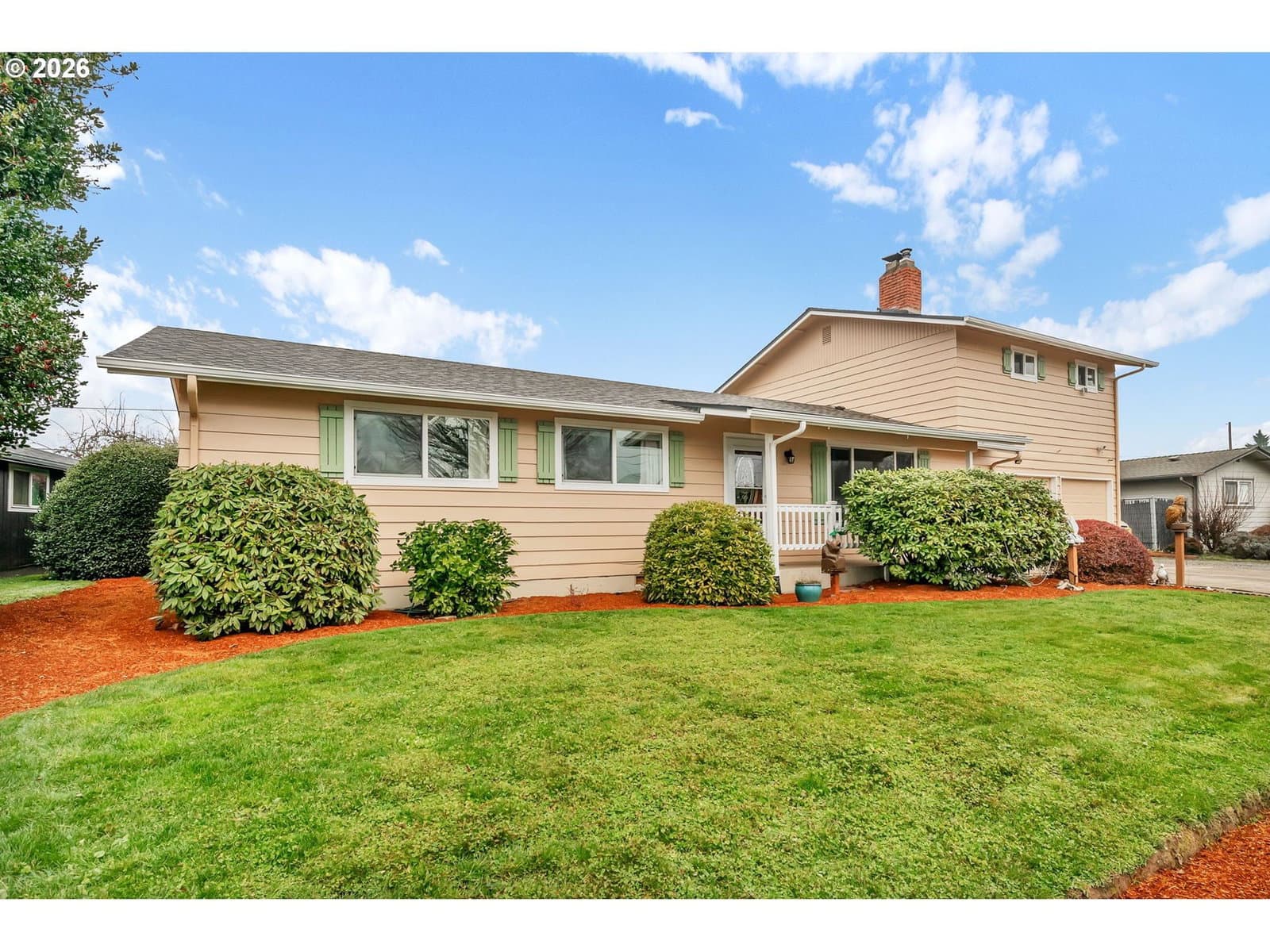 Delightful Ferry Street Bridge home in excellent condition with a flexible layout ideal for dual living. The main level features three bedrooms, while the upper level offers a private primary suite with its own living area—perfect for multigenerational living, guests, or work-from-home space.Updates include a newer roof, newer exterior paint and flooring. Pride of ownership is evident throughout. The spacious backyard offers a large lawn, gated raised-bed garden, and oversized tool shed. Extra-large gravel RV parking with full hook ups and an on-site RV dump provides exceptional convenience and versatility. This would be a wonderful multi-generational family home. Conveniently located within walking distance to Auzten and nearby amenities. Schedule your tour today!