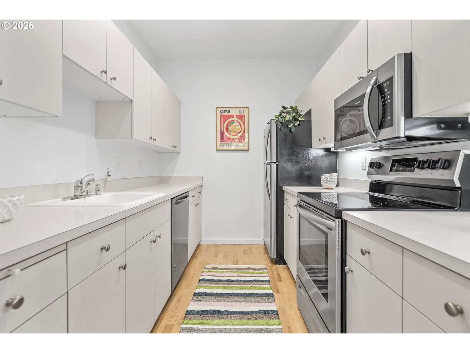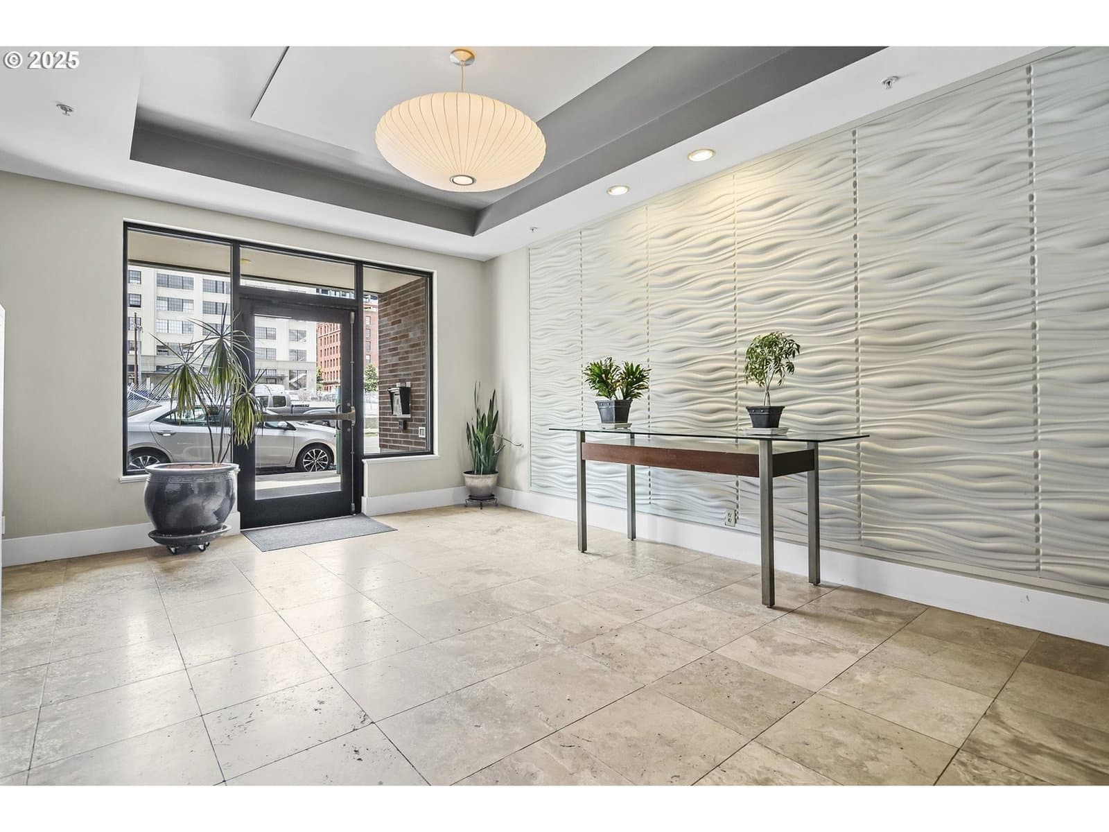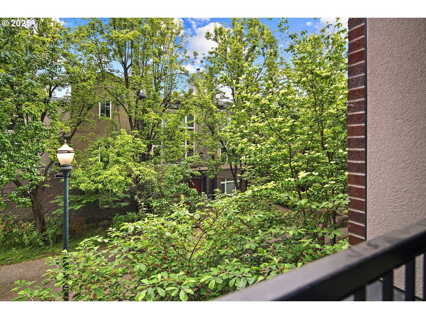 2 BEDROOMS w/ large closets! Stylish corner unit nestled in the heart of Portland’s vibrant Pearl District. Step into a light-filled sanctuary featuring wide-plank oak hardwoods, fresh interior paint, and updated appliances that blend comfort with modern flair. Expansive windows showcase tranquil views of the lush treed courtyard, along with west-facing city views.The open-concept living and dining space flows seamlessly to a private, covered balcony—ideal for your morning coffee or a relaxing evening glass of wine. This same balcony connects to the guest bedroom, creating a quiet retreat. The primary suite includes a spacious walk-in closet, while a full-size laundry closet with built-in shelving near the entry adds to everyday ease and functionality. Recent exterior remodel (2022) delivered new siding, energy-efficient windows and doors, plus updated decks and railings. Your deeded parking space in the secure garage, additional storage, and pet-friendly policy make city living truly turnkey. No rental cap in the building.Step outside and be moments from amazing dining, art galleries, boutique shopping, parks, and the streetcar. This is Pearl District living at its finest—stylish, effortless, and unmistakably Portland.