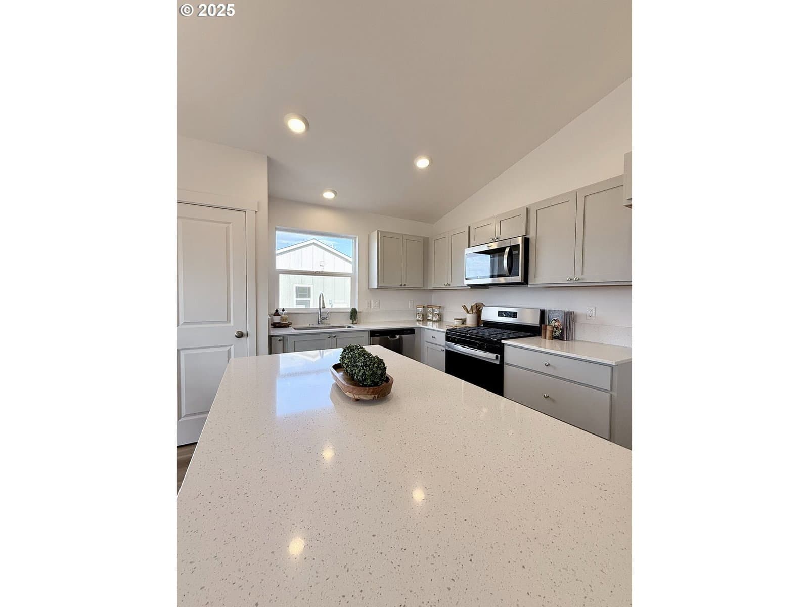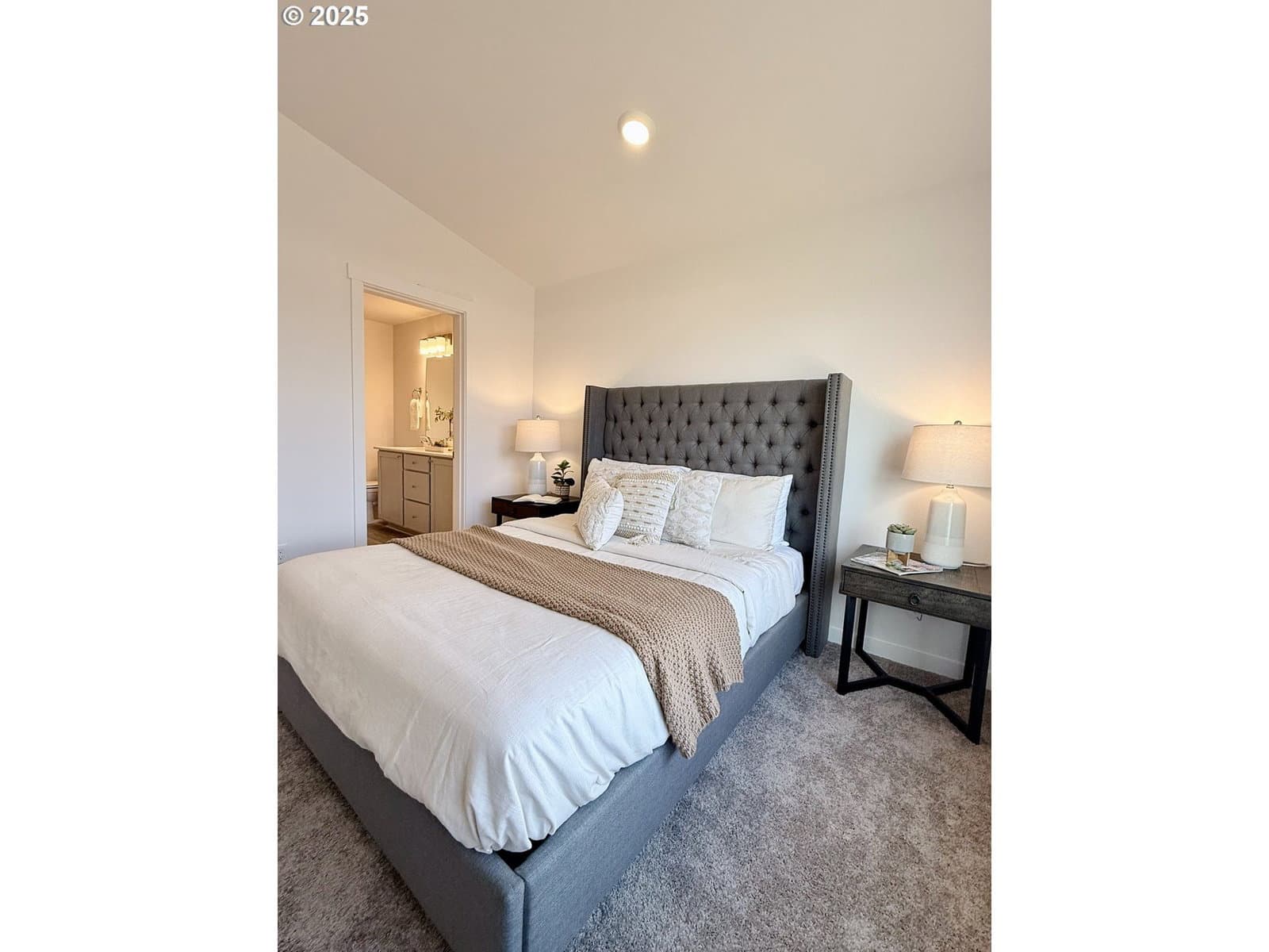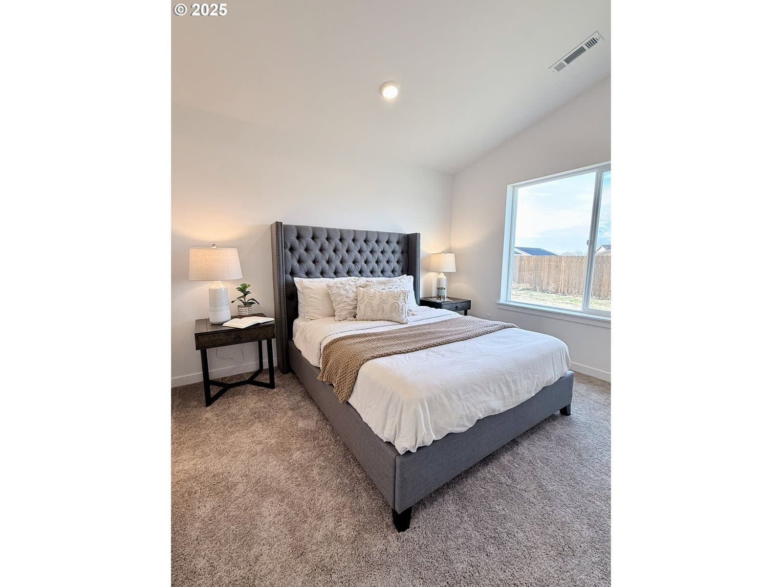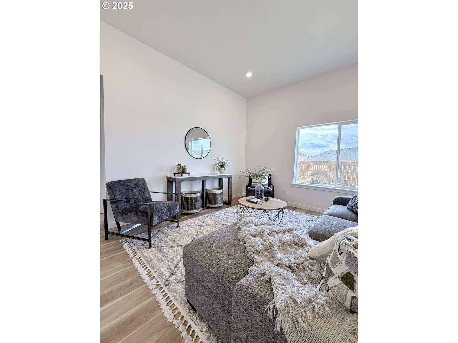 Now offering special builder incentives — ask your agent for details. The Poppy by Woodhill Homes is a bright, well-balanced Energy Star–certified home offering 1,258 sq ft of comfortable living in Boardman’s growing River Ridge Estates. Its popular split-bedroom design creates privacy for the primary suite while keeping the heart of the home open and connected. Vaulted ceilings and generous windows fill the main living space with natural light, while durable LVP flooring anchors the modern, open layout. The kitchen is designed for both function and gathering, featuring slab countertops, a large island with seating, pantry, and stainless-steel appliances that make everyday life feel easy. The private primary suite is tucked away and includes a walk-in closet, dual-sink vanity, and a step-in glass shower. Outside, a covered front porch and landscaped front yard create a welcoming first impression, while the square lot offers space to relax, garden, or design your ideal outdoor setup. Move-in ready, energy-efficient, and thoughtfully built ---> a standout opportunity in today’s market. HOA managed by Aperion Management Group. Quarterly assessment of $110.00. Onetime fees due at closing: Document fee - $250, Transfer fee - $75, CondoCerts fee - $20.
