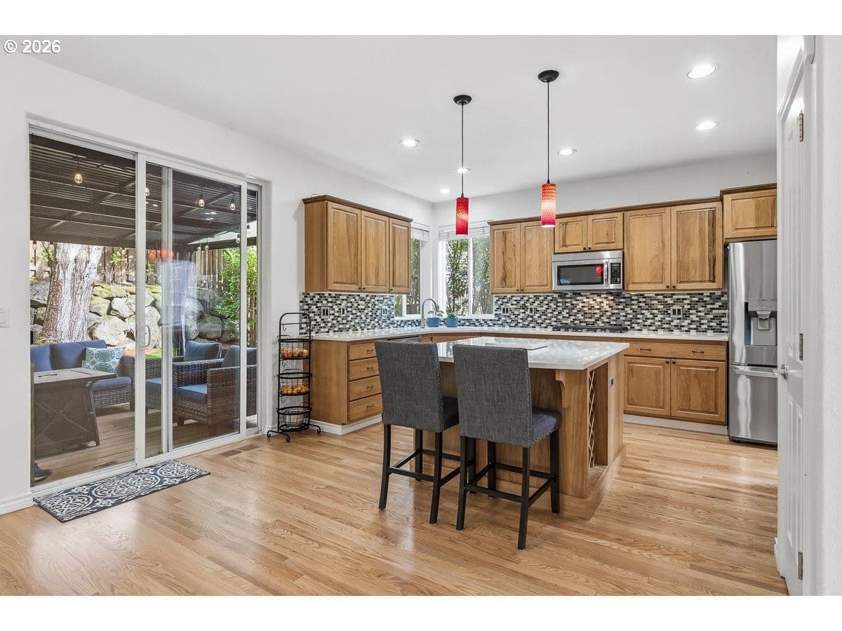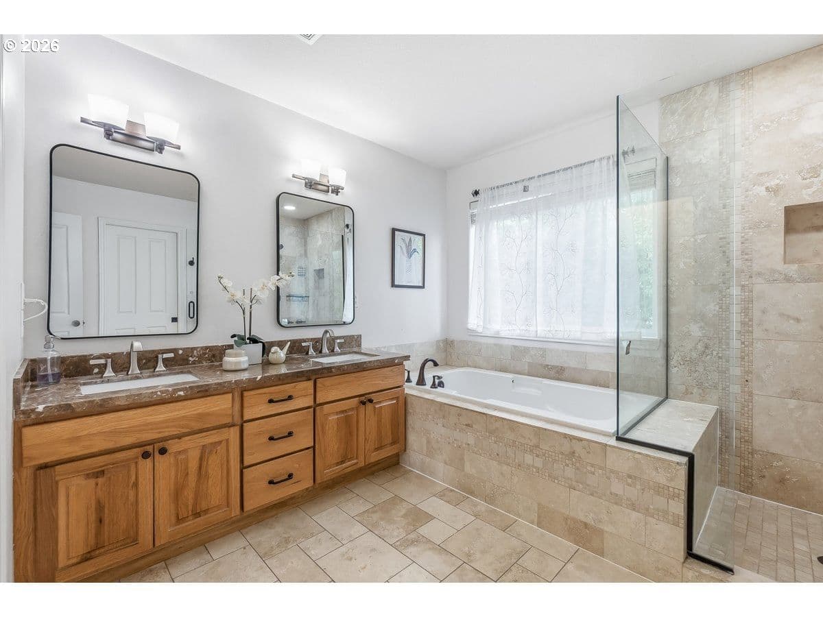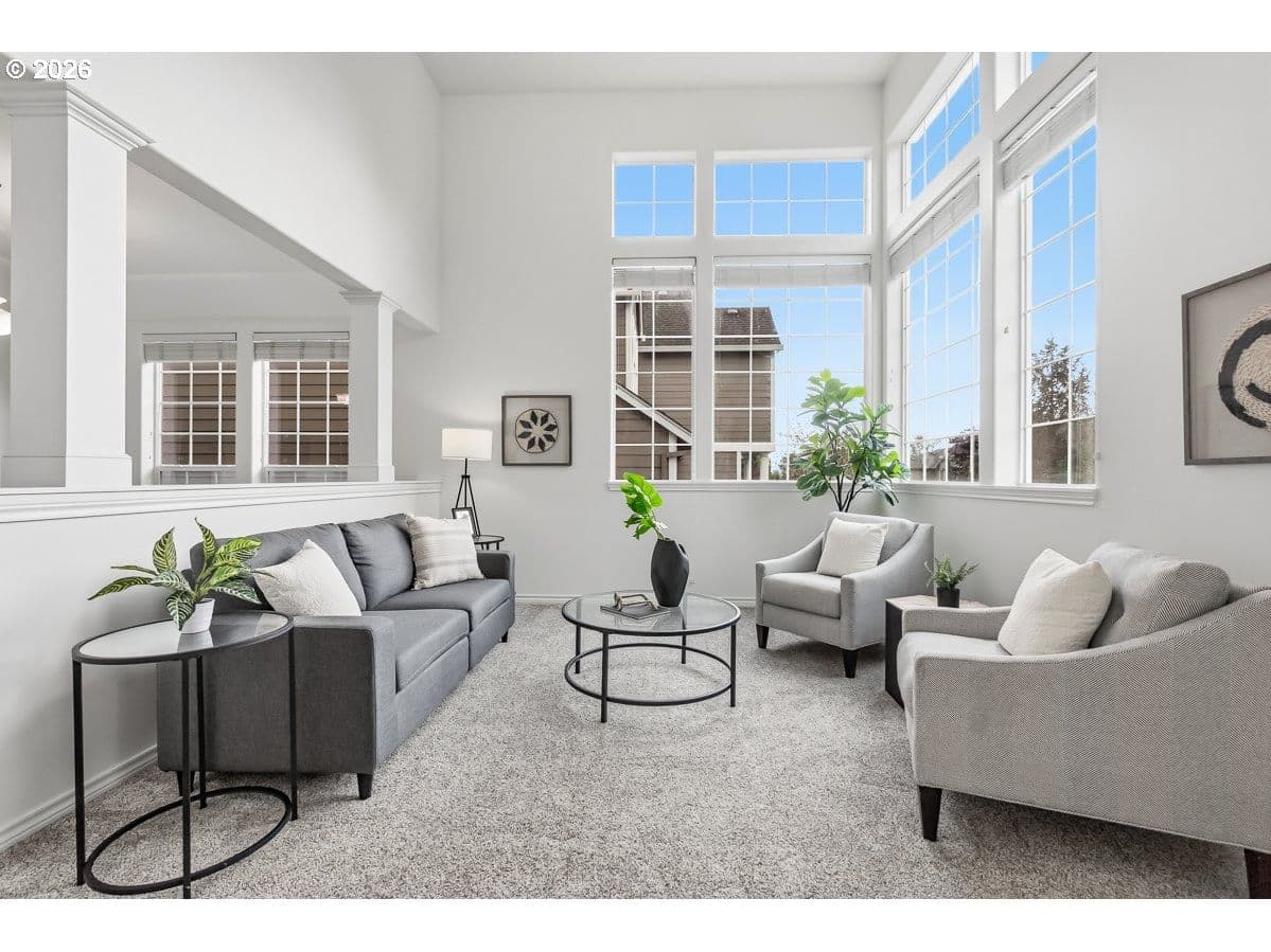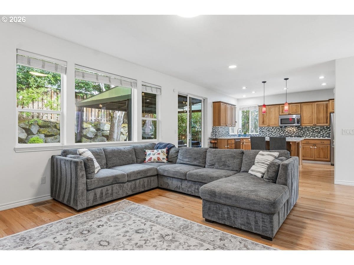 Open and spacious home in coveted Sterling Park, just blocks from Progress Ridge and Mountainside HS. Living room has 2 story windows and amazing natural light. Kitchen updated with quartz countertops and beautifully refinished hardwood floors. Family room is large and includes a lovely 2-sided fireplace that also accents the main floor office. 4 bedrooms plus a bonus room on the upper floor provide a very flexible and usable floor plan. Backyard includes a covered patio, mature plantings and easy care turf grass. Oversized 3 car garage! Working hot tub is included.Special Financing from SIRVA mortgage is available.