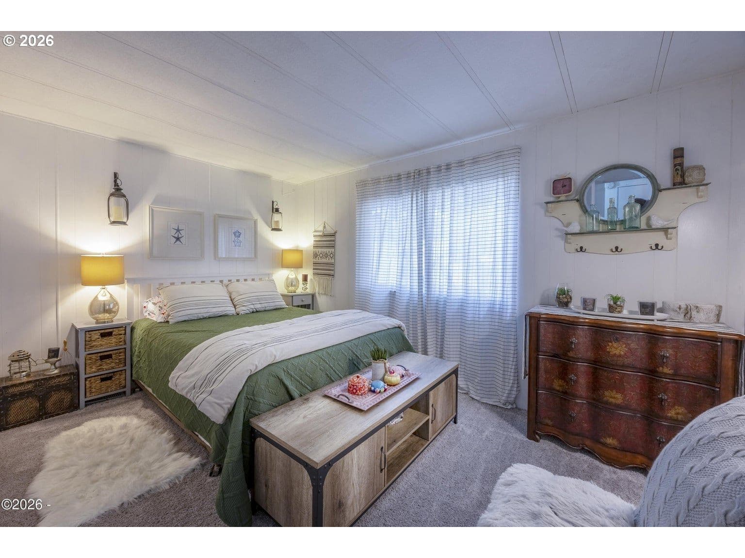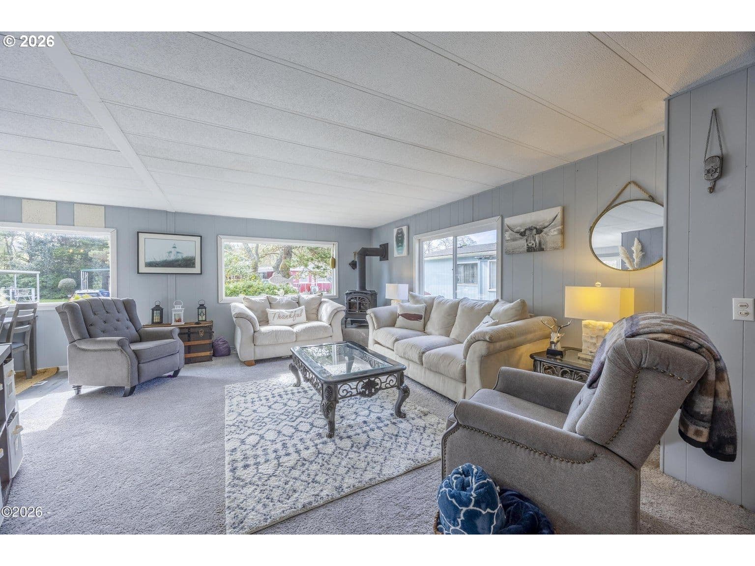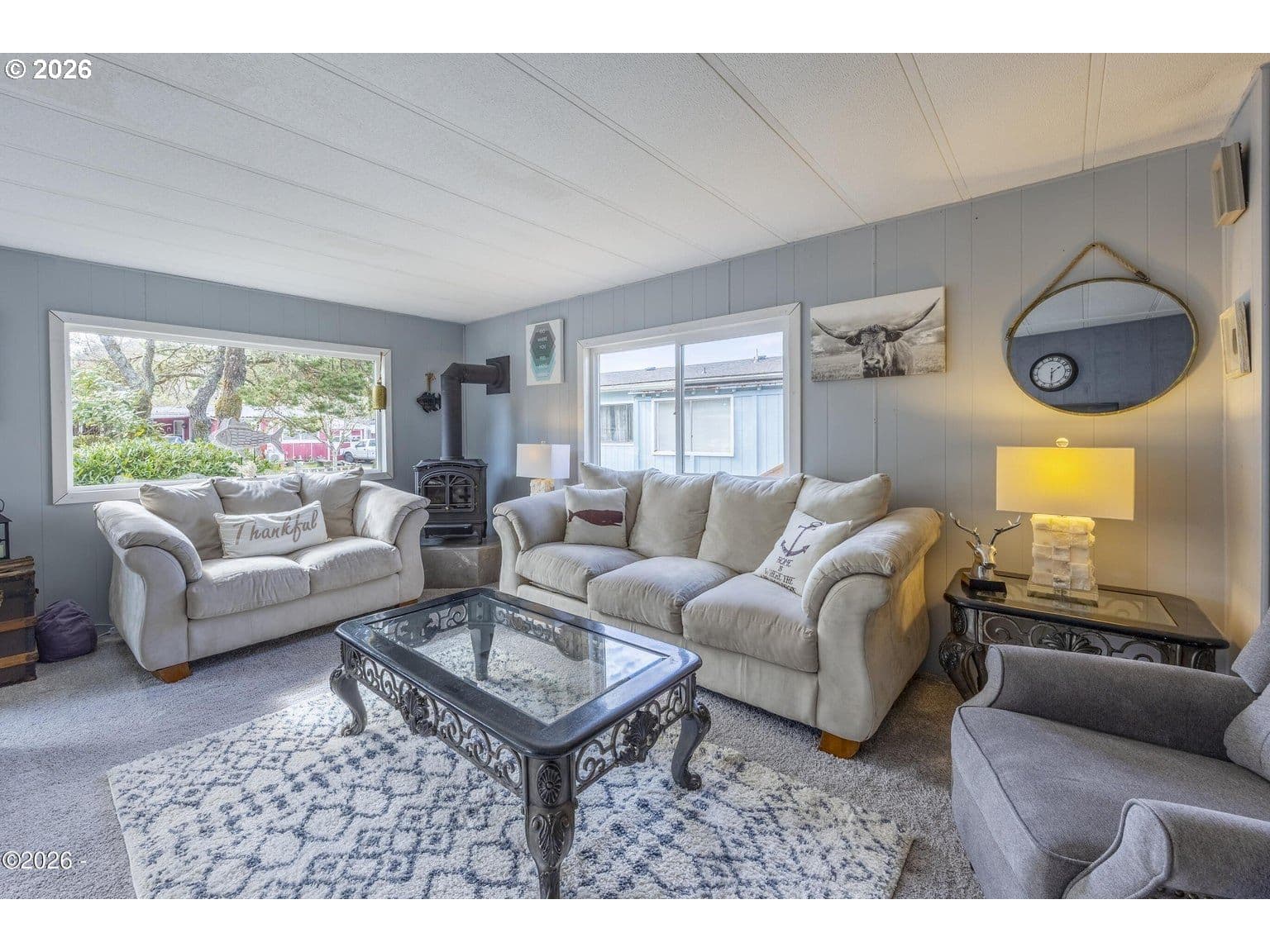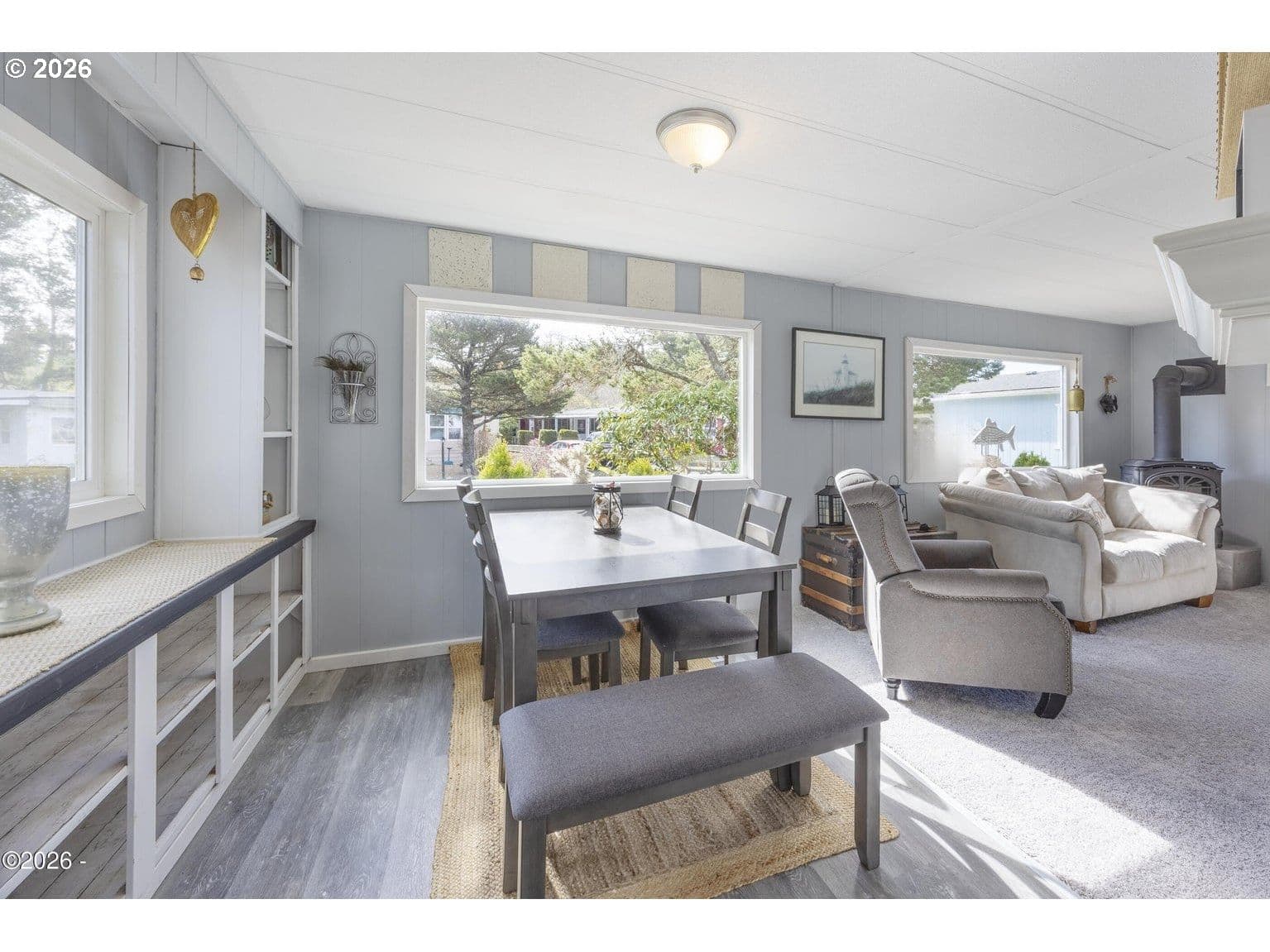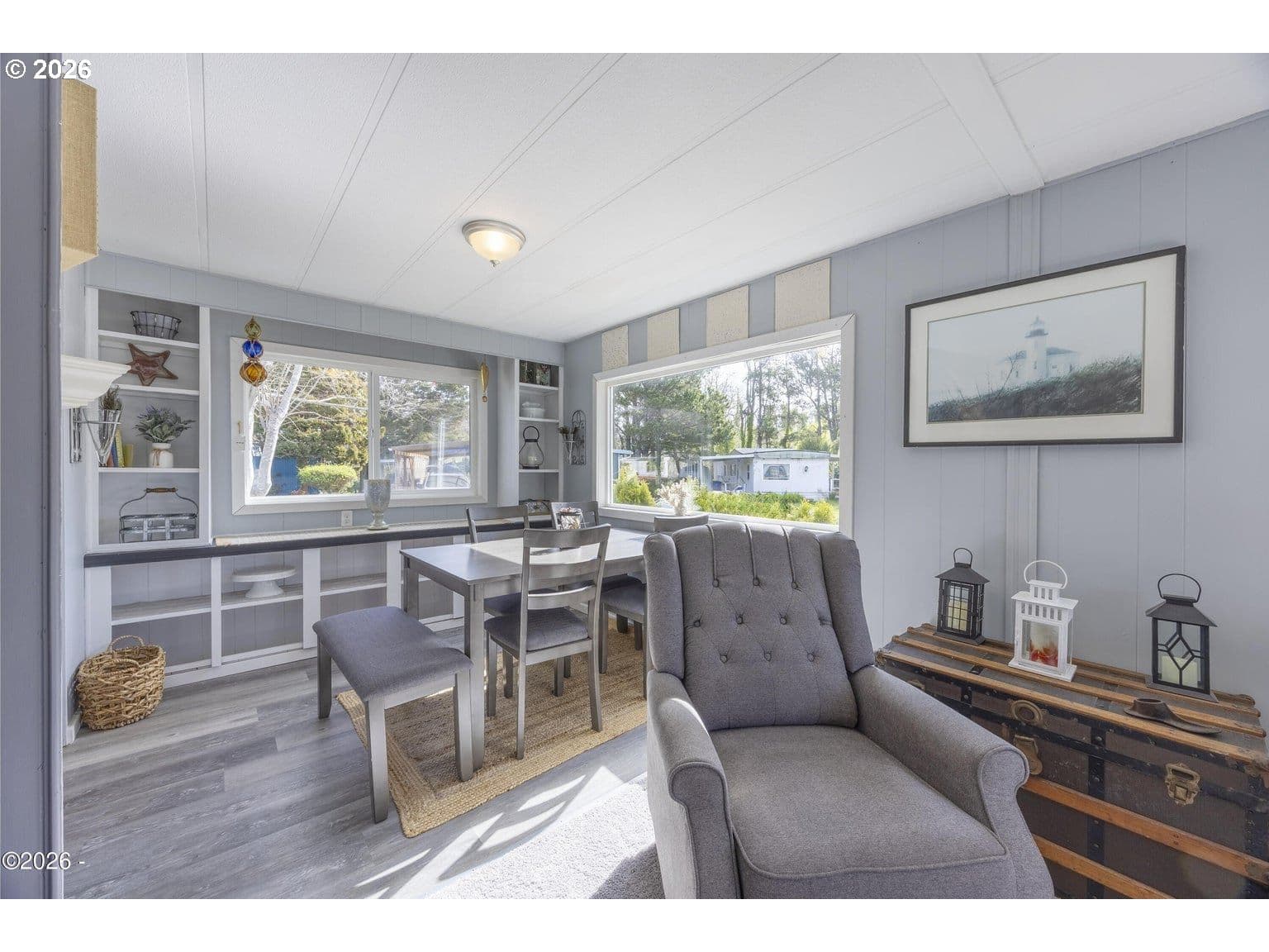 Welcome to Sea Whisper Sanctuary! This beautifully maintained home nestled in a sought-after 55+ community in the heart of historic Taft. Offered fully furnished and move-in ready, this 2-bedroom, 2-bathroom residence combines comfort, charm, and exceptional value — all at an incredibly low space rent of just $470/month, which includes water and sewer. From the moment you arrive, you'll notice the pride of ownership. Step onto the new front porch (2023) and into a home that has been thoughtfully updated throughout — featuring new wood flooring (2024), a fully remodeled bathroom (2024), a new HVAC system, and a 2022 water heater. The cozy gas fireplace adds warmth and character, while the new gutters (2025) offer peace of mind. This is a rare opportunity to own a truly turnkey home in a welcoming community — just bring your suitcase!