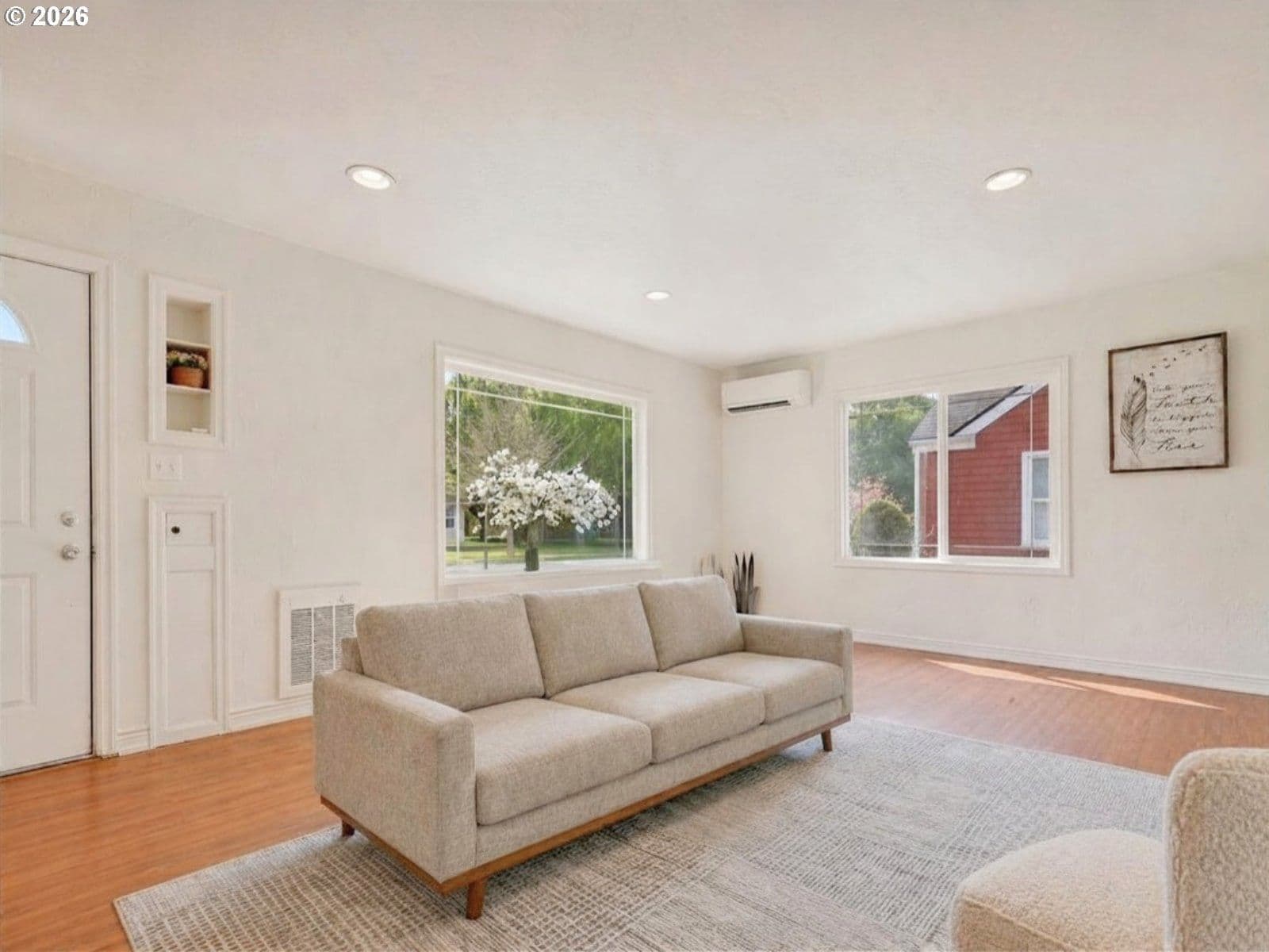 This adorable single-level home has been updated with durable Hardie Plank siding and vinyl windows. Inside, you'll find sleek laminate flooring throughout, complemented by modern can lighting that brightens every room. The utility room is conveniently located just off the kitchen.The long driveway leads to a spacious, detached 3-car garage that doubles as a workshop — an ideal space for car enthusiasts or anyone in need of extra storage and workspace. The newer roof offers peace of mind, and the location is just a short distance from Lake Sacajawea and major shopping areas. This home is truly a must-see!