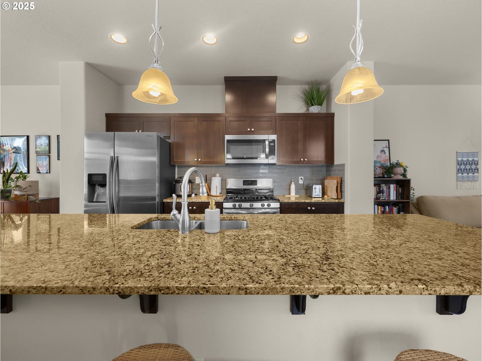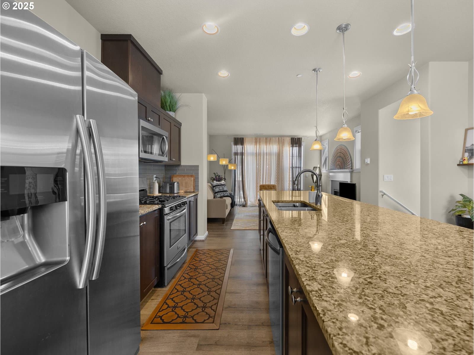 PRICE REDUCED TO SELL - - -Your Pristine, Like-New Sanctuary Awaits. Experience the best of Bethany living in this immaculate, like-new, original owner, end-unit townhome. Designed for modern living, this home offers a seamless blend of practical elegance and effortless comfort. The quiet, friendly neighborhood and top-rated Beaverton schools provide a peaceful backdrop for a vibrant life, with parks, trails, shopping, and dining all just moments away.The ground floor features a versatile carpeted private bedroom, full bath with durable tile flooring—perfect for a private guest suite, a dedicated home office, or multi-generational living. Upstairs, the main level is bathed in natural light and features an open-concept layout with luxurious LVP flooring and a cozy gas fireplace. The stunning kitchen is a chef's delight, complete with granite countertops, stainless steel appliances, and a massive center island with a large eat-at bar. A private balcony off the living room offers a tranquil spot for your morning coffee or a breath of fresh air.The upper level is a private sanctuary, featuring a serene primary suite complete with a dual-sink vanity and a spacious walk-in shower. A thoughtful layout offers a second sun-drenched bedroom, a convenient full-size laundry area, and a versatile loft—the perfect retreat for a home office, quiet reading nook, or creative space. A low HOA fee ensures a pristine, maintenance-free environment year-round, making this a rare find in the highly sought-after Bethany Creek Falls community.