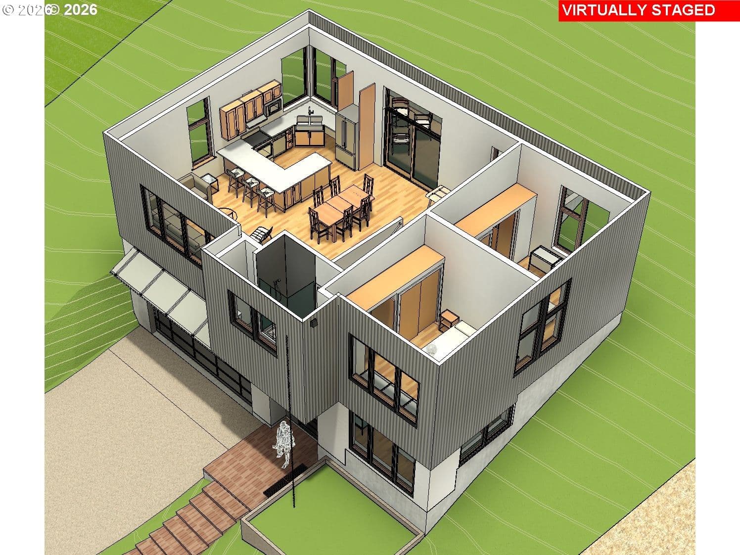 Some find more comfort with finding a flat lot on the valley floor on a public street with a patch of lawn and fenced from the neighbors on all sides and the sounds of the city. Some find comfort living in a forested neighborhood away for the public streets and sounds of the city. Look more closely at these moderately upslope lots and you will find them to be reasonably buildable in a private, quiet living style surrounded by acres of wooded nature in an established, well-maintained neighborhood. Studio e Architecture helped develop a mid-sized concept house customizable to a new owner's tastes to tuck into the hillside of these unique lots. The design captures the lots' natural features. We preserved a grove of healthy mature trees at the back of the lots. Enjoy all of the many acres of undeveloped forested properties in all directions while in the back yard and decks which are permanently preserved as open, unfenced common areas owned and managed by the planned communities developed /built years ago. There is lots of unimpeded connected common property for wildlife. Filtered views toward the city and beyond. The concept house design is included for an owner to adjust /finish to their lifestyle; or just to illustrate the design possibilities as an example of the potential to build an affordable home in the desirable Southwest Hills. We have been building the previous phases of Colony Oaks over the years and can assist with finishing designs and building. Surrounded by Planned Communities of Eugene's desirable South Hills developments. Forests, wildlife in open preserved spaces with continuous nature trails along Timberline Creek then to miles of Eugene's Ridgeline Trail system The lots are on a private dead-end street to be owned and managed by the HOA with monthly assessments of the lot owners. Court Ridge is a de minimus planned community with no other common areas or facilities owned or maintained by the HOA.