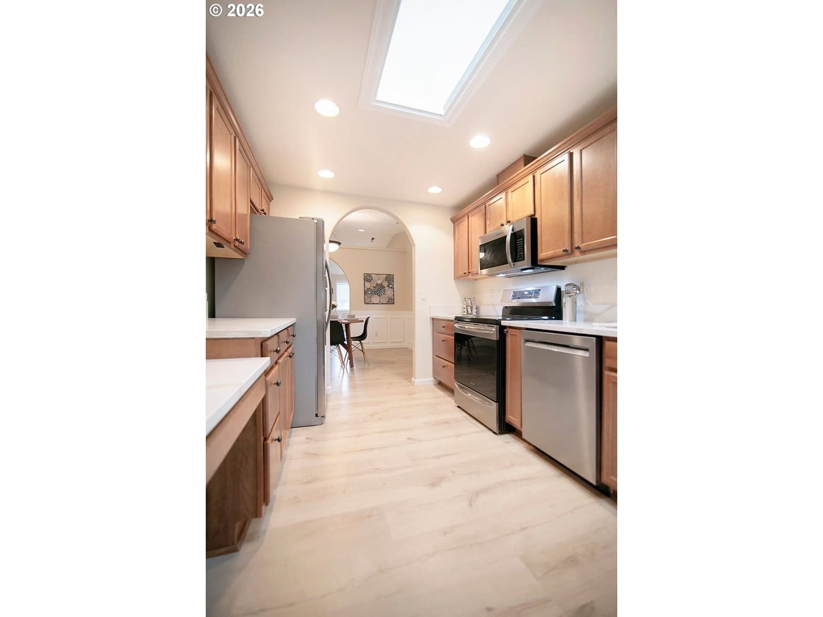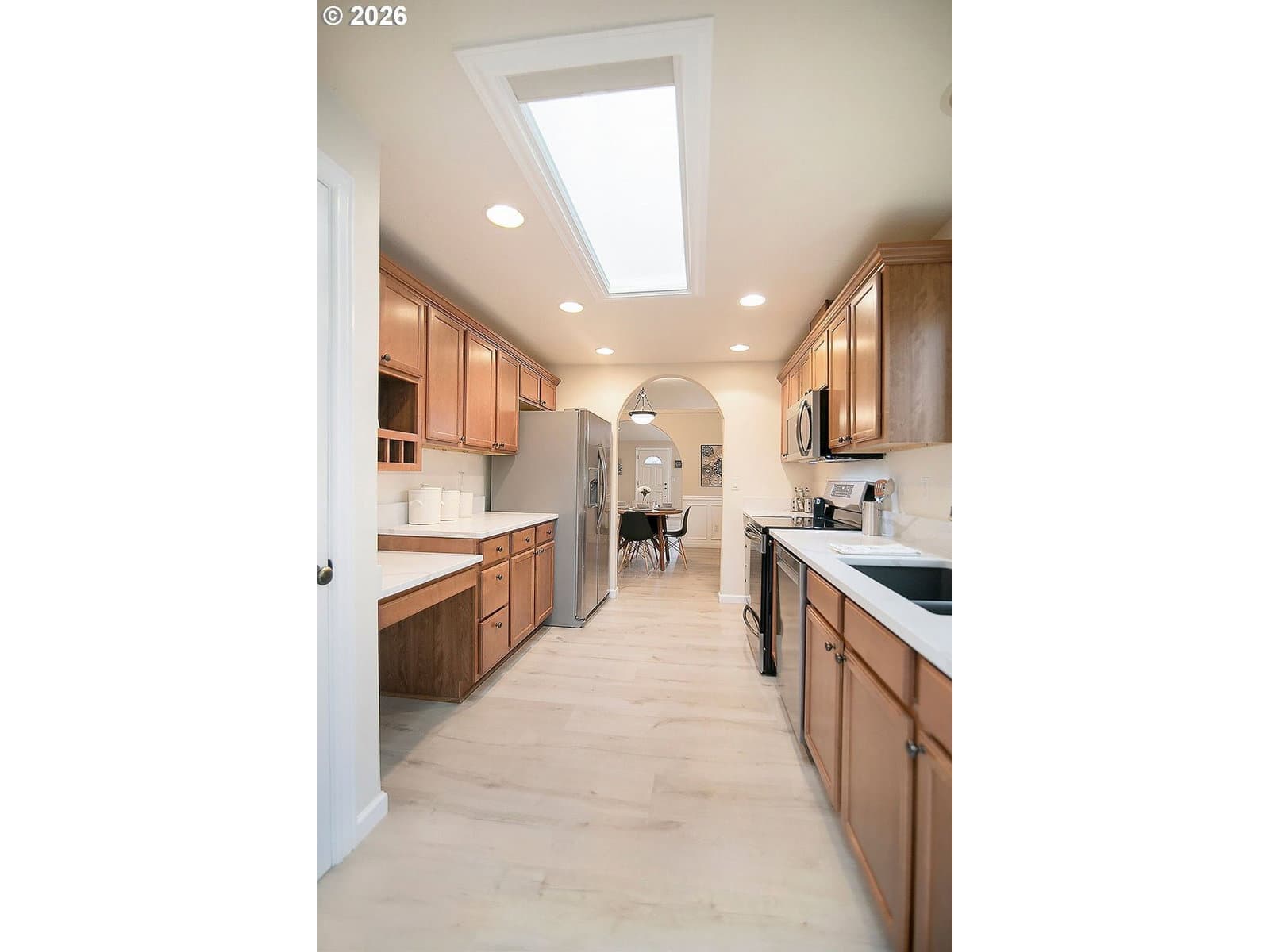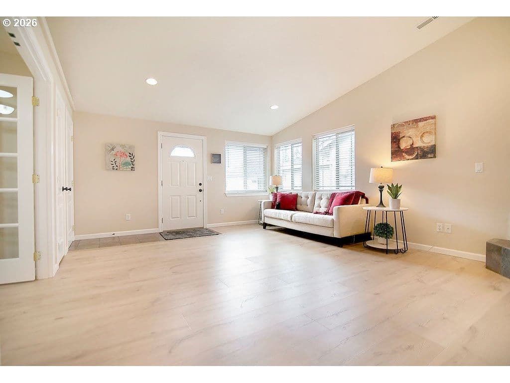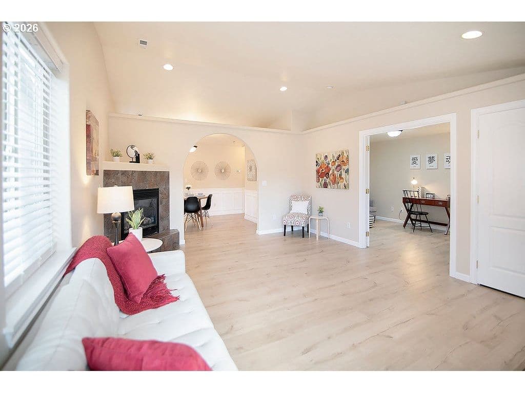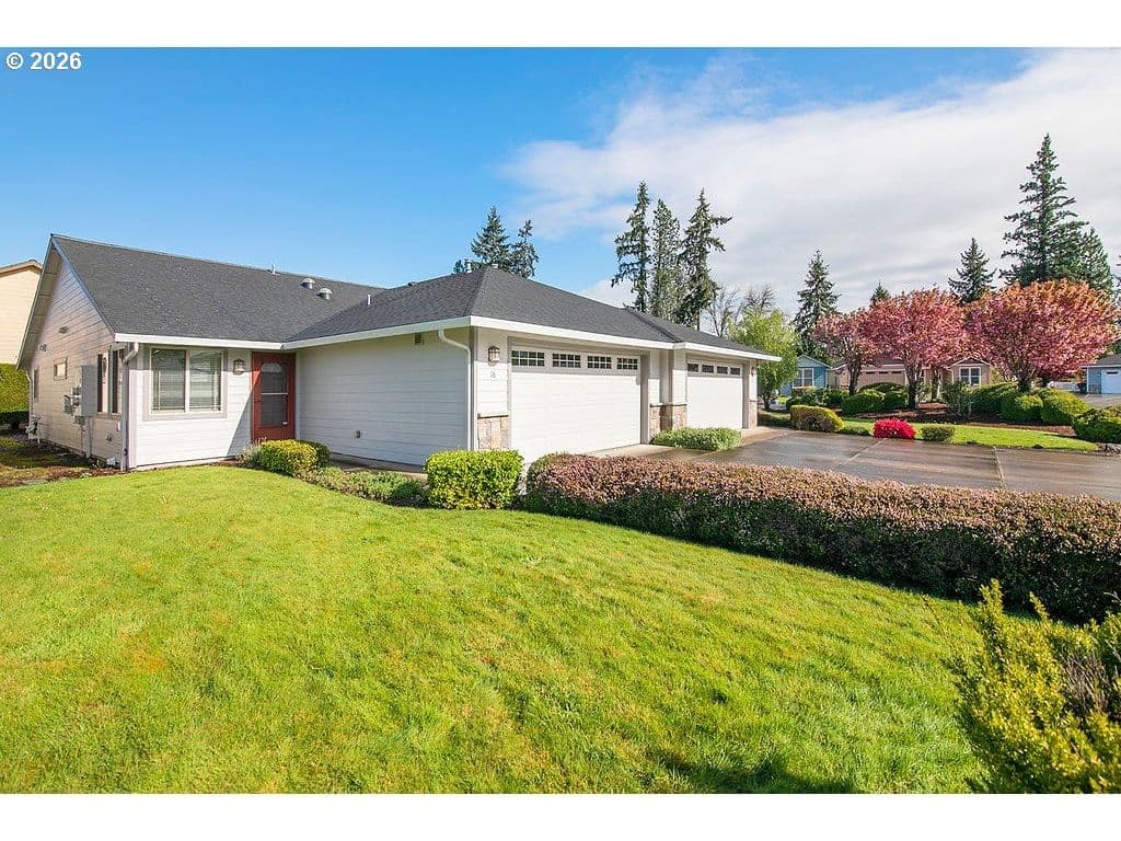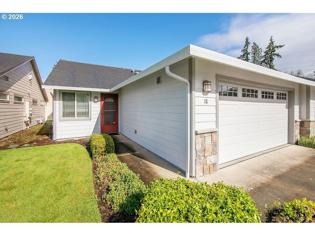 Longview — UPDATED -- 2 Bedroom / 1.75 Bathroom -- 1400 Sqft -- Living Room w/ Gas Fireplace -- Office -- Kitchen w/ Quartz Countertops -- Stainless Steel Appliances -- Microwave, Stove, Dishwasher & Refrigerator -- Pantry -- Dining Space / Area -- Primary Bedroom w/ Huge Walk-In Closet & 3/4 Bath -- Laminate Flooring Throughout -- Heat Pump -- Gas Water Heater -- Vaulted Ceiling -- Recessed Lighting -- French Doors -- Vinyl Windows -- Solar Tubes -- Venetian Blinds -- Laundry Room -- Private Patio -- Attached Double Car Garage w/ Opener -- HardiPlank Siding -- Sidewalks -- Landscaped -- Community House -- Gated Entry -- Close to Town