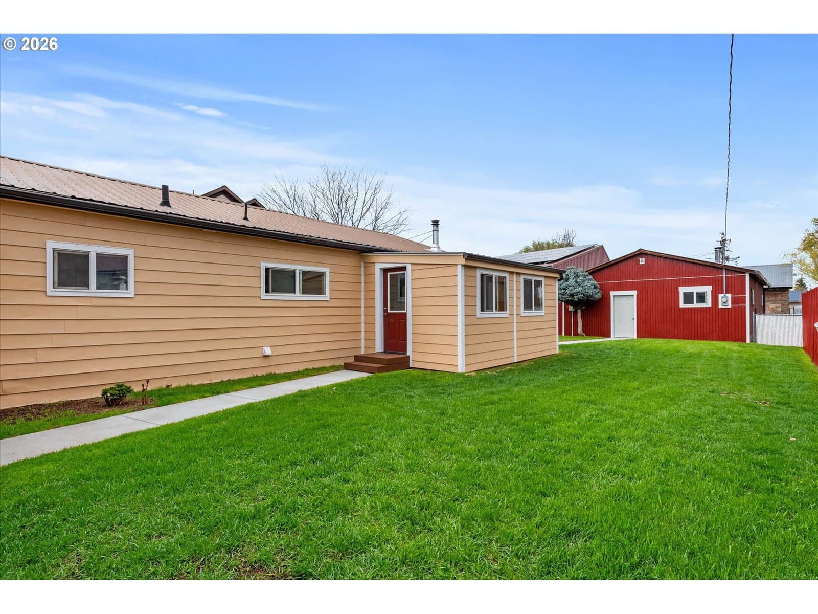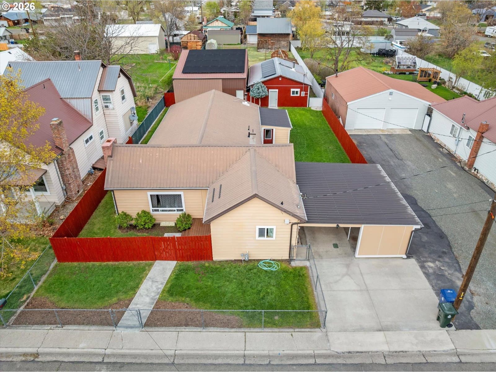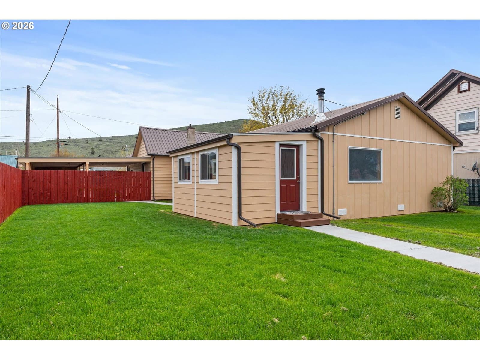 Fully remodeled and move-in ready, this thoughtfully updated home in Baker City offers space, function, and versatility on a rare in-town lot nearing half an acre. Every detail has been carefully considered, creating a comfortable, turnkey property with quality upgrades throughout.The home features a bright, efficient layout with mesquite click-lock flooring through the main living areas and primary bedroom, with carpet in the additional bedrooms. The primary suite includes a lighted closet. A renovated fireplace anchors the living room, while a Blaze King Princess wood stove (updated to code) and new gas furnace provide efficient heating. Interior upgrades include all new textured sheetrock, recessed lighting throughout, and a ceiling fan in the den.The fully updated kitchen includes new cabinetry, backsplash, a one-piece granite countertop set on a 45-degree layout, and a pantry off the carport entry. A new sunroom off the den adds flexible living space with access to both the carport and shop areas.Improvements continue outside with a new 6' x 12.5' deck, walkway to the street, newly painted fenced yard, and a renovated one-car carport with new driveway.The property shines with exceptional shop space: a 1,085 sq ft three-bay machine shop with a 6-inch reinforced concrete floor, plus an 864 sq ft one-bay woodshop with a Fisher stove and new stovepipe—both with overhead doors.Additional upgrades include new solar power, updated electrical panels, and modernized systems throughout.A rare opportunity to own a fully improved property with shop space, land, and modern updates—all within Baker City.