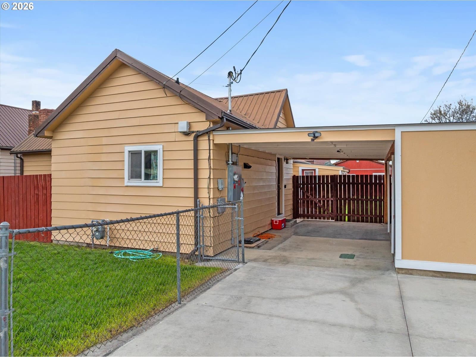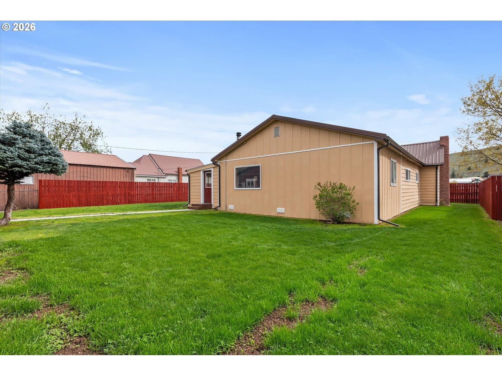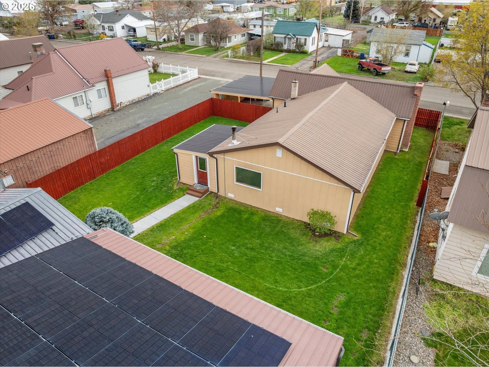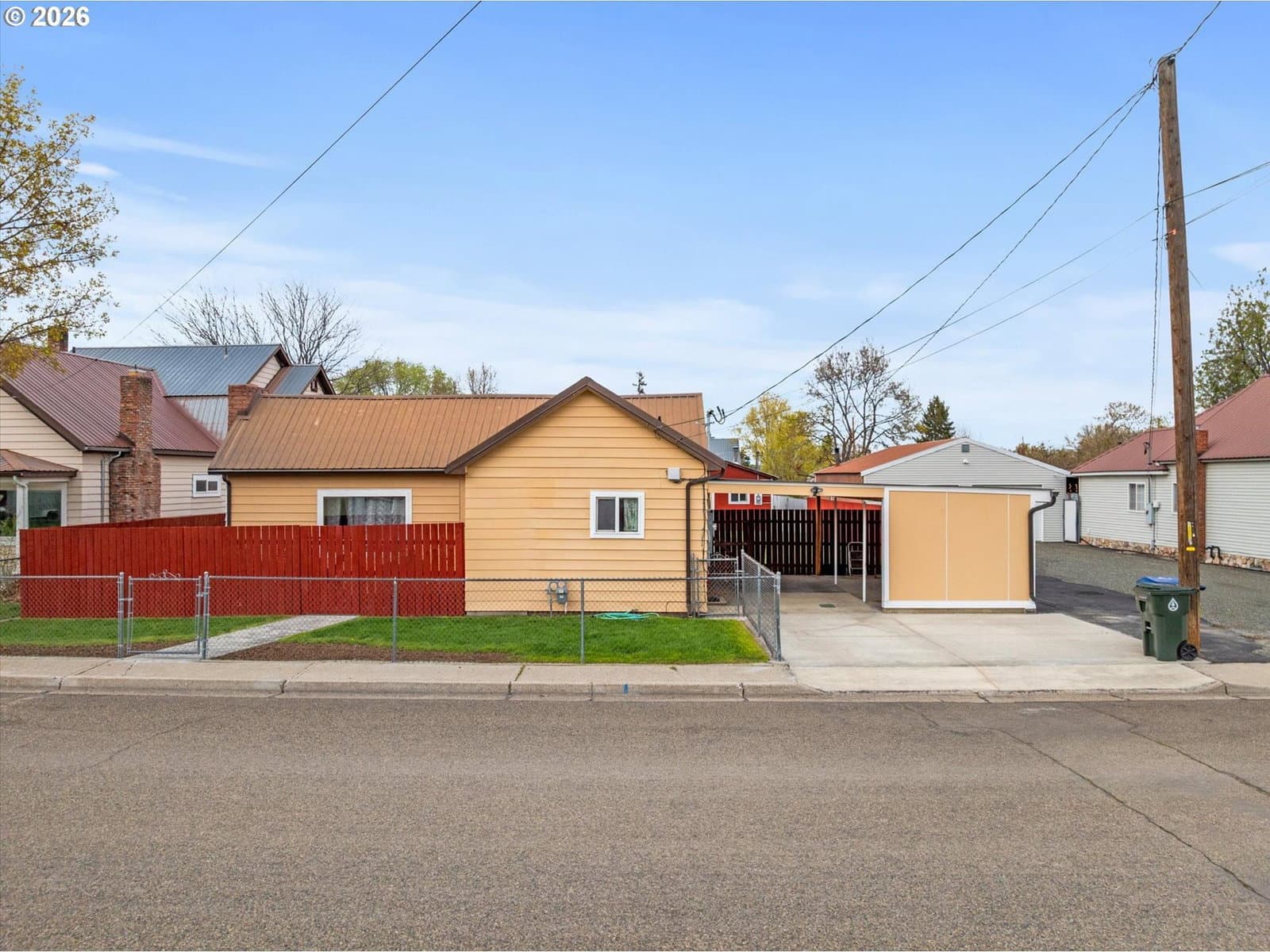 Fully remodeled and move-in ready, this thoughtfully updated home in Baker City offers space, function, and versatility on a rare in-town lot nearing half an acre. Every detail has been carefully considered, creating a comfortable, turnkey property with quality upgrades throughout.The home features a bright, efficient layout with mesquite click-lock flooring through the main living areas and primary bedroom, with carpet in the additional bedrooms. The primary suite includes a lighted closet. A renovated fireplace anchors the living room, while a Blaze King Princess wood stove (updated to code) and new gas furnace provide efficient heating. Interior upgrades include all new textured sheetrock, recessed lighting throughout, and a ceiling fan in the den.The fully updated kitchen includes new cabinetry, backsplash, a one-piece granite countertop set on a 45-degree layout, and a pantry off the carport entry. A new sunroom off the den adds flexible living space with access to both the carport and shop areas.Improvements continue outside with a new 6' x 12.5' deck, walkway to the street, newly painted fenced yard, and a renovated one-car carport with new driveway.The property shines with exceptional shop space: a 1,085 sq ft three-bay machine shop with a 6-inch reinforced concrete floor, plus an 864 sq ft one-bay woodshop with a Fisher stove and new stovepipe—both with overhead doors.Additional upgrades include new solar power, updated electrical panels, and modernized systems throughout.A rare opportunity to own a fully improved property with shop space, land, and modern updates—all within Baker City.