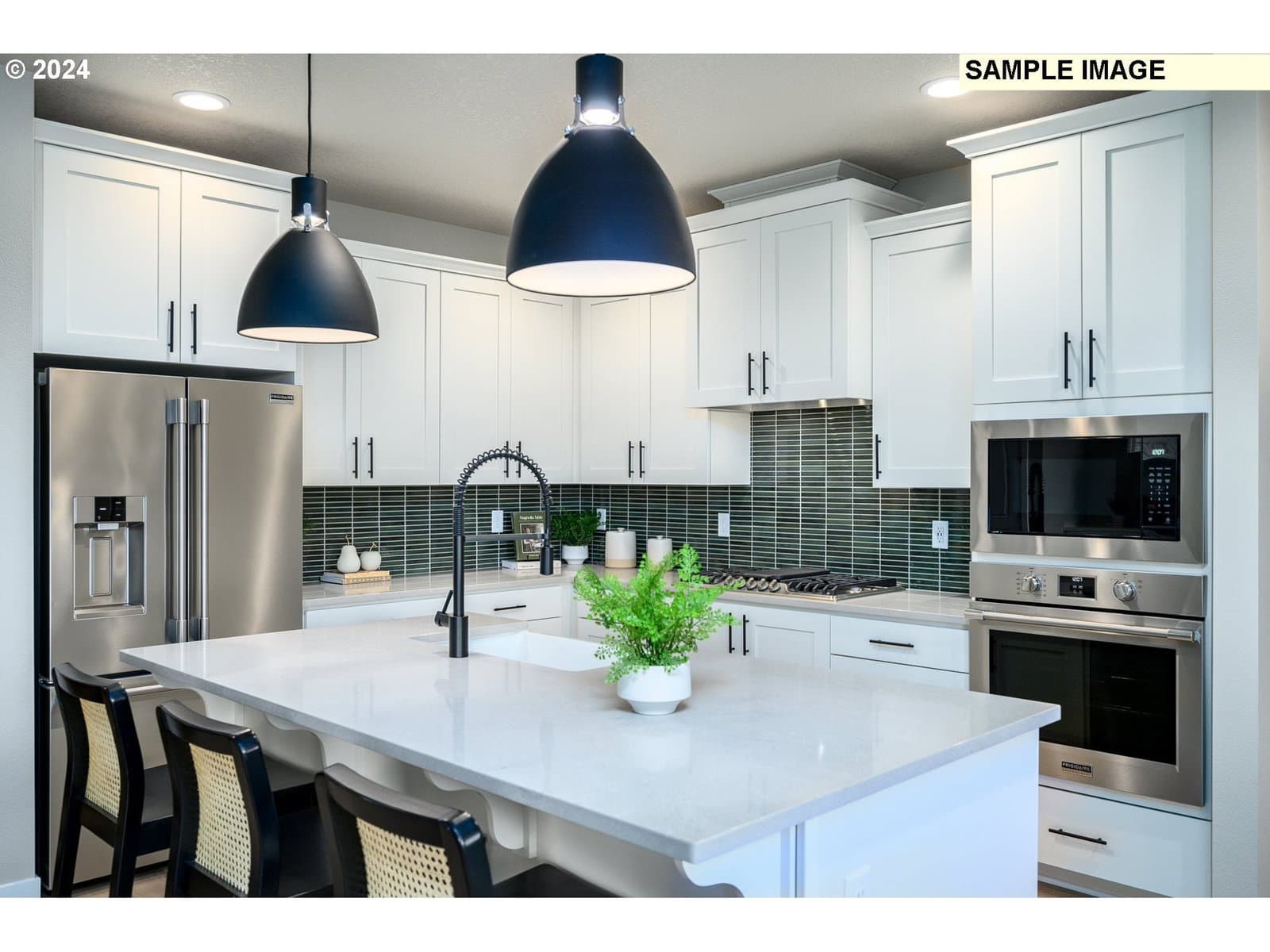 Move in ready! Interest rate incentives are available with in-house lender! Ramble Creek is a new Community set in the trees with views of Mt. Hood. Walking trails throughout the Community and a large central park, a dog park and two additional playgrounds. This home features a spacious layout with 4 bedrooms, 3 bathrooms, upstairs laundry, landscaped front and backyard with sprinklers, a covered back patio, and a 3-car garage. One of the bedrooms in conveniently located on the first floor next to a bathroom with a walk-in shower. You will love the gourmet kitchen layout with a gas cooktop, quartz countertops, a spacious pantry and beautiful alder cabinets. This home has laminate flooring throughout the main floor, a gas fireplace with a mantle, beautiful trim work, 9 ft ceilings w/ 8 ft doors, and a walk-in closet in the spacious, primary suite. Standard features include central A/C, forced air heating, triple-paned windows, prewire for EV charger, garage door opener with 2 remotes, plus a fully fenced backyard. Photos are samples from various model homes and show upgrades not included in subject property. Set your GPS to 4519 NE 183rd ST, Vancouver WA 98686 (model home) and check in with a sales consultant for a tour.