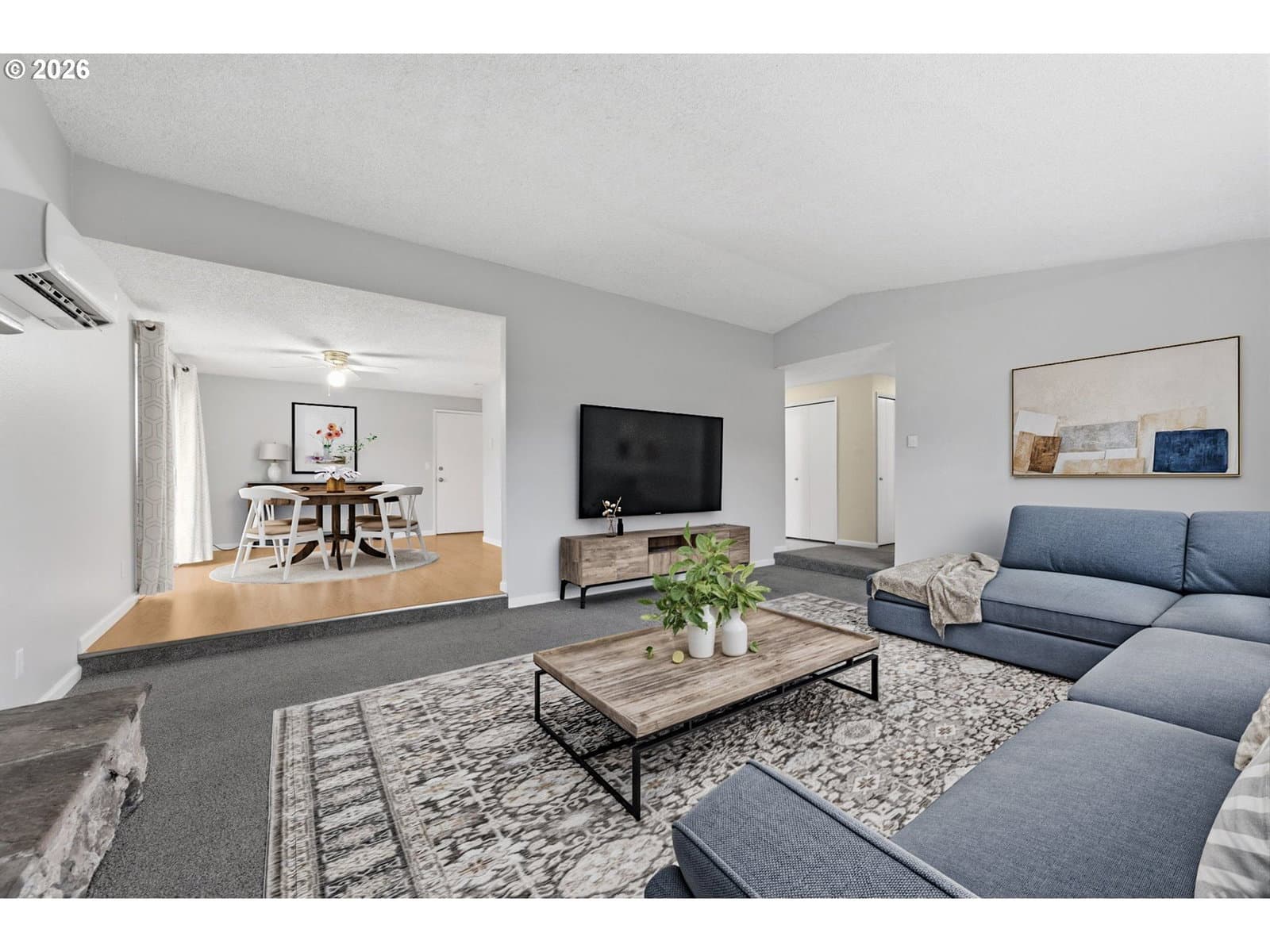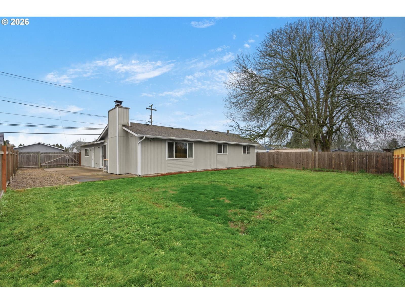 RV parking and move-in-ready! This well cared for home offers a large living room with vaulted ceilings and a cozy wood-burning fireplace, creating an open and inviting main living area. The spacious garage and extra wide driveway offer plenty of parking. A new ductless heat pump provides year-round comfort. Outside the fenced backyard is generously sized and includes a concrete RV pad behind a double gate. Conveniently situated near shopping and other daily conveniences. Come tour today!