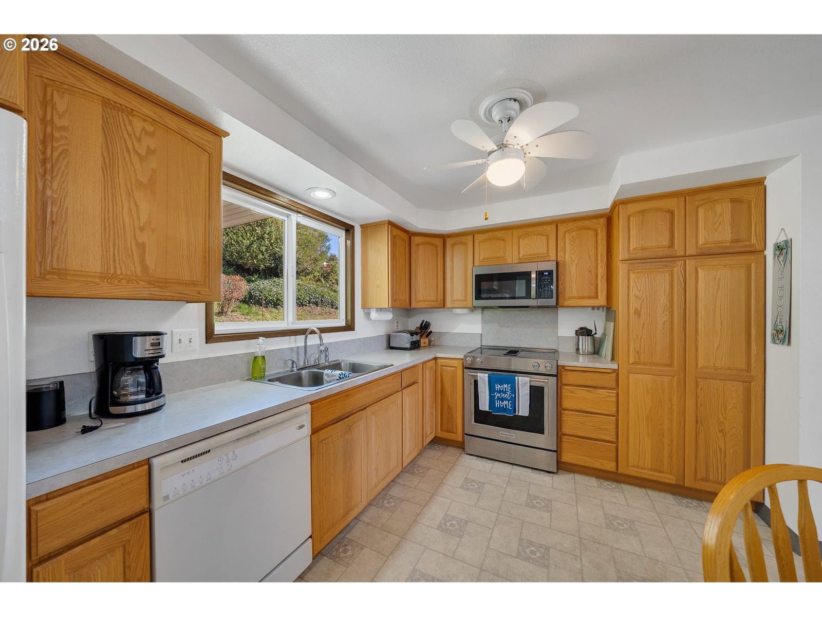 Absolutely stunning panoramic Tillamook Bay views are just one of the highlights of this charming Bay City home set on a spacious 0.23-acre lot. Step inside and immediately take in the ever-changing scenery from the living room, family room, and primary bedroom, where large windows bring in natural light and capture the beauty of the bay. This well-maintained 3 bedroom, 2.5 bath home offers 1,728 sq ft of comfortable living space and has been thoughtfully refreshed to highlight how nicely it lives today while still offering room for future updates if desired. Major improvements already completed include a new roof (2025), fresh exterior paint (2025), newer HVAC system, and new sliding glass doors. Relax on the deck or covered patio while enjoying peaceful sunsets and the coastal setting. Offers plenty of space for parking a boat or RV. Located near Kilchis Point Reserve hiking trails, beach access, and just 4 miles to Garibaldi Marina for fishing and boating. A wonderful coastal getaway or full-time home on the Oregon Coast.