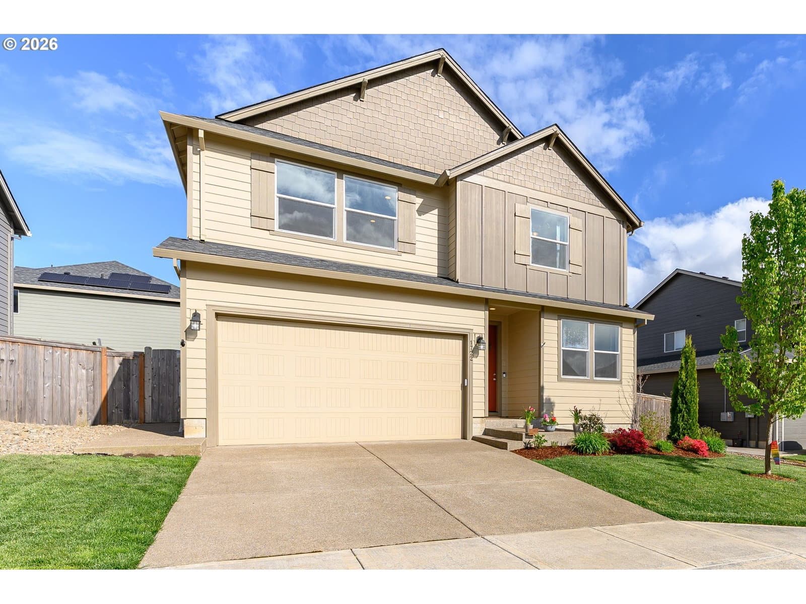 OPEN HOUSE SAT 11-1PM; SUNDAY 12:30-3PMBEST DEAL $$ IN TOWN! BEAUTIFUL UPGRADES! Welcome to small town living while centrally located and surrounded by vineyards and beautiful scenery. The 2366 plan by Holt Homes (2442 SQ FT per tax records) is a traditional 2-story home with 5 bedrooms or 3 bedrooms with 2 flex rooms. The MAIN FLOOR BEDROOM can serve as a GUEST SUITE with access to its own bath. One of the upstairs rooms could be an oversized bedroom or a large bonus room. Feel the world slide away as you curl up on the couch in front of the fireplace in your large great room or hanging out on the covered patio, then prepare your favorite meal in the gourmet kitchen with expansive quartz counters, upgraded gas range and tons of storage in the Shaker cabinets and walk in pantry. There’s plenty of space for many hands in the kitchen or entertaining both inside and out. Finish the day soaking in gorgeous tub in the massive primary bathroom. The large primary suite has room to create the retreat you desire. Both front and back yards have underground sprinklers and the front yard care is included with the home. Make use of the raised garden beds for some self sustainability or remove them for a huge yard. This is your new, ready to live in, use and enjoy, easy care home. Don’t let it slip away.