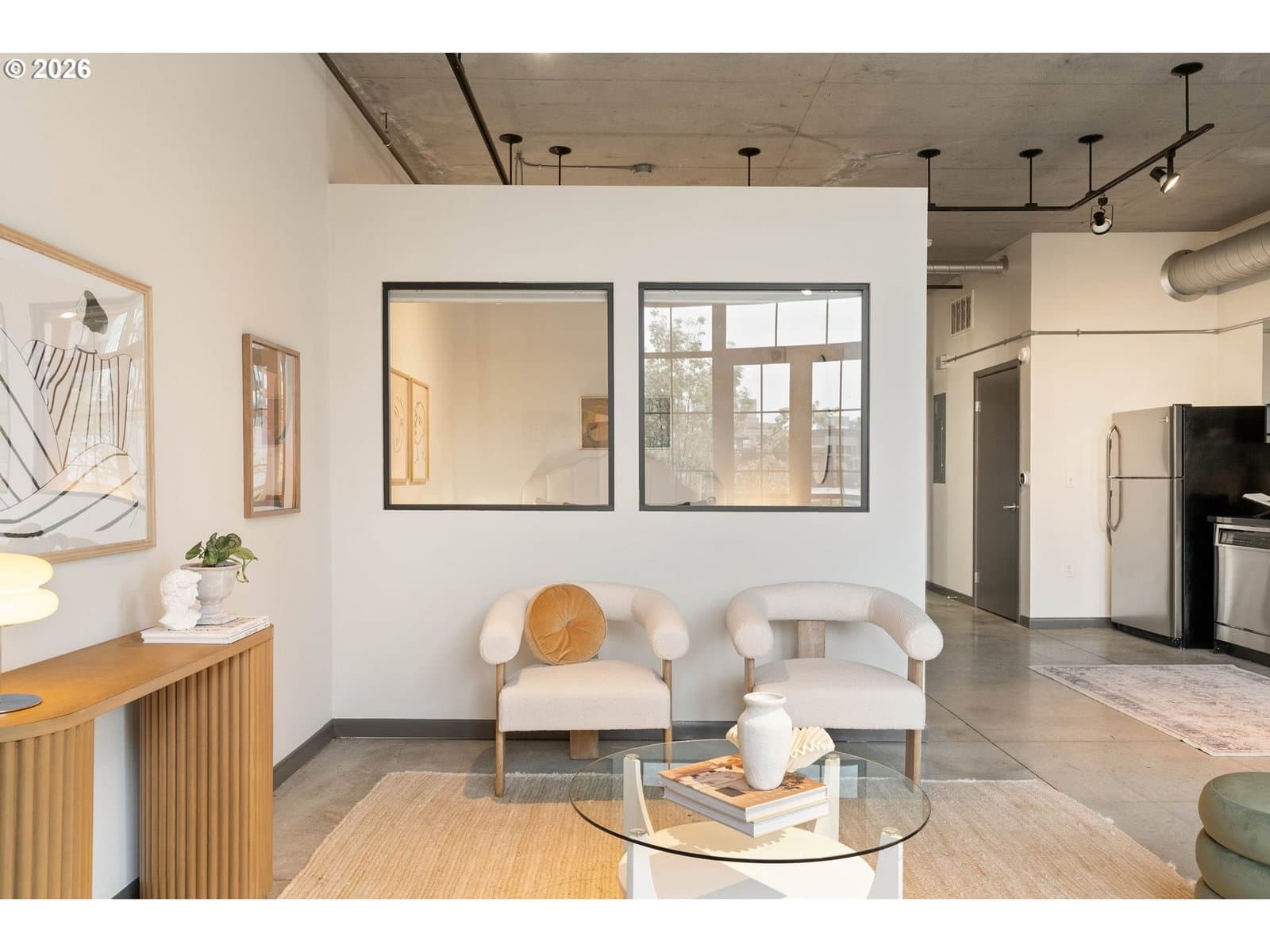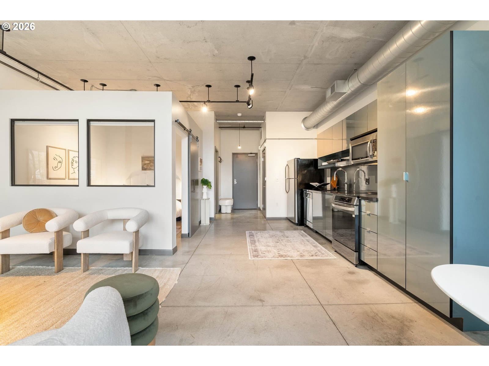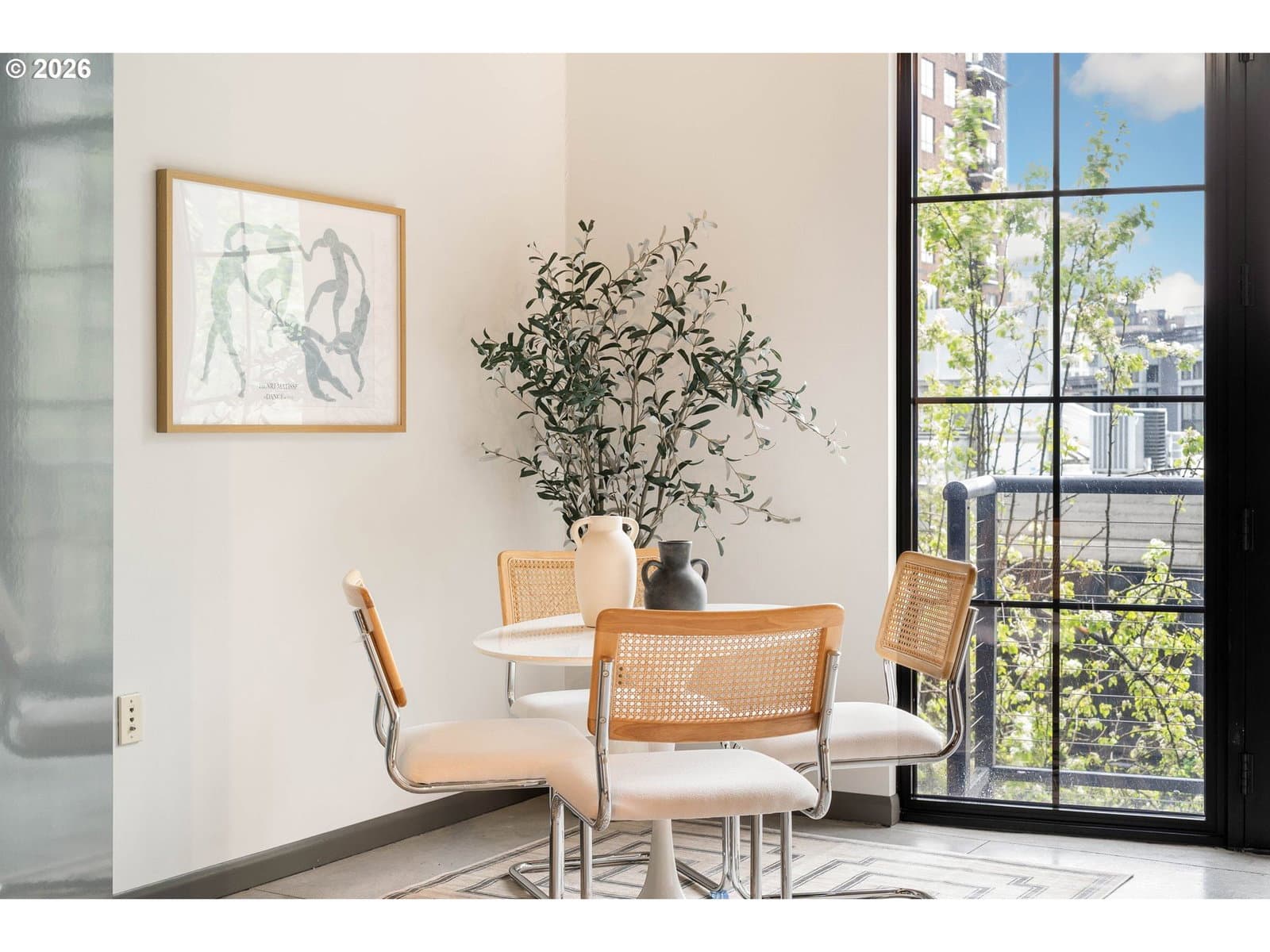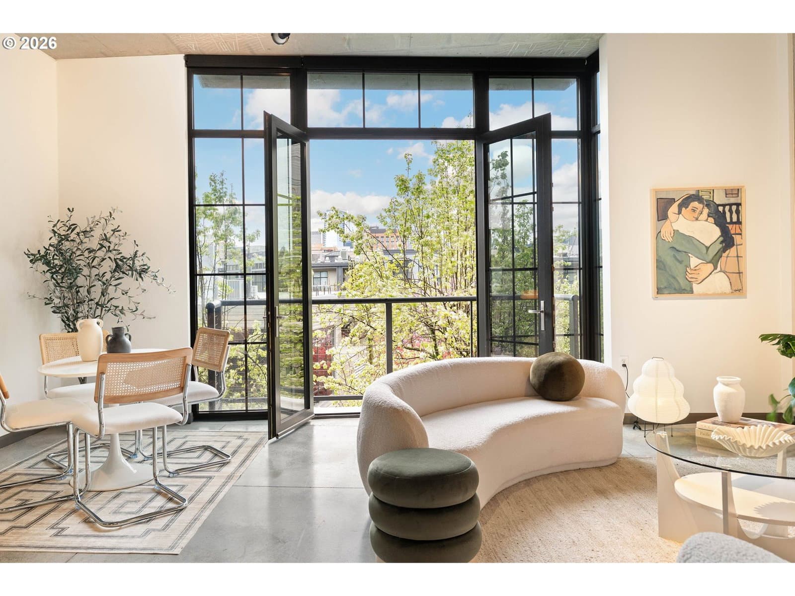 Live large by living simply. This beautifully styled 663 sq ft residence at Streetcar Lofts proves that less space can mean more life. Thoughtfully designed with soaring ceilings, expansive windows, and a bright, open layout, this home feels anything but small—inviting you to slow down, spread out, and truly enjoy where you live. A private balcony overlooking the landscaped courtyard offers the best of both worlds—lush greenery and city energy—while maintaining a sense of calm and privacy that’s rare in urban living.Set in the heart of Portland’s coveted Pearl District, you’re surrounded by the best of the city—morning coffee, gallery strolls, evening dinners, First Thursdays, and the streetcar just steps away. Industrial-chic architecture meets modern comfort, creating a space that feels both grounded and inspired.The building itself elevates everyday living, with a beautifully landscaped courtyard offering a peaceful, green escape, a well-appointed fitness center to keep your routine effortless, and inviting common spaces that are perfect for gathering, hosting, or simply enjoying a change of scenery.Inside, a newly updated kitchen features a sleek induction oven for precise, efficient cooking, while a spacious walk-in closet provides exceptional storage. A brand new HVAC system installed in 2026 adds comfort and peace of mind, rounding out the home’s thoughtful upgrades. With peaceful outlooks and the rare ease of deeded parking, this is effortless urban living at its finest. Whether you’re seeking an elegant flat or a stylish everyday retreat, this home delivers a lifestyle that feels expansive, connected, and undeniably cool.