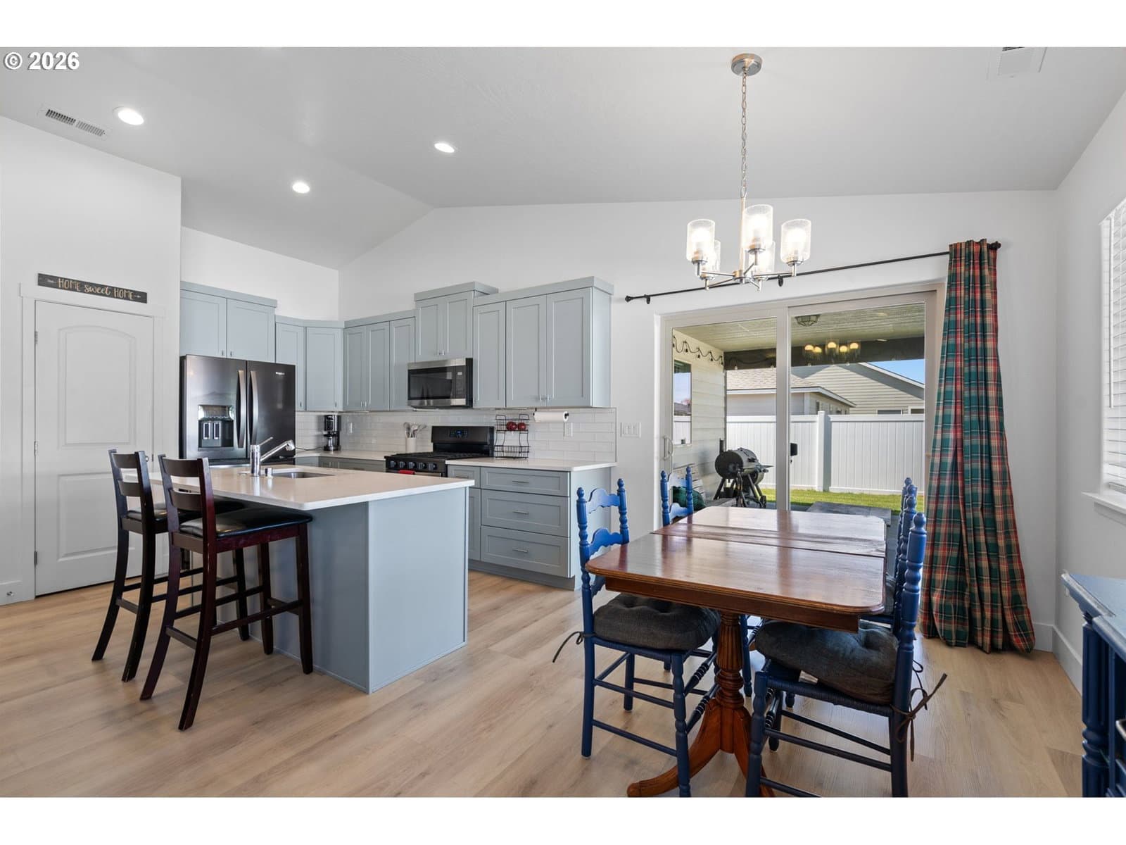 *** MORE Finished. MORE Thoughtful. MORE Value.*** 306 Sage St offers a refined take on this popular Pro Made Homes floor plan, elevated with thoughtful upgrades and a level of completion that sets it apart from many competing new construction homes. Vaulted ceilings span the main living space, creating an open, airy layout that seamlessly connects the kitchen, dining, and living areas. The kitchen blends style and function with shaker cabinetry featuring soft-close doors and drawers, quartz countertops, a full-height tile backsplash, stainless steel appliances, and a dedicated pantry. Upgraded appliances, including a Whirlpool gas range, LG dishwasher, and Whirlpool French-door refrigerator, provide added performance and everyday reliability. Designed with privacy in mind, the primary suite is set apart from the additional bedrooms and features dual sinks, a glass-enclosed shower, and cohesive, well-selected finishes. Two additional bedrooms plus a flex or office space offer versatility for work, guests, or hobbies. Where this home truly stands out is what is already done for you. Window coverings, full backyard landscaping, timed underground sprinklers, and vinyl fencing with gates on both sides are features often not included in similar new construction. The finished garage includes painted drywall, an automatic opener, and exterior access. The covered patio extends your living space outdoors and offers a shaded setting ideal for relaxing or entertaining. Move-in ready with a higher level of finish, function, and value, without the added expense or post-close projects. Ask your agent about Boardman's Home Buyer Grant to save on closing costs and schedule a tour today! HOA currently managed by Eagle Crest Property Management and possibly going through dissolution. Buyer to complete due diligence to confirm.