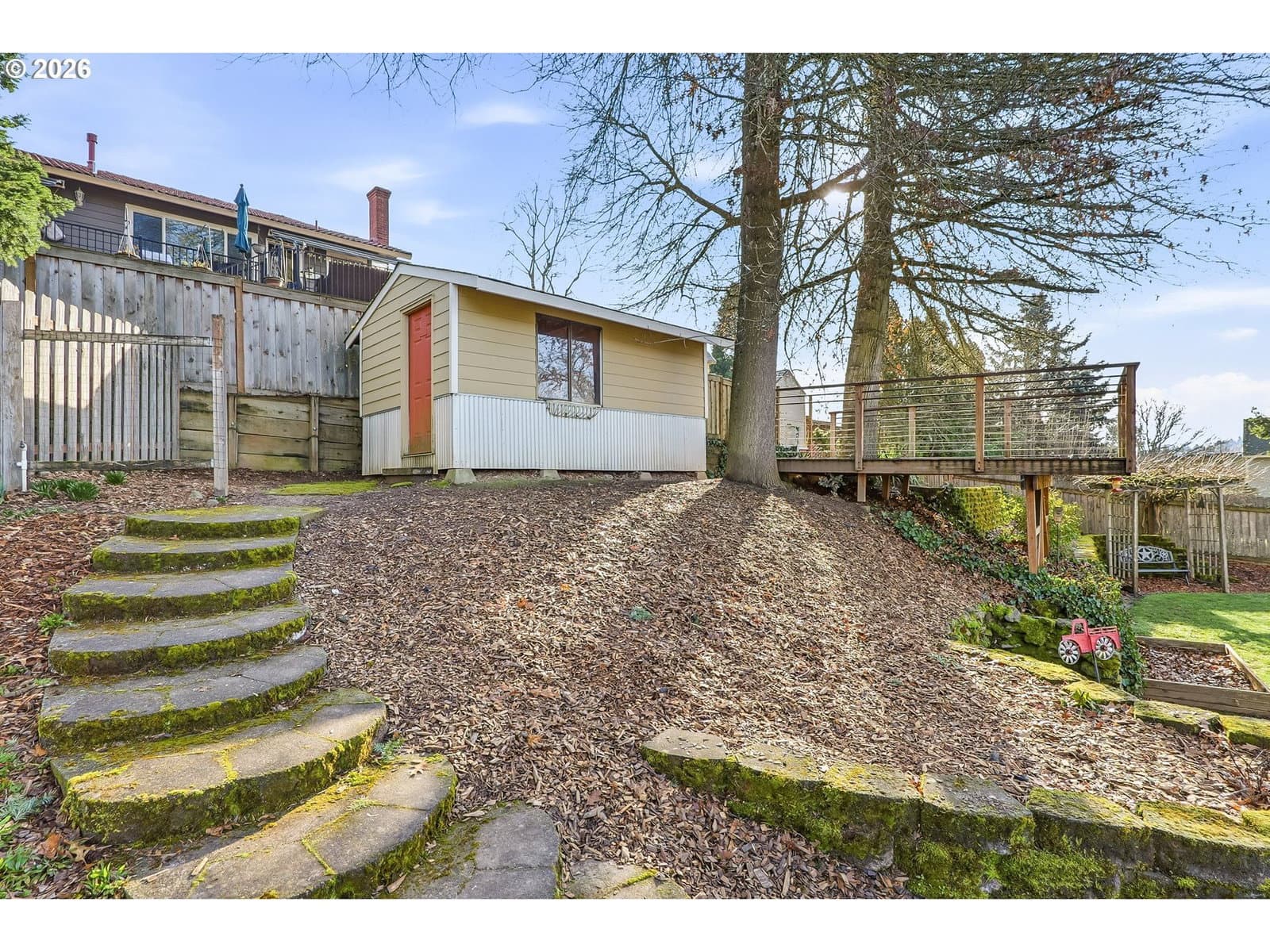 Tucked away on a quiet cul-de-sac, this move-in ready home sits on an exceptionally large lot, nearly a quarter acre, with a backyard that truly sets it apart. Bamboo hardwood floors run throughout the home, complemented by abundant natural light and thoughtful updates. The formal living room features vaulted ceilings with skylights, bay windows, and hardwood floors, creating a bright and welcoming first impression. The dining room offers hardwood flooring and a sliding glass door that opens to the patio, ideal for indoor-outdoor living. The kitchen is inviting with granite countertops, built-in dishwasher and microwave, a freestanding refrigerator, and a cozy nook perfect for casual seating or a breakfast nook. The lower level adds flexible living space with a family room featuring a fireplace, wainscoting, tile floors, high ceilings, and a sliding glass door to a covered patio. A full laundry room with storage and an updated powder bath complete this level. The owner’s suite is a private retreat with double doors, hardwood floors, a sliding glass door to a private balcony, dual sinks with granite countertops, a walk-in closet with custom California Closets organizers, and a fully tiled walk-in shower with a rain shower head. Two additional bedrooms feature hardwood floors, closets, and high ceilings. The fully fenced backyard is truly special, showcasing professionally tiered landscaping, a large deck with an outbuilding (potential for studio space), two patios, pergolas, and garden boxes. Additional highlights include a big garage, extra and RV parking, updated primary bathroom (2020), newer HVAC system, and updated trim. Conveniently located near Powerline Trail, parks, hiking, shopping, dining, and everyday amenities.