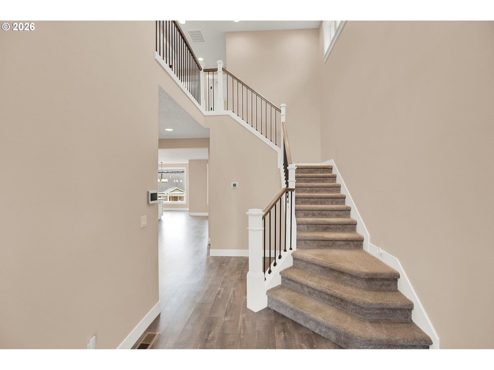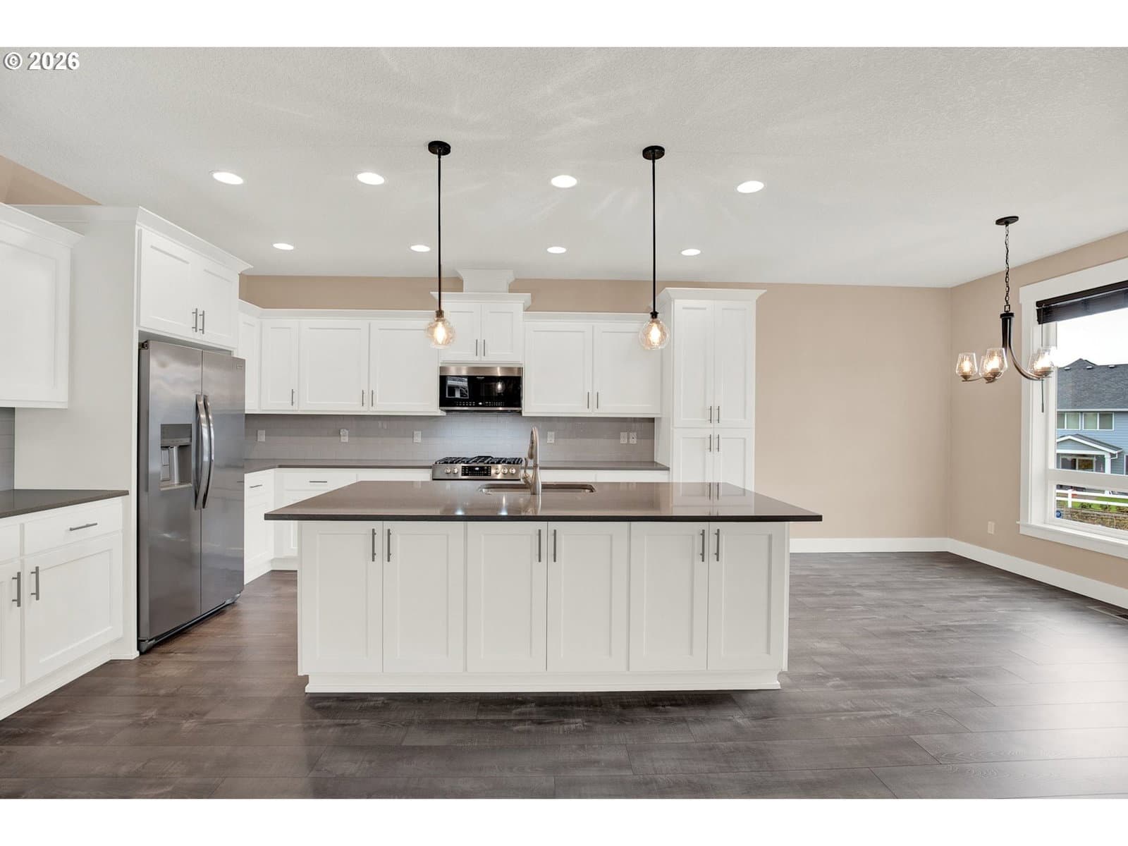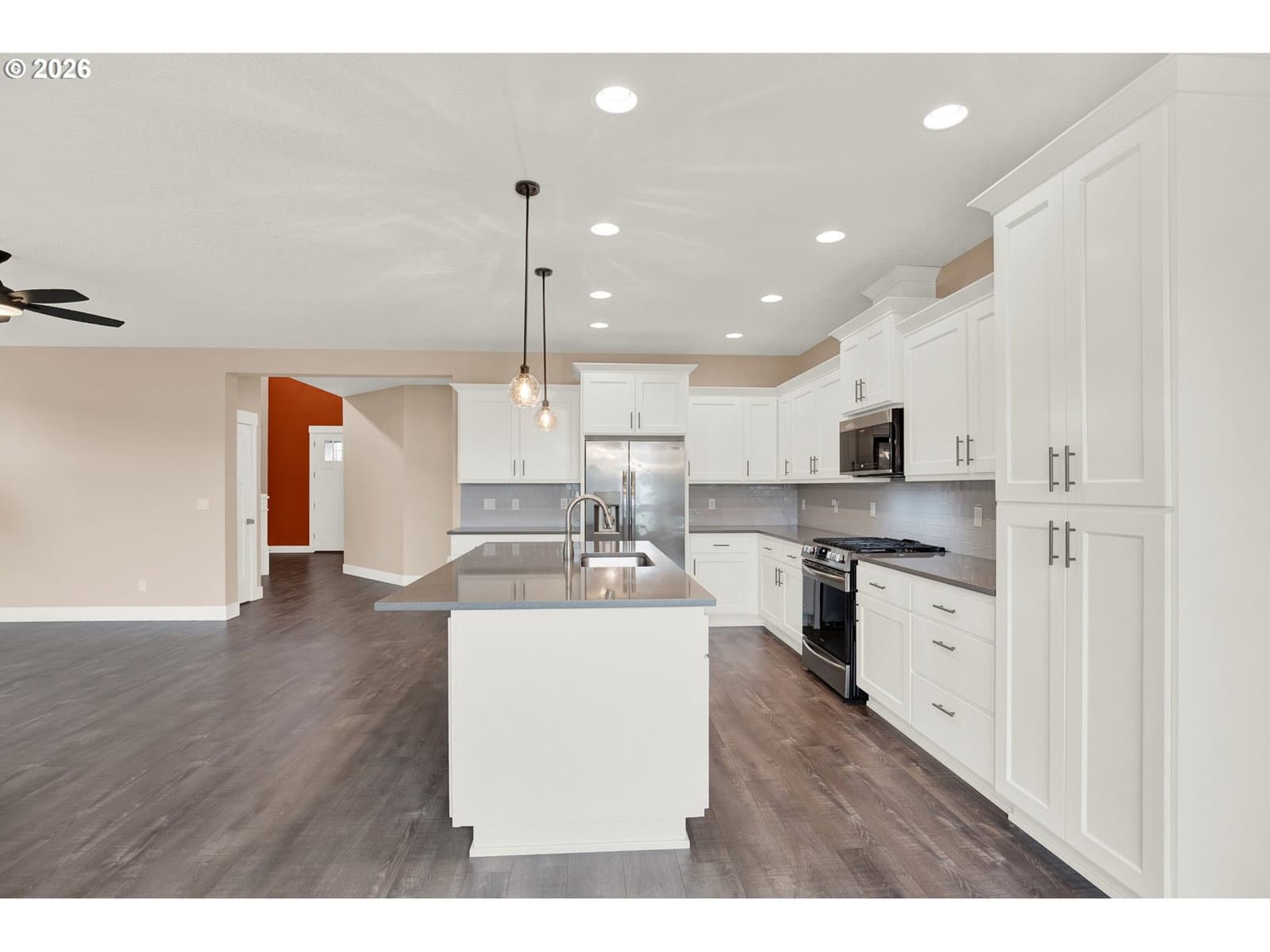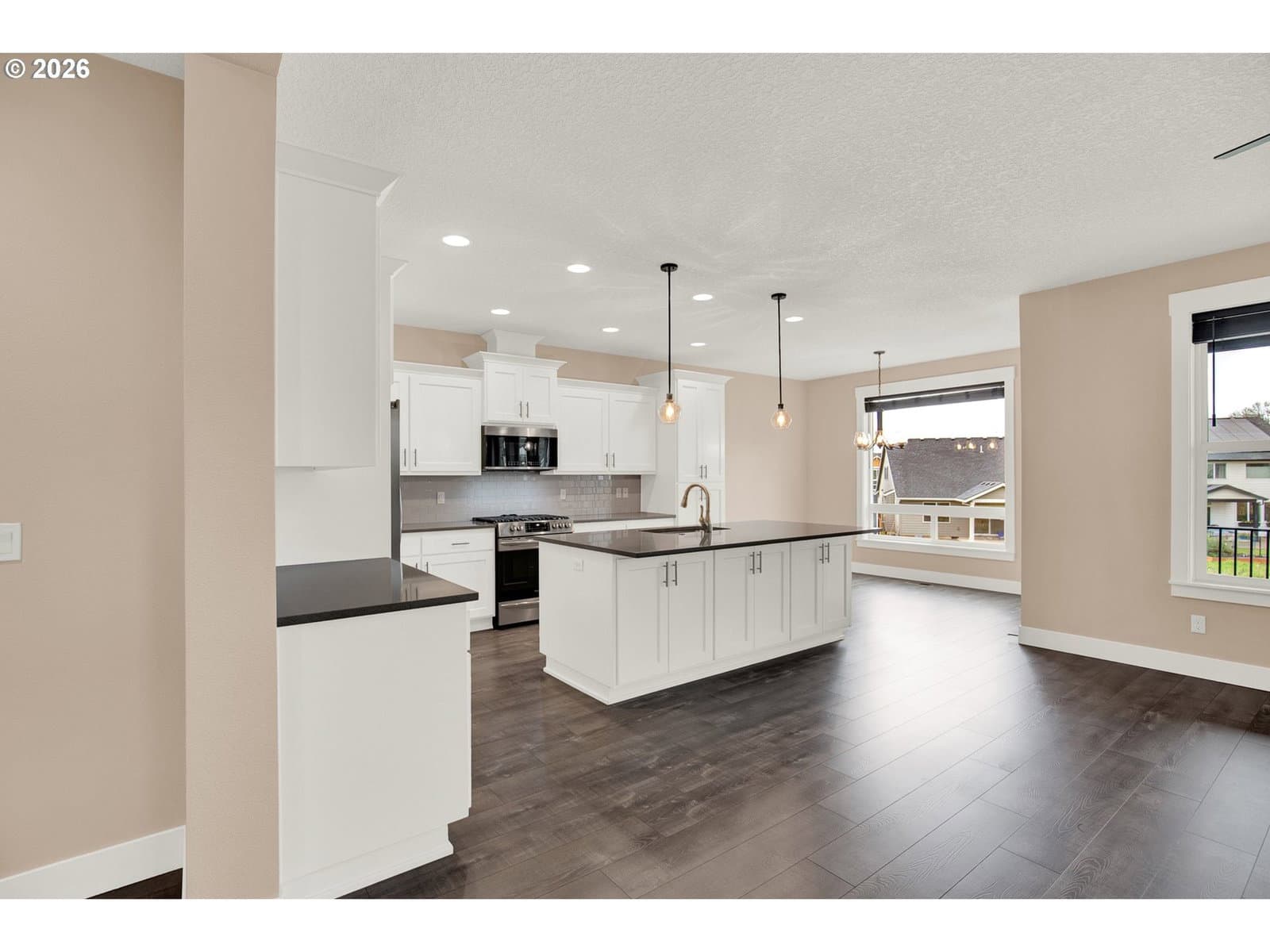 Absolutely Gorgeous! Completed in 2022, this beautifully designed 5-bedroom, 3-bath home offers modern comfort, thoughtful upgrades, and an exceptional cul-de-sac location. Ideally placed on a premium lot, this is the premier spot on the street, with a trail access point just a few steps from the front door—ideal for daily walks and easy access to the nearby softball field and popular looped walking trail. The main level features a light-filled great room layout centered around a chef-inspired kitchen with gas cooking, quartz countertops, a large island, and an inviting dining area. A bedroom and full bath on the main floor provide flexibility for guests, multi-generational living, or a home office. The striking open staircase leads to the upper level, where four additional bedrooms await, including a spacious primary suite with a walk-in closet and a luxurious private bath. Each upstairs bedroom has a walk-in closet. The backyard has been thoughtfully upgraded into a fully paved, level outdoor living space, creating a low-maintenance retreat with no lawn to mow. Fully fenced for pets, the yard opens to peaceful wetland views where the sounds of red-winged blackbirds add a serene, natural backdrop. Custom pavers, a built-in fire pit, and a large deck make this space perfect for both relaxing and entertaining. Exceptionally well maintained and truly move-in ready, this gorgeous home combines privacy, natural beauty, and modern living in one of Newberg’s most desirable settings. You will love it! URL & phone to be provided