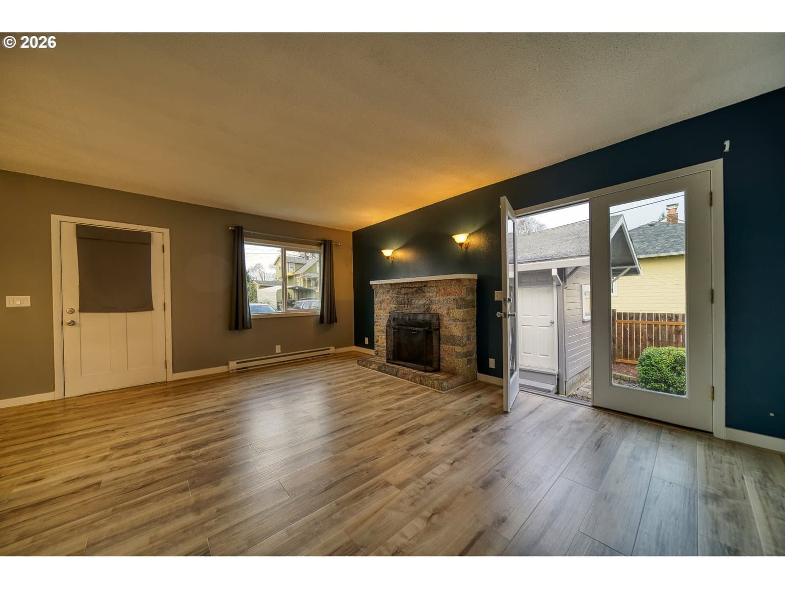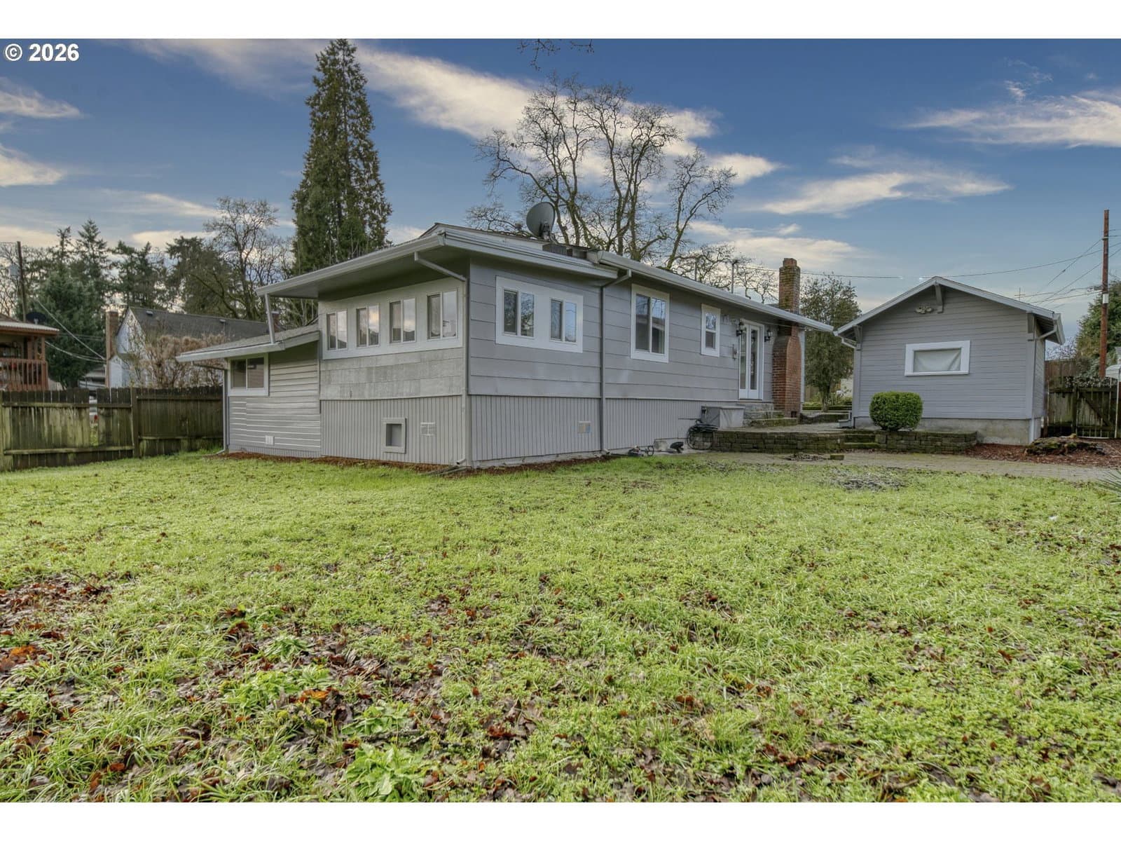 Welcome home to this charming 3-bedroom, 1-bath single-level residence that blends comfort, functionality, and thoughtful updates throughout. Step inside to an open living and dining area highlighted by laminate flooring and a cozy wood-burning fireplace, creating a warm and inviting atmosphere. The updated kitchen features stainless steel appliances and flows seamlessly into the main living space, perfect for everyday living and entertaining. This home also offers a dedicated laundry room. Oversized 3rd bedroom could also serve as a versatile family/bonus room, ideal for a home office, playroom, or additional living space. Outside, enjoy a large fenced yard with plenty of room to relax, garden, or play, along with a covered porch for year-round enjoyment. A detached garage adds extra storage and convenience. With updates throughout and so much to offer, this home is truly move-in ready and not to be missed. 3rd bedroom non-conforming due to lack of closet.