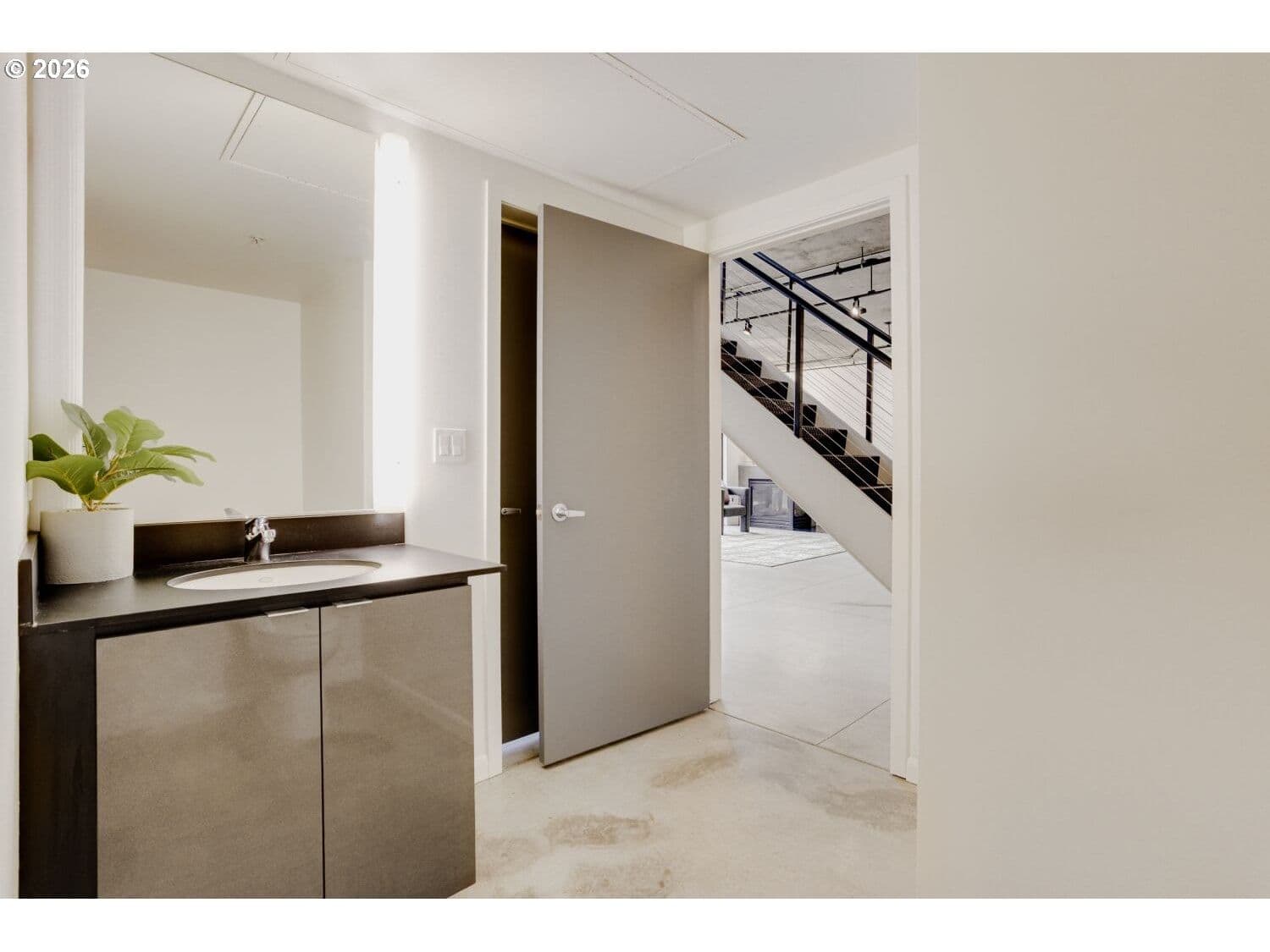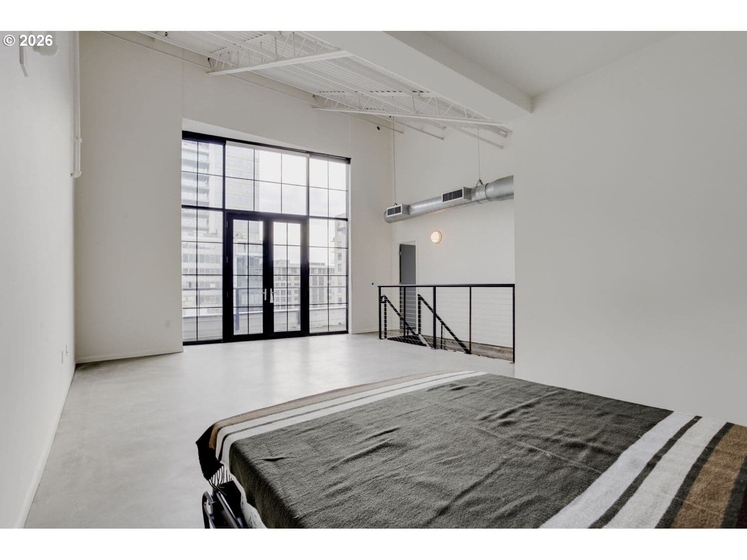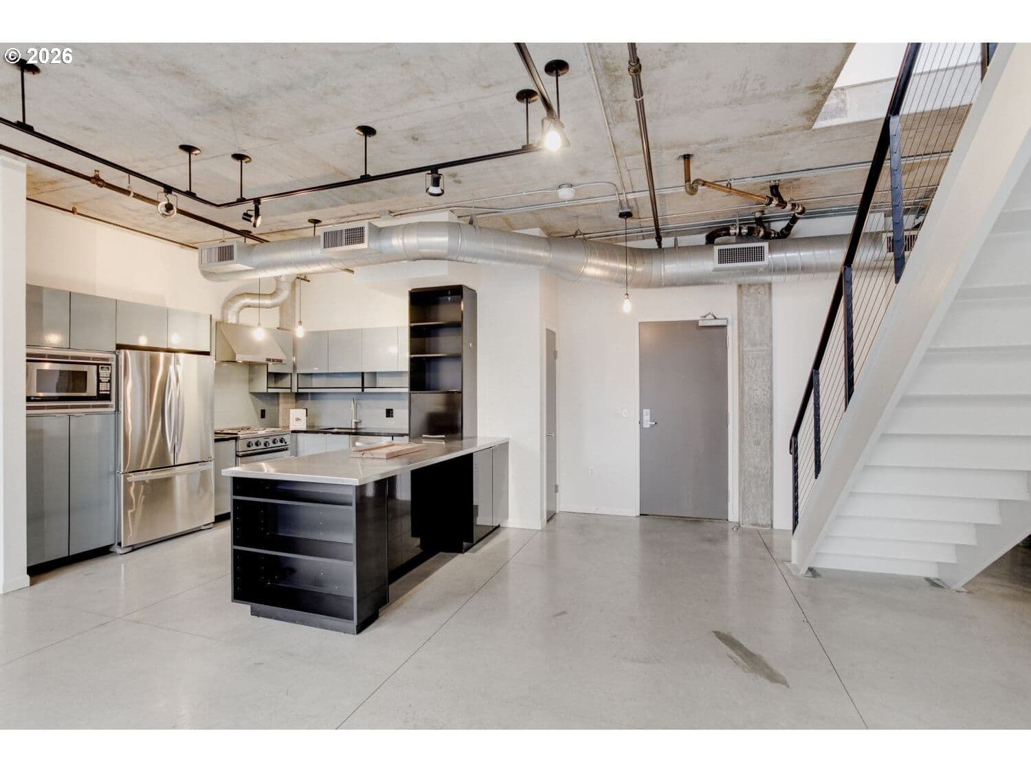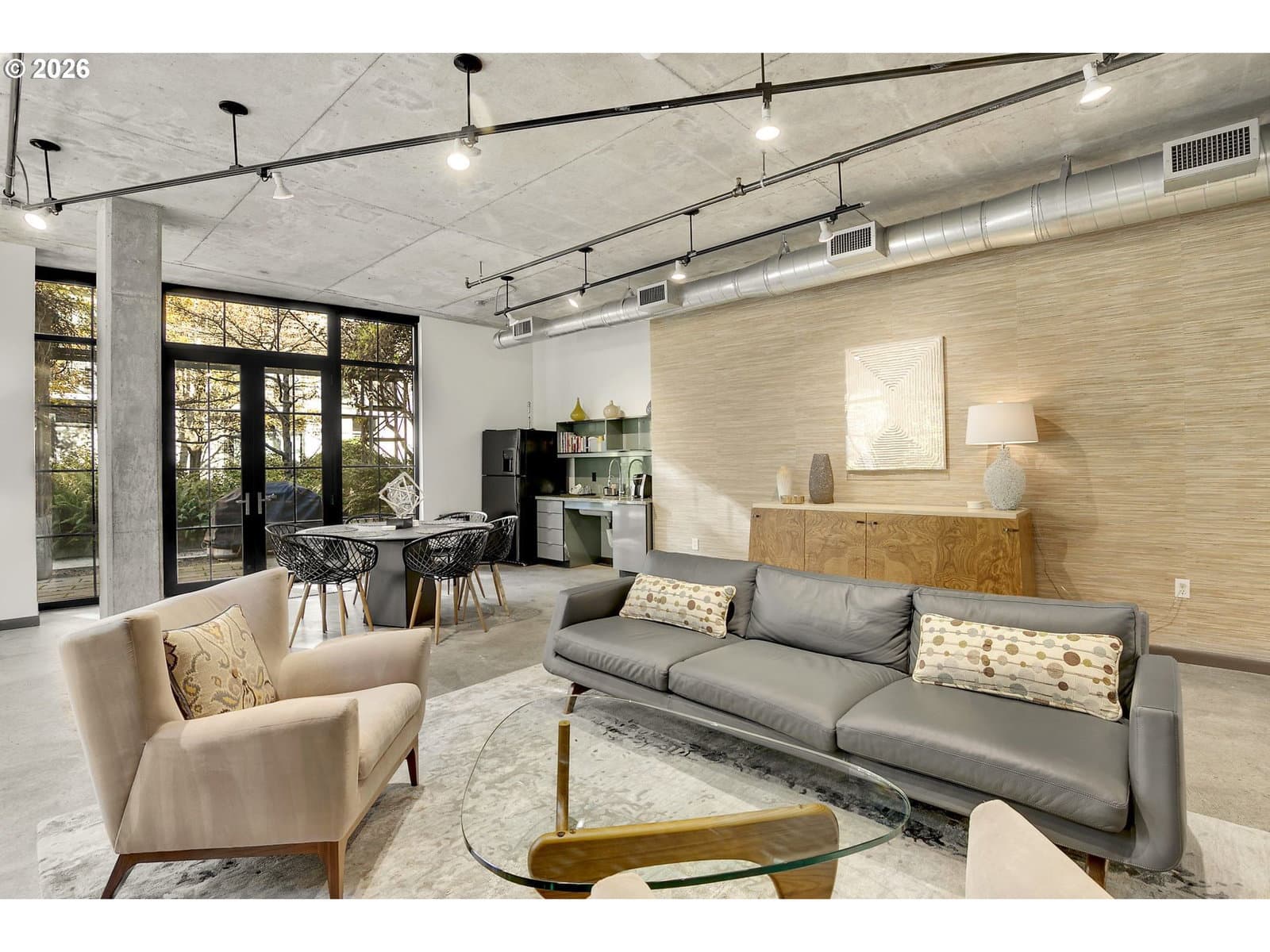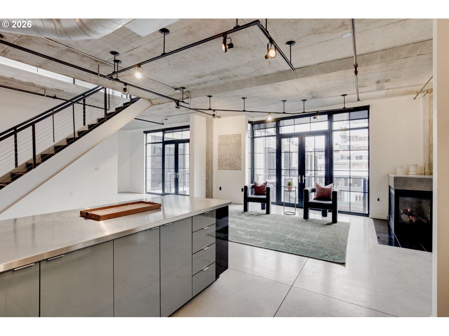 Step into this distinctive industrial-style condo in Streetcar Lofts. This two-story unit features 10–14 ft ceilings, polished concrete floors, and expansive east-facing windows that fill the space with natural light and offer city views overlooking a beautifully maintained courtyard.The main level offers an open-concept layout that connects the kitchen and living area with an electric fireplace next to the floor to ceiling windows. This floor also includes a bedroom with an ensuite bath, making it a versatile flex space that can be used as a dining room, home office, or guest suite.Upstairs, you’ll find a second living area well suited for a den, media room, or creative workspace. The primary suite features french doors that open to a private balcony, a walk-in closet, and a full bathroom with soaking tub, walk in shower, and washer/dryer. Streetcar Lofts offers a range of amenities including a security team, fitness center, community room, and a lush shared garden with BBQ areas. Water, sewer, and garbage are included in the HOA dues. The unit also comes with two side-by-side deeded parking spaces.