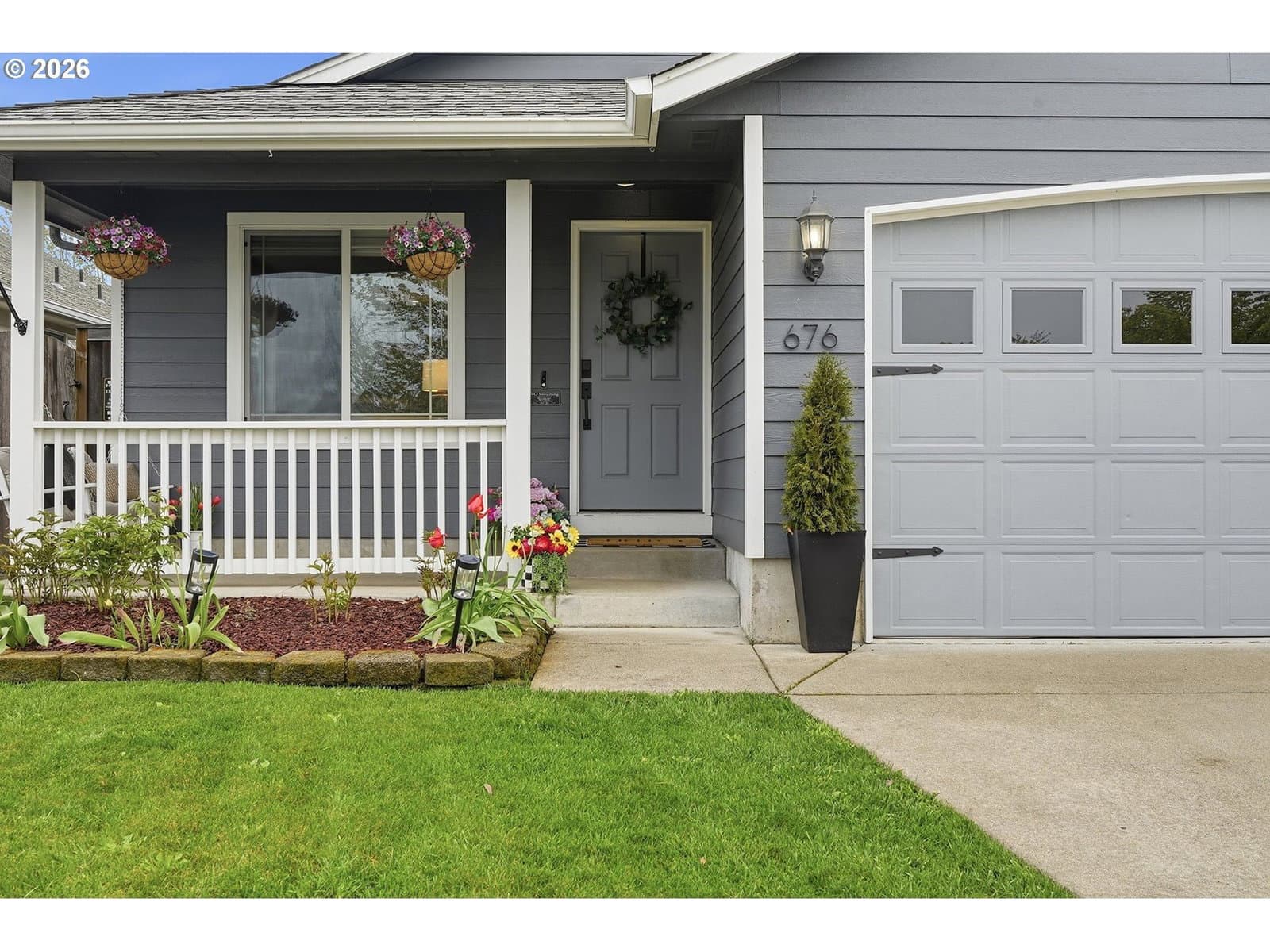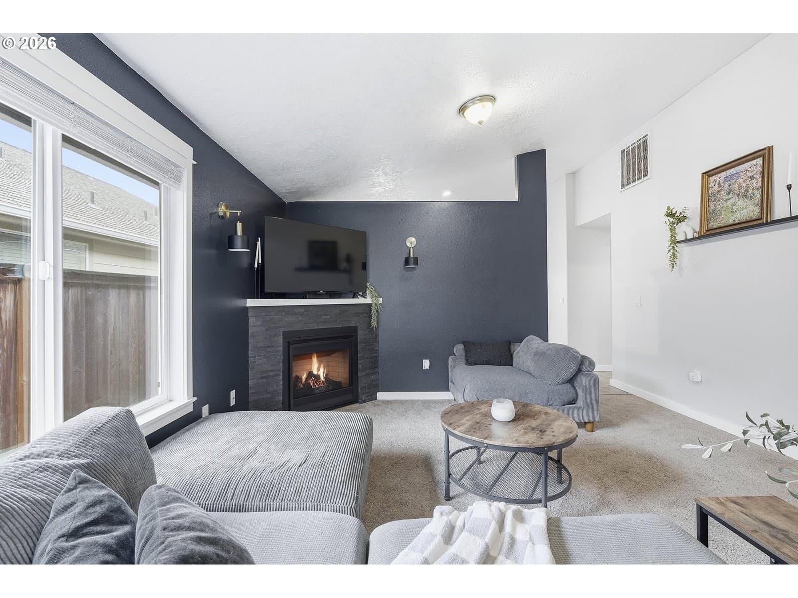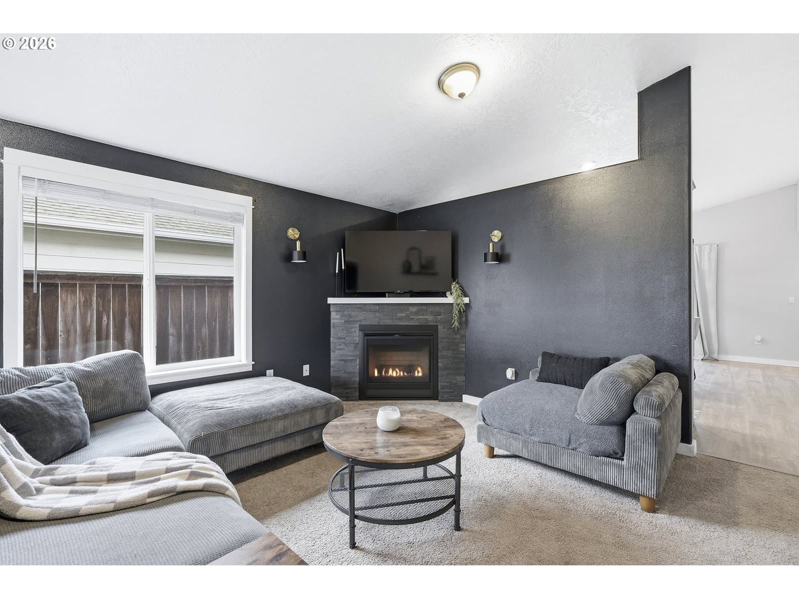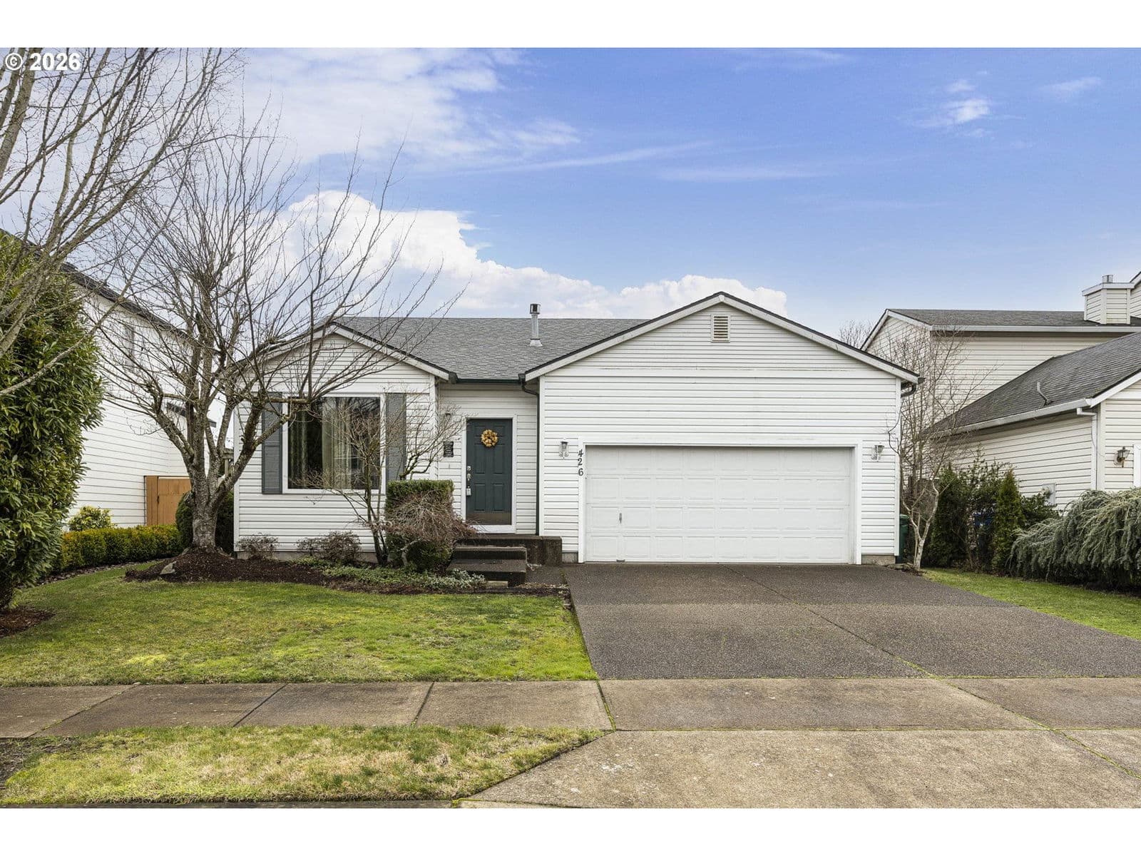 Immaculate modern ranch home set on 0.12-acre lot in North Albany, offering effortless one-level living with space to relax or entertain. This thoughtfully designed home features 3 bedrooms and 2 fully updated bathrooms, along with a spacious living room anchored by a cozy gas fireplace, and new LVP flooring installed in 2025. The kitchen is both functional and inviting, with abundant counter and cabinet space, island with storage, built-in microwave, stainless-steel appliances, gas stovetop, ambient nighttime mode lighting and more. Just off the kitchen the dining area includes a pantry and seamless access to the patio and backyard living space. Step outside to a peaceful fully fenced yard, designed for both relaxation and enjoyment-complete with a patio, custom pavers, fire pit, raised garden beds, and generous lawn perfect for games or pets.