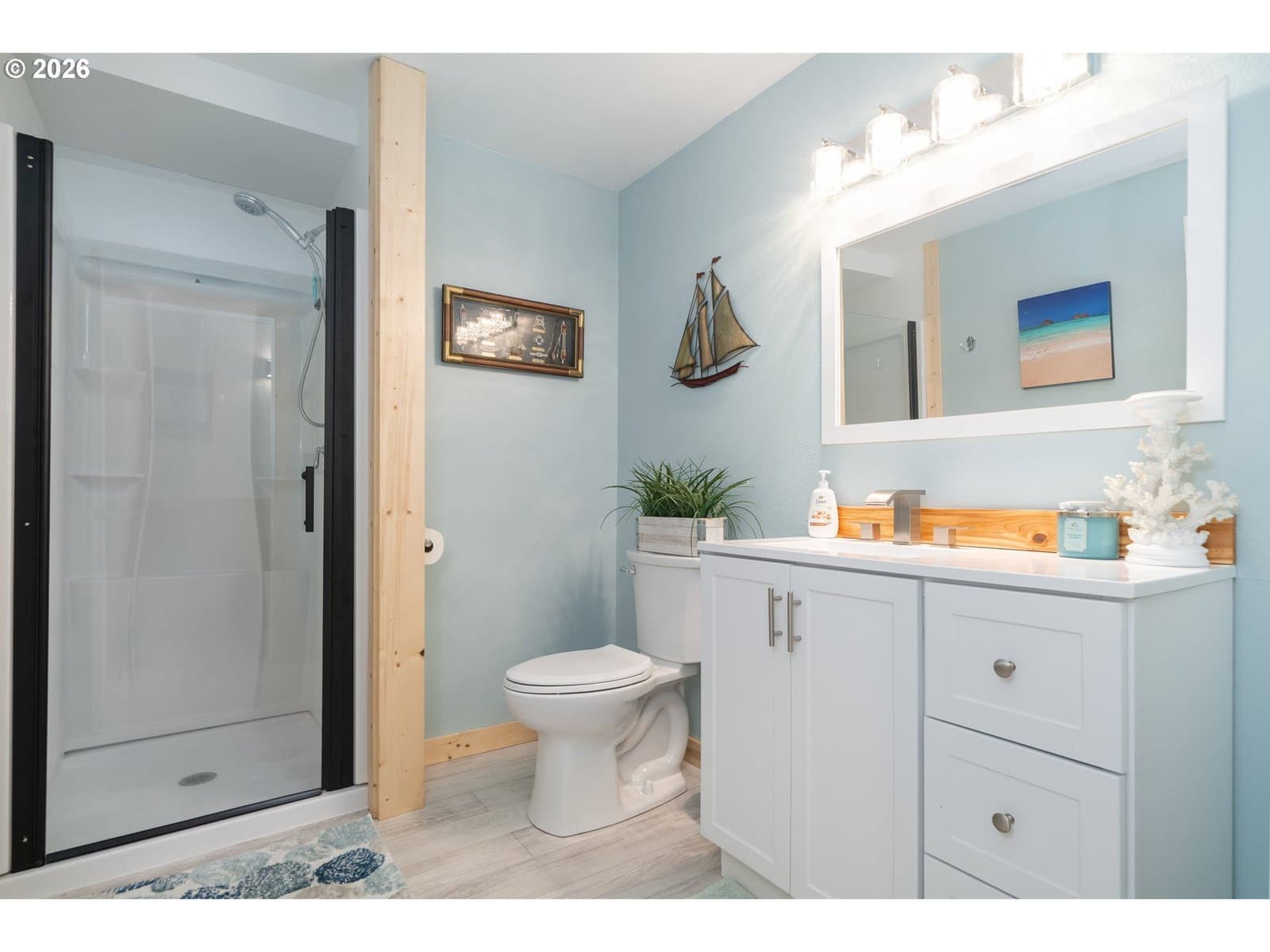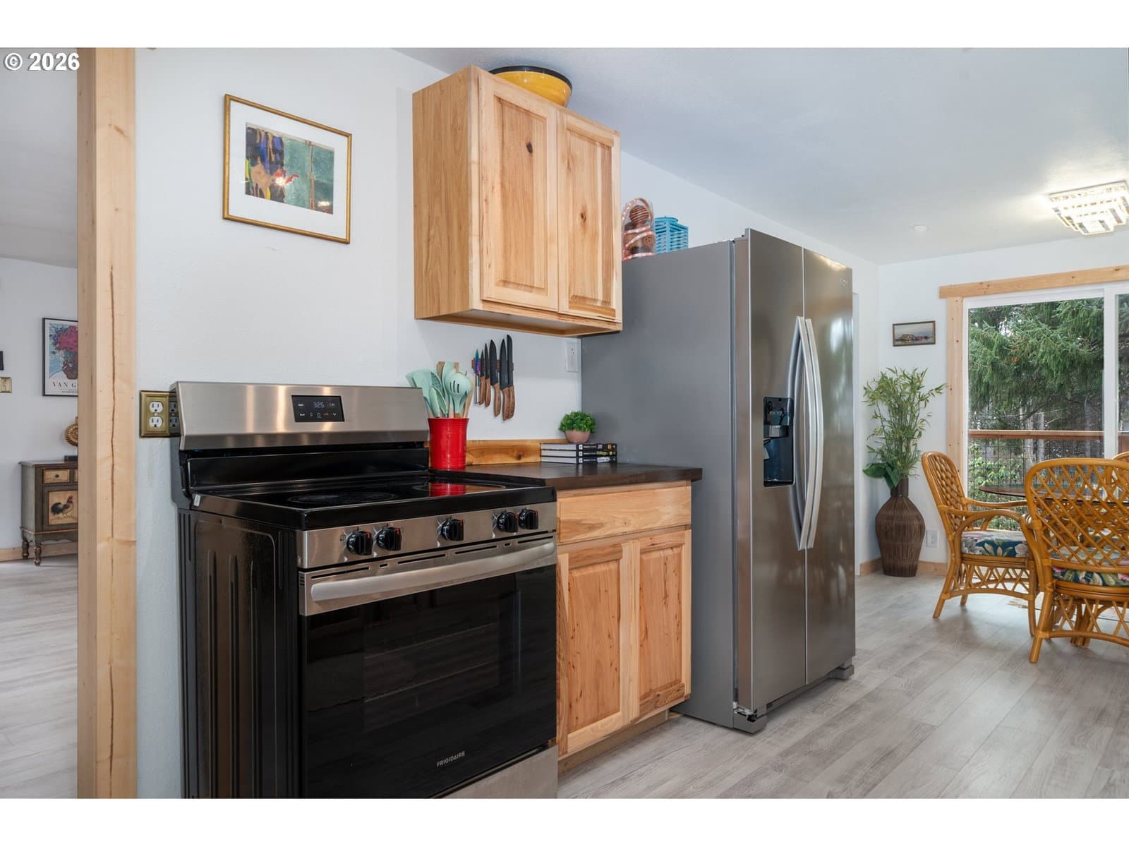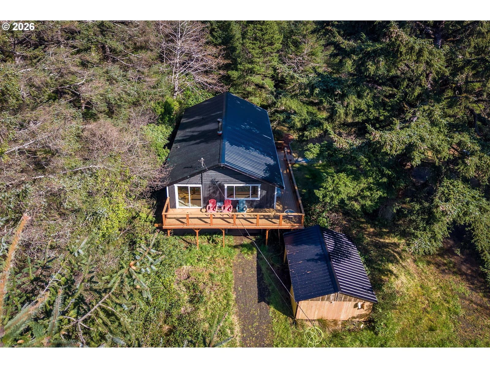 Tucked away in a lush forest setting, this completely remodeled coastal retreat offers the perfect blend of privacy, comfort, and ocean views. Set on .21 acres, this 1,196 SF home features 3 bedrooms and 2 bathrooms, thoughtfully updated with stylish LVP flooring, new carpet, and modern finishes throughout. The inviting kitchen showcases stainless steel appliances, beautiful butcher block countertops, and a warm, functional layout ideal for everyday living or entertaining. Enjoy the expansive wrap-around deck where you can take in peaceful ocean views, listen to the sound of the waves, and enjoy the surrounding greenery in total privacy. The property is rich with natural beauty, including established blueberry bushes and a serene forest backdrop that creates a true coastal escape. Beach access is across the Hwy. Additional highlights include RV hookup and a spacious 3-car garage, offering ample room for vehicles, toys, and storage. Whether you're looking for a full-time residence, vacation getaway, or investment opportunity, this home captures the essence of coastal living with comfort and seclusion.