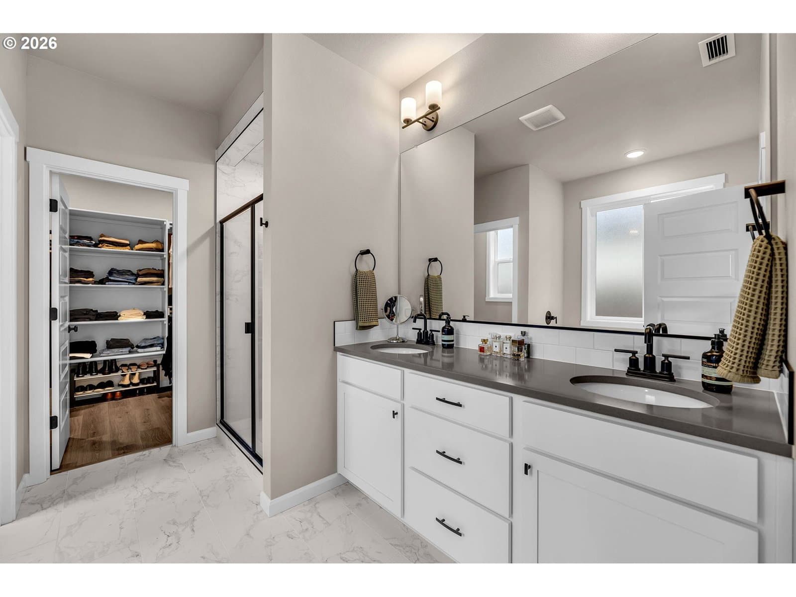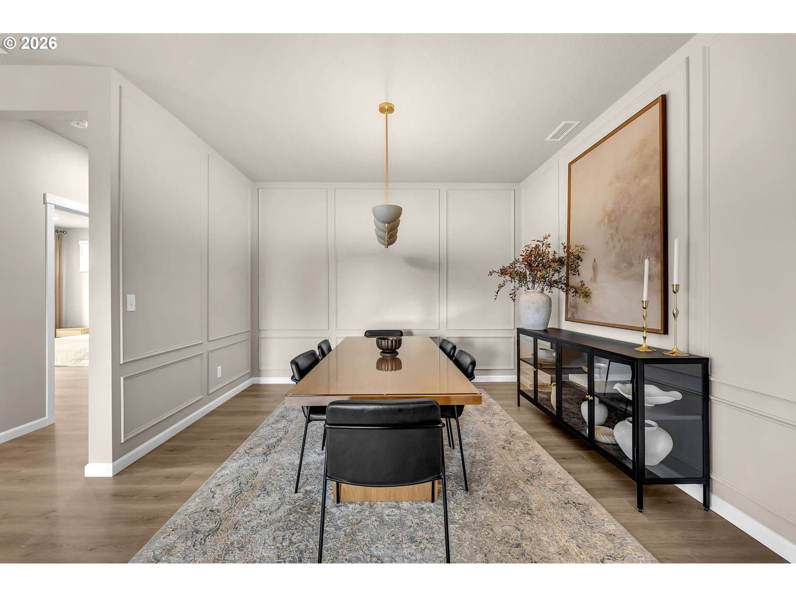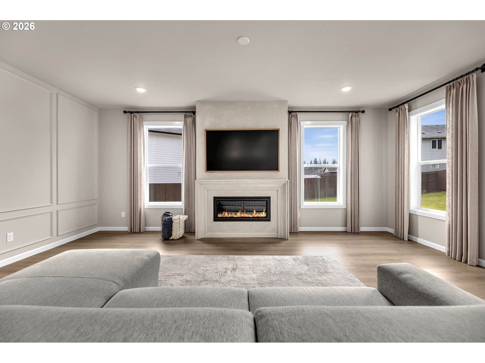 Extra-large 10,468 sqft lot. Single Level with Over-Sized Kitchen Island. Custom Added Wall Paneling in the Dining Room and Living Room. Custom Limestone Plaster Fireplace Surround and Mantel. Added Garage Cabinets for Storage. Amenities include a Covered Patio (with gas hook-up), 9ft Ceilings, Painted White Cabinets, Quartz Slab Countertops in Kitchen and Bathrooms/Laundry, Stainless Gas Appliances, Full Height 4 by 16-Inch Subway Style Backsplash, Under Cabinet and Pendant Lighting, Linear Style fireplace in the Great Room, Laundry Cabinets with Sink, Laminate Plank Flooring throughout. Tile Bathroom Floors and Master Shower. Upgraded flooring in the primary bedroom and closet. Full landscaping, Yard sprinkler system, fencing, garage door opener, and an electric car charger plug. Schedule a showing today! 3D Scan and Tour available. All installed appliances stay! Aho Construction