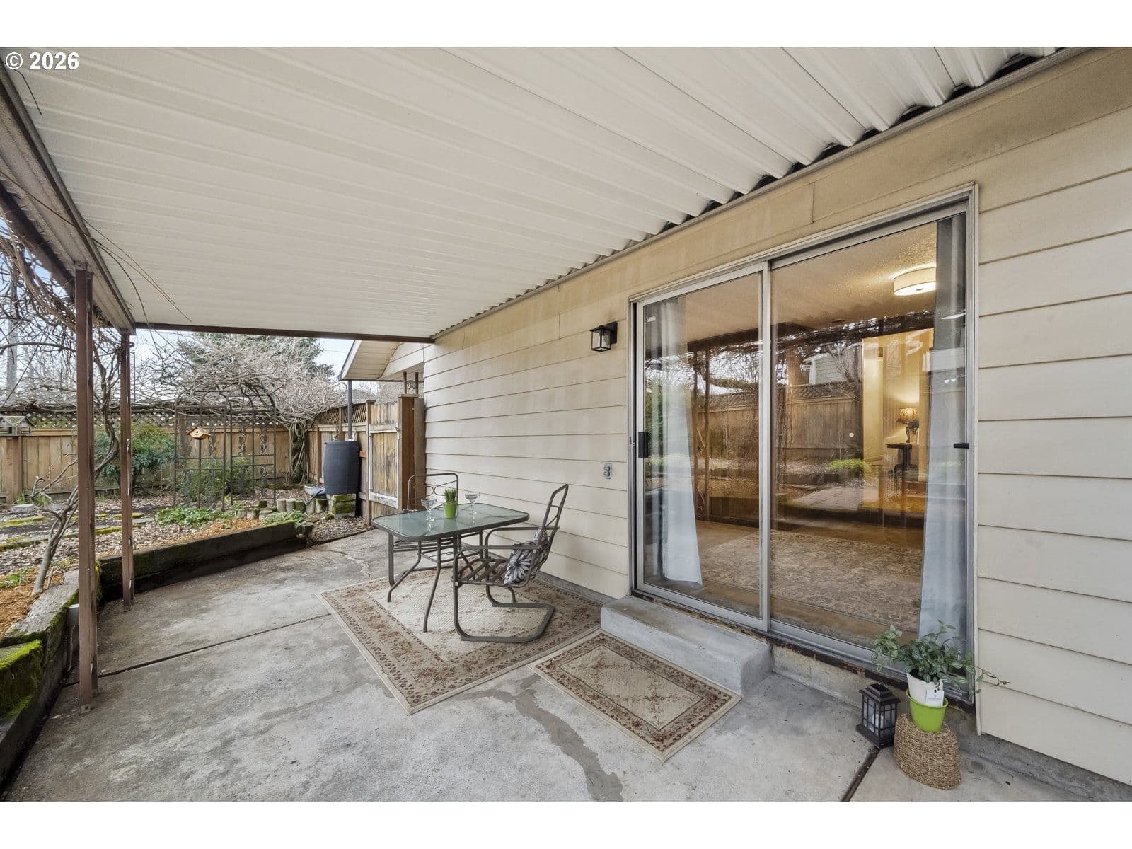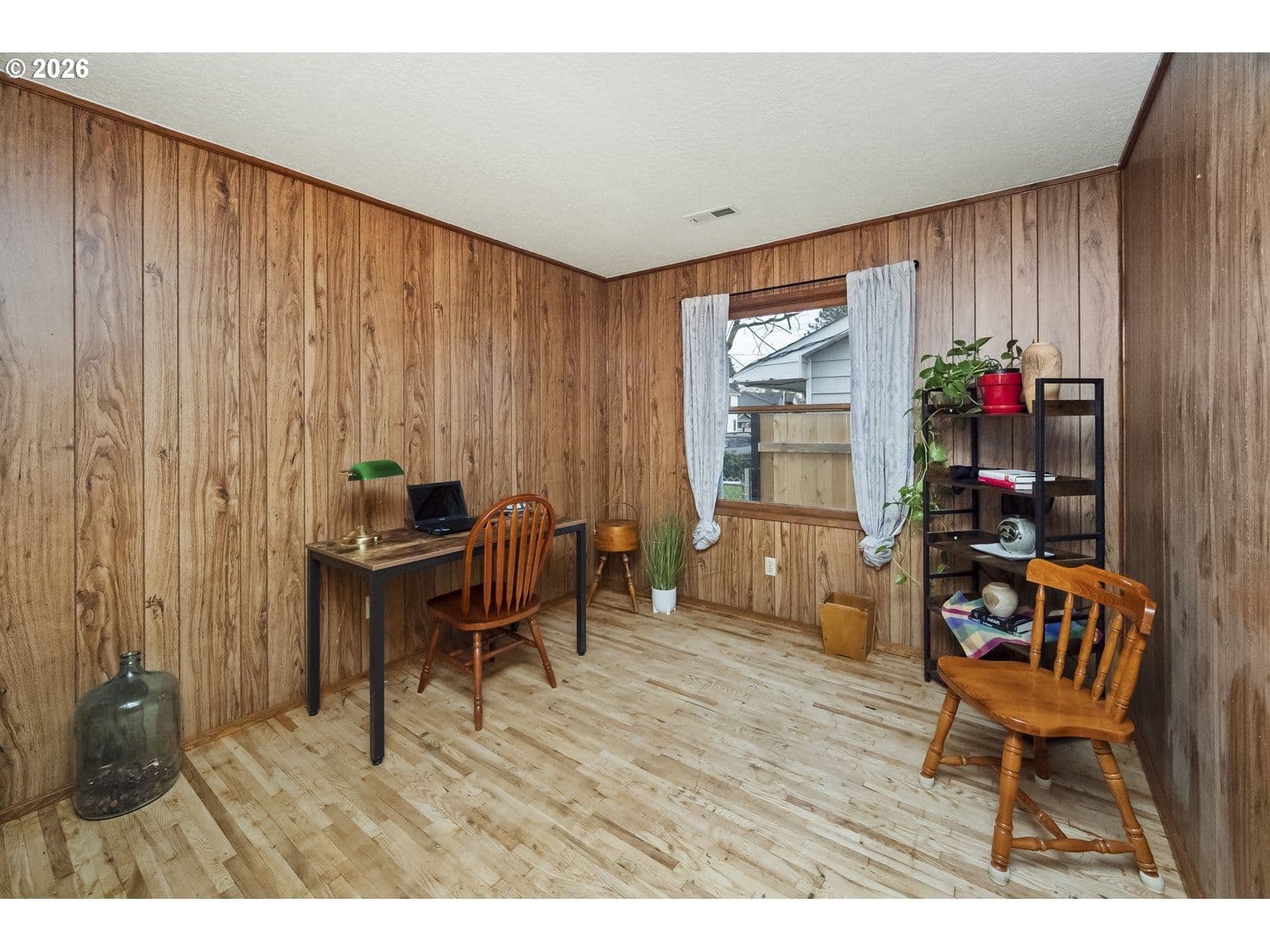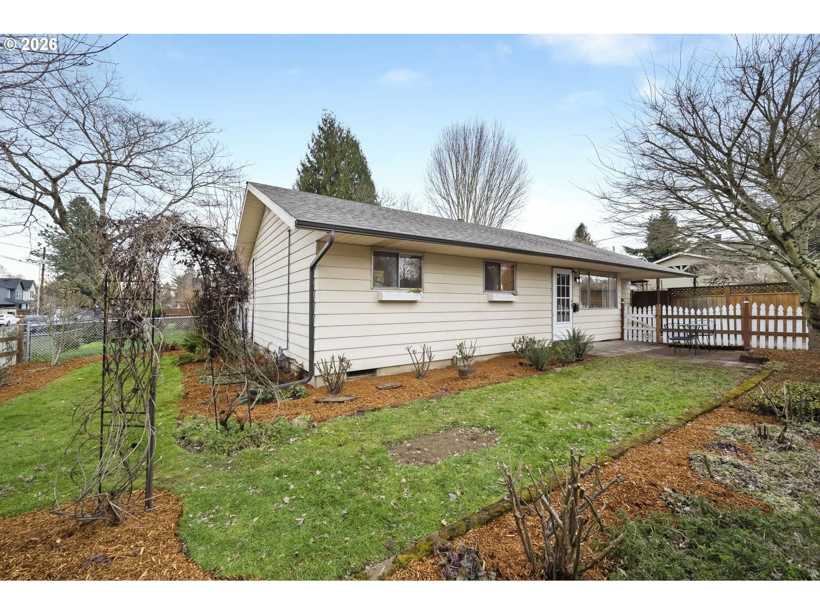This sweet St. Johns ranch has been lovingly cared for by one owner since it was built in 1964! Located on a well-landscaped, fully fenced corner lot with an alley on the other side, this home feels like a private gardener's paradise with raised beds, japanese maples, hydrangeas, roses, and a spectacular wisteria that's a neighborhood favorite. Inside, find a spacious living room with original hardwood floors and a big picture window that flows into the dining space and comfortable kitchen. The family room is an excellent place to watch movies and relax after a long day, or create your ideal game room or creative space with direct access to the garden. The full bathroom and two spacious bedrooms are in their own wing of the house- enjoy having an oversized primary bedroom, or easily convert this space back into two separate rooms to make a three bedroom home. This special property exudes warmth and care- enjoy the peace of mind that comes with a brand new electrical panel, newer (2021) hot water heater, and a newer (2023) roof! [Home Energy Score = 3. HES Report at https://rpt.greenbuildingregistry.com/hes/OR10244024]
