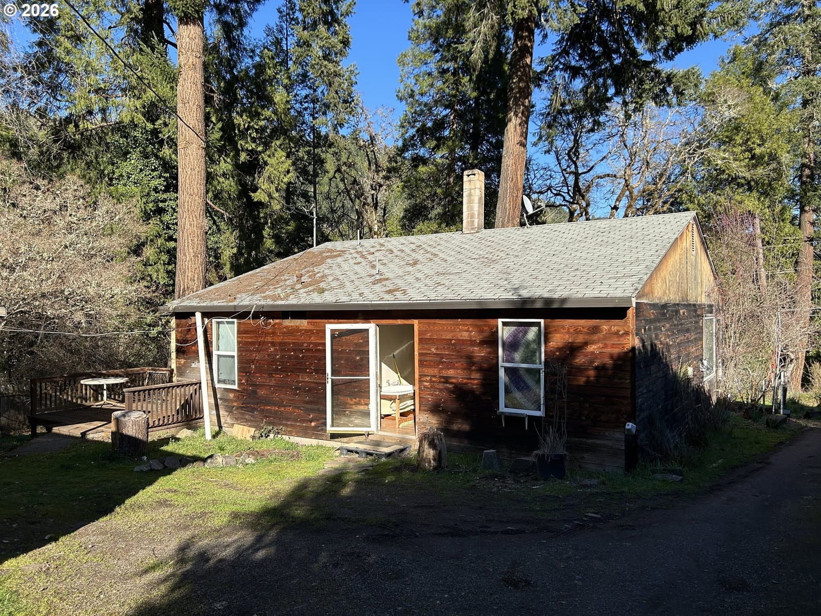 Tucked into the natural beauty of Westfir, 48158 Westoak Rd offers a rare chance to create something truly special.Set on .41 acres, the property features a 2-bedroom, 1-bath main home with a spacious living room, generous kitchen, dedicated laundry room, and two covered porches perfect for enjoying peaceful surroundings.A detached ADU adds even more potential, complete with its own kitchen, bathroom, living area, and bedroom — ideal for future rental income, guest space, or multi-generational living.Two additional outbuildings provide storage and workshop possibilities. One structure was damaged in a storm and will require removal.This is a fixer and will need substantial renovation. For the right buyer, this is an opportunity to restore, reimagine, and build equity on nearly half an acre in a scenic Oregon setting.Priced at $200,000 and sold as-is.Bring your vision. The potential is here.