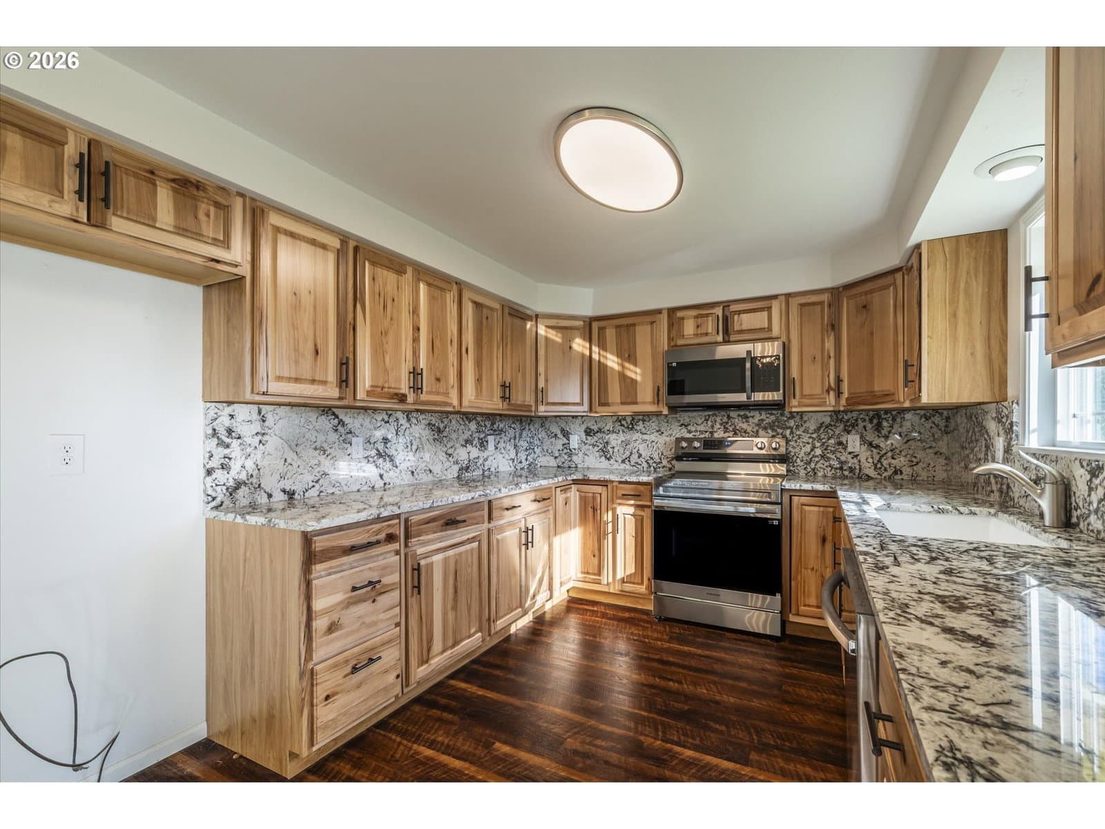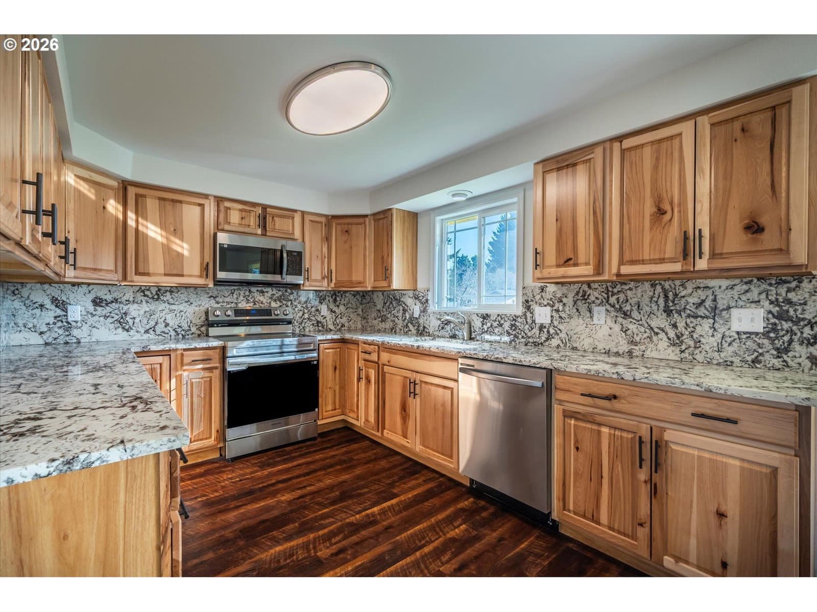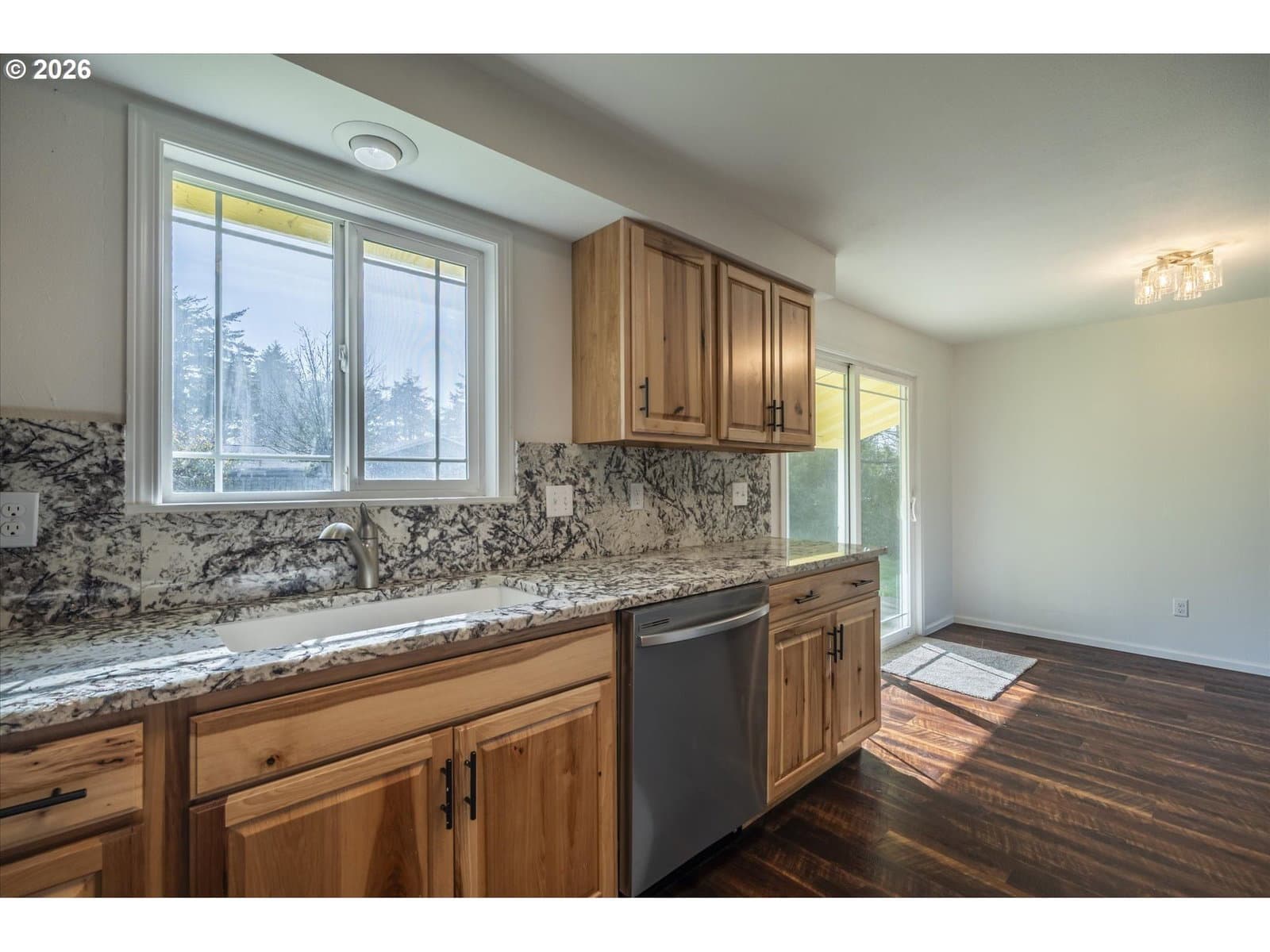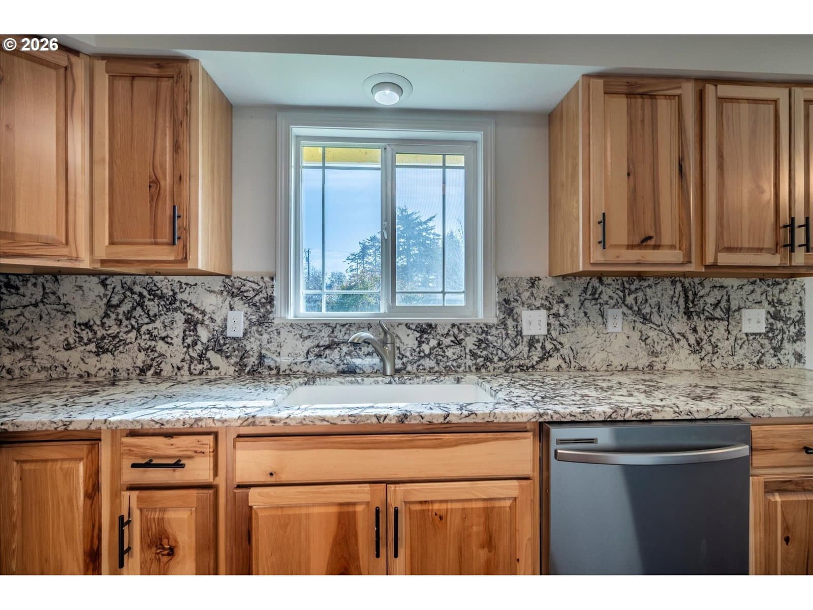 Beautiful pride of ownership home just up the hill from Old Town Bandon with great shopping and restaurants! This home is situated on a quiet cul-de-sac and has been refreshed with all new flooring, hickory kitchen cabinets, granite slab countertops, stainless steel appliances and a brand new water heater. It lives like a much newer home with oversized double-pane windows allowing the sun to stream into the windows. Lovely larger front and backyard has generous space for gracious entertaining with friends and family and your own mini-farm plus an oversized 1 car garage. Amazing location blocks from the refreshing Pacific Ocean and the Bandon Dunes Golf Resort - just 3 miles north and Bandon Crossings Golf Course 5 miles south. This home is a wonderful opportunity to call your own. Seller says sell! Please call your favorite broker to see this home before it is gone!