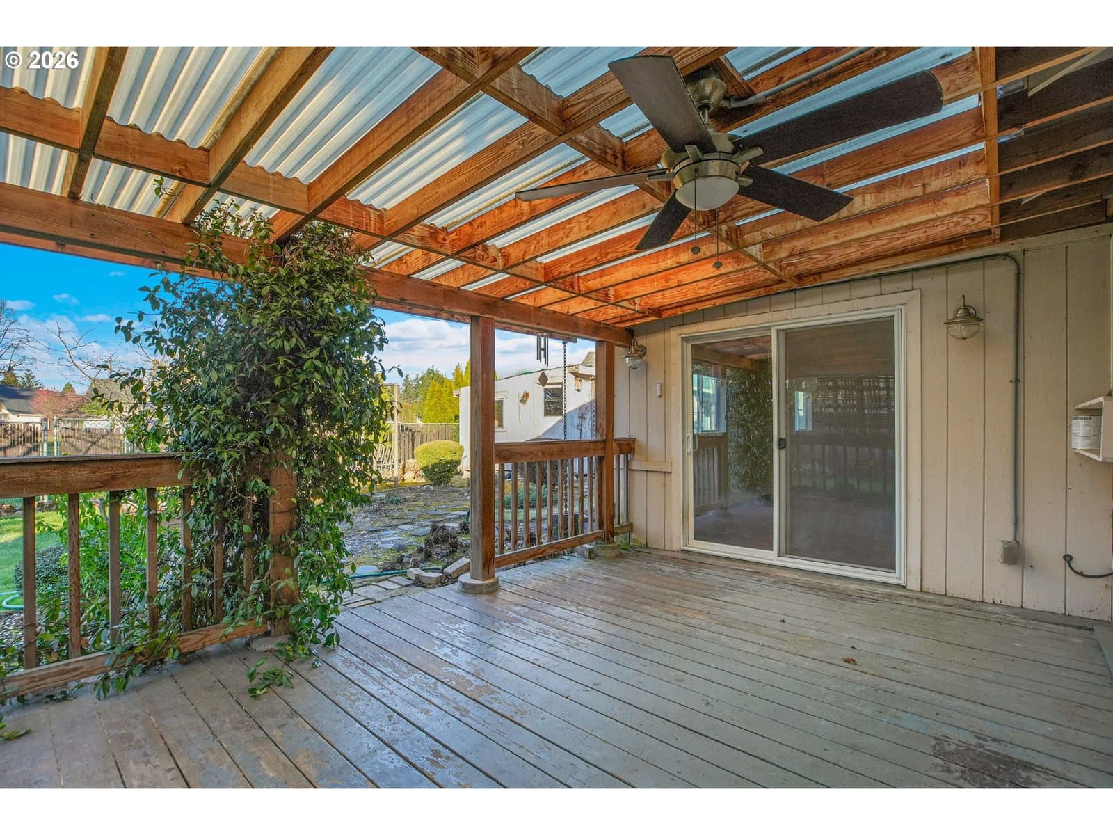 Discover comfortable single level living in this well maintained ranch located in the Centennial School District. This inviting home features a functional, easy-living floor plan with beautiful oak hardwood floors and fresh interior paint. The spacious living room welcomes you with a gas fireplace wrapped in stone and charming coved ceilings. The updated kitchen includes a gas cooktop, tile countertops, built-in oven and microwave, ample cabinetry, pantry storage, and opens to the dining area—ideal for everyday living and entertaining. Bedrooms are spacious and both bathrooms have been updated, including a step-in shower in the hall bath. Additional upgrades include vinyl windows, a newer electrical panel, and gas hot water heater. The furnace and AC have been recently serviced to add peace of mind. French Doors lead to the rear step-down family room. There’s a covered deck overlooking a private backyard (with no houses behind), which offers mature landscaping, an arbor, stepping-stones, and a charming potting shed.All appliances are included. The two-car garage offers ample built-ins, overhead storage, and a designated laundry area. Conveniently situated near schools, parks, walking trails, shopping, and commuter routes, this home blends comfort, updates, and location in an established neighborhood.
