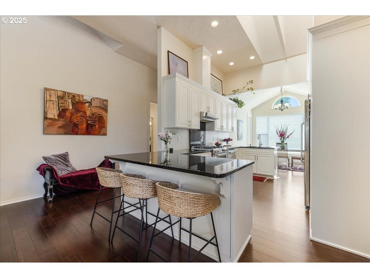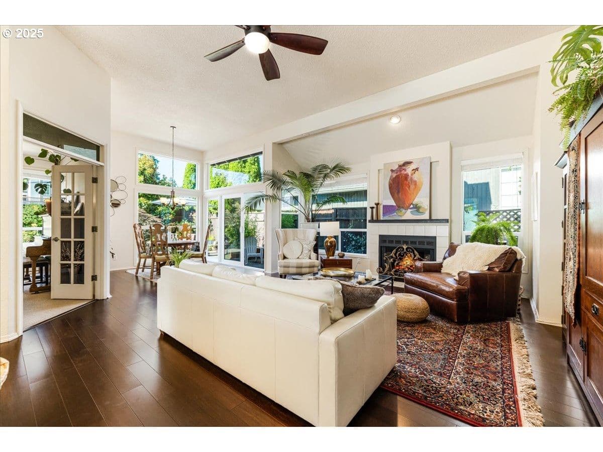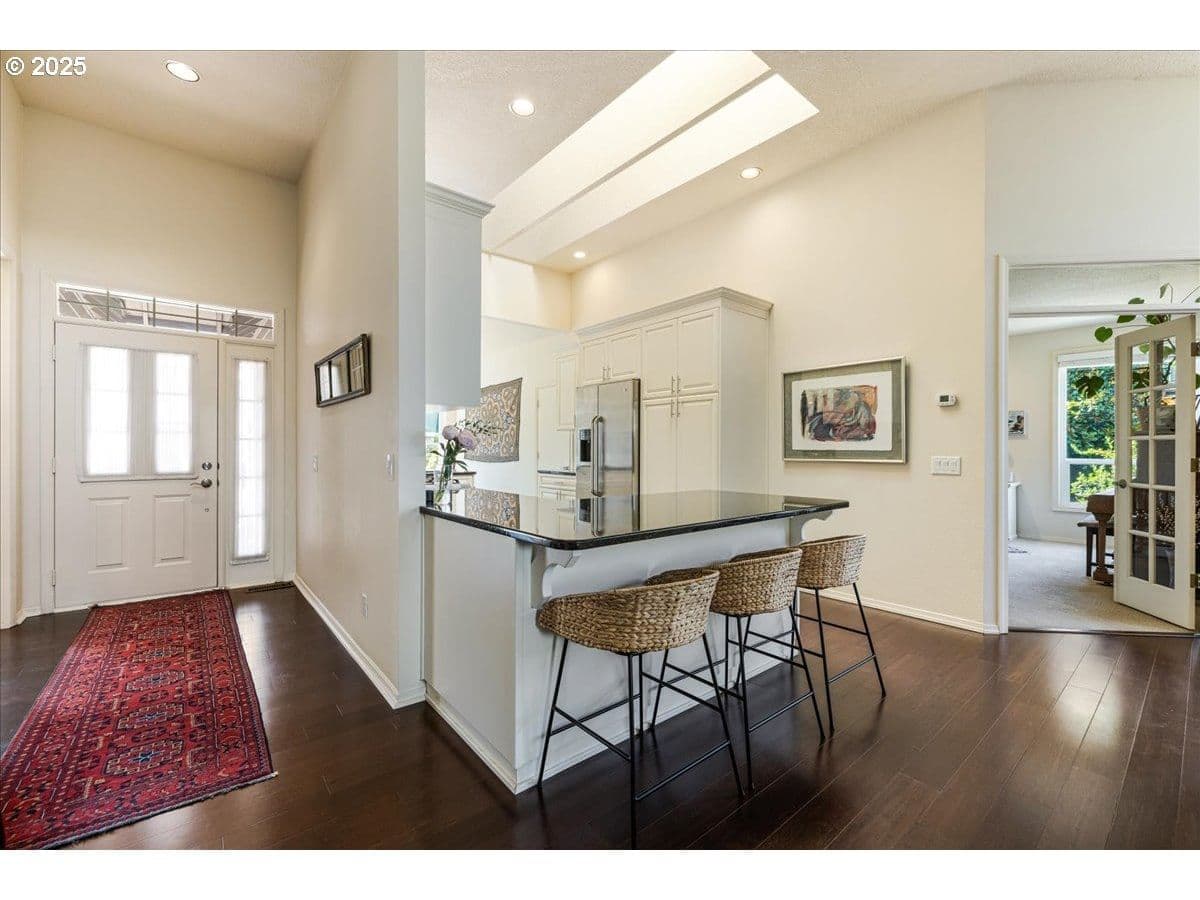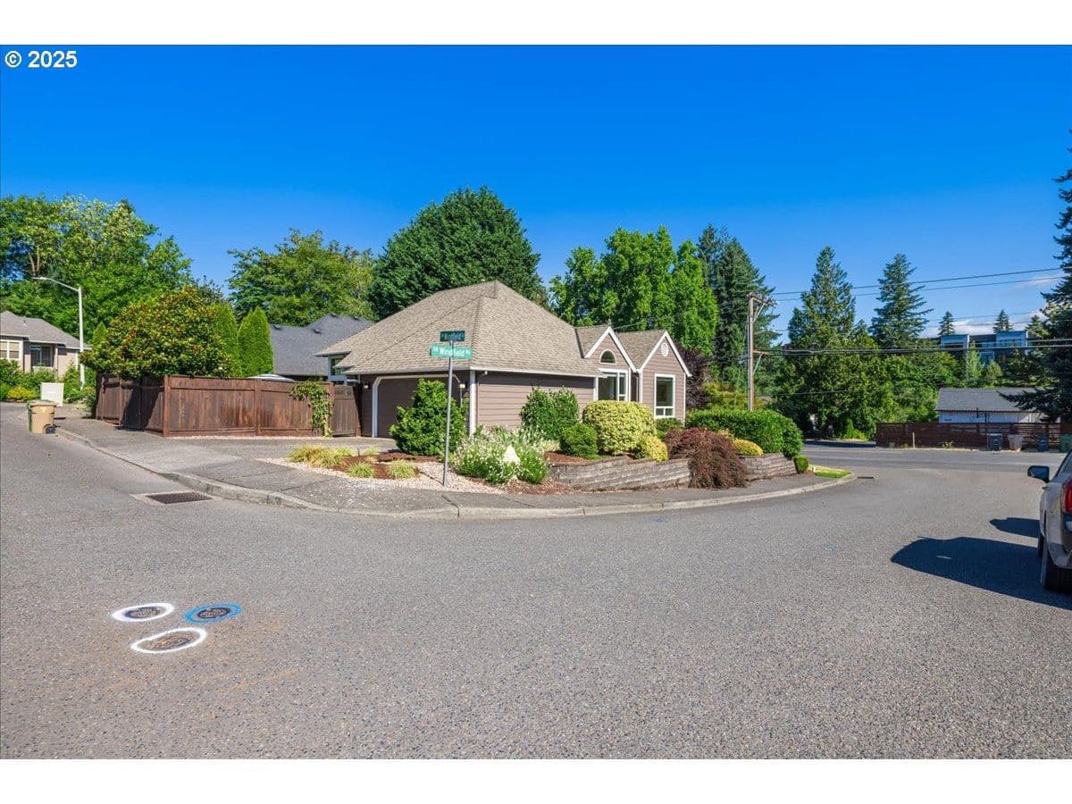 Welcome to this beautifully updated 1,615 sqft, 1988-built single-level home located on a coveted corner lot in the friendly Windfield community. This residence combines modern upgrades with fantastic natural light and functionality, offering the perfect blend of comfort, style, and convenience. The home features an open floor plan filled with an abundance of sunlight, thanks to large custom oversized windows and skylights that allow light throughout the year. The kitchen provides high-end stainless steel appliances, a gas range, granite countertops, and a large eat-at peninsula, making it ideal for both everyday living and entertaining. The great room is a bright, airy space with oversized windows and skylights, complemented by a cozy gas fireplace—perfect for relaxing evenings. The primary suite offers a walk-in closet and a relaxing soaking tub, providing an ideal space for unwinding. The third bedroom includes elegant French doors, making it versatile as a bedroom, office, or guest space. Updates throughout the home include bamboo floors, utility sink, attic and crawl space insulation, new siding in 2024, and brand new water heater. The home’s energy-efficient features provide comfort year-round. Step outside to enjoy the professionally landscaped yard, which features a fenced backyard for the 4-legged fam with beautiful perennial gardens. Spacious flagstone courtyard—perfect for outdoor enjoyment. The attached garage offers secure parking and easy access. Located within walking distance to Trader Joe’s, Zupans, and Mercato Grove, with quick access to I-5, 217, and 205, this neighborhood combines convenience with community charm. The home’s corner lot offers additional privacy and outdoor space, making it a perfect place to enjoy the vibrant local scene, outdoor recreation, and a welcoming neighborhood vibe. Don’t miss this exceptional opportunity to own a home in one of Lake Oswego’s most sought-after neighborhoods, offering ample space with all the amenities