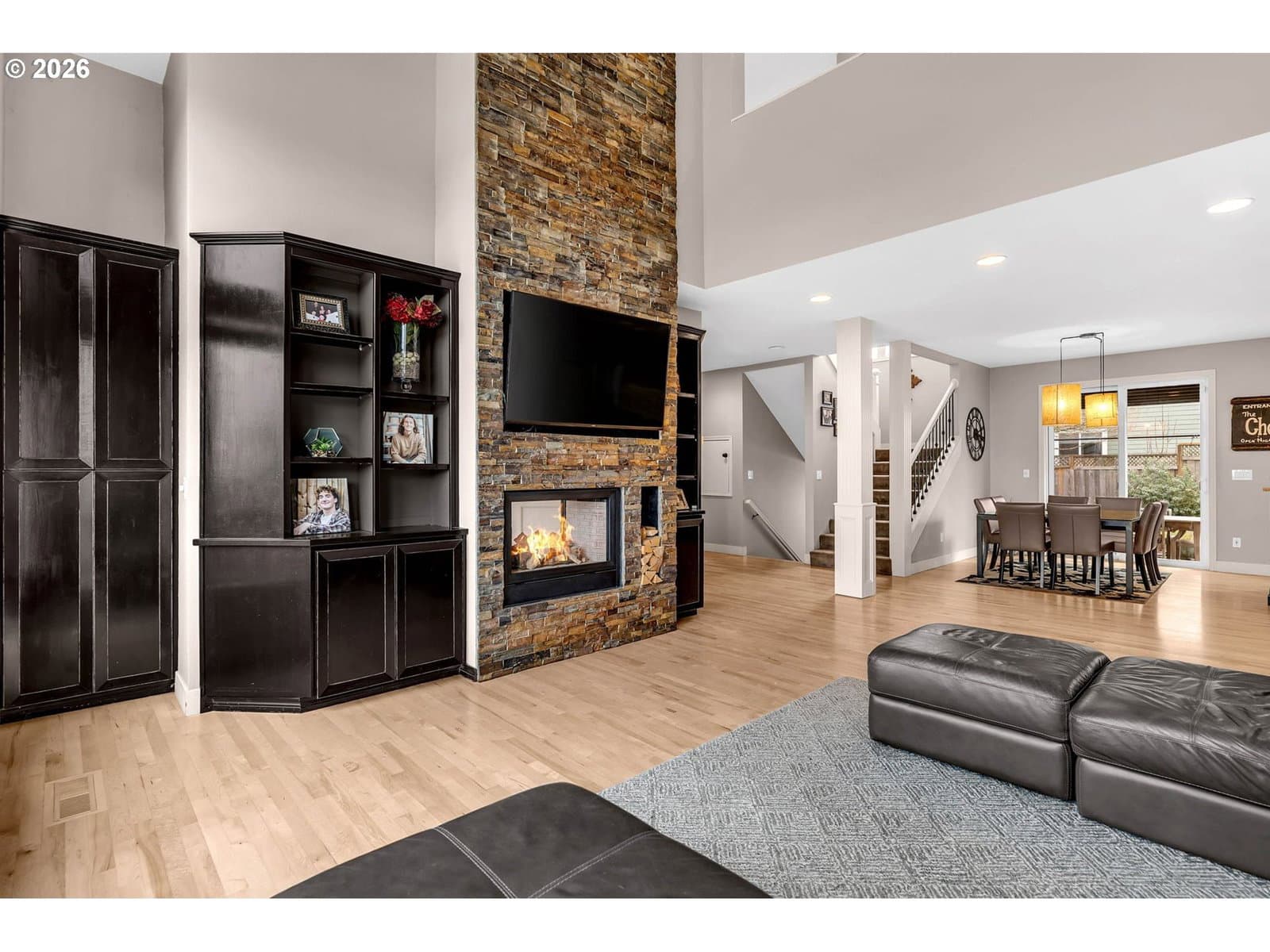Experience elevated living in this beautifully updated 4-bedroom, 3.1-bath home offering sweeping territorial, city, and river views—all within the highly sought-after Camas School District. With 3,513 square feet of refined living space, this residence blends modern style with exceptional livability. Step inside to find hardwood floors throughout, an updated kitchen with stylish finishes, and refreshed bathrooms that bring a contemporary touch to every level. The main floor features a dedicated office with deck access—perfect for working from home while taking in the expansive views. A spacious media room provides the ideal space for movie nights, gaming, or casual gatherings. The luxurious primary suite is a true retreat, featuring its own private view deck and a stunning picture window framing Mt. St. Helens—an unforgettable backdrop to start and end your day. Three additional bedrooms offer ample space for guests or family. Situated on a generous corner lot, the outdoor living spaces truly shine. Enjoy two large patios, a sprawling yard, and your very own backyard basketball court—ideal for play, entertaining, or simply relaxing in the sunshine. A 3-car garage provides abundant parking and storage. With its blend of modern upgrades, versatile living spaces, premier school district, and breathtaking vistas, this home offers a truly exceptional lifestyle.