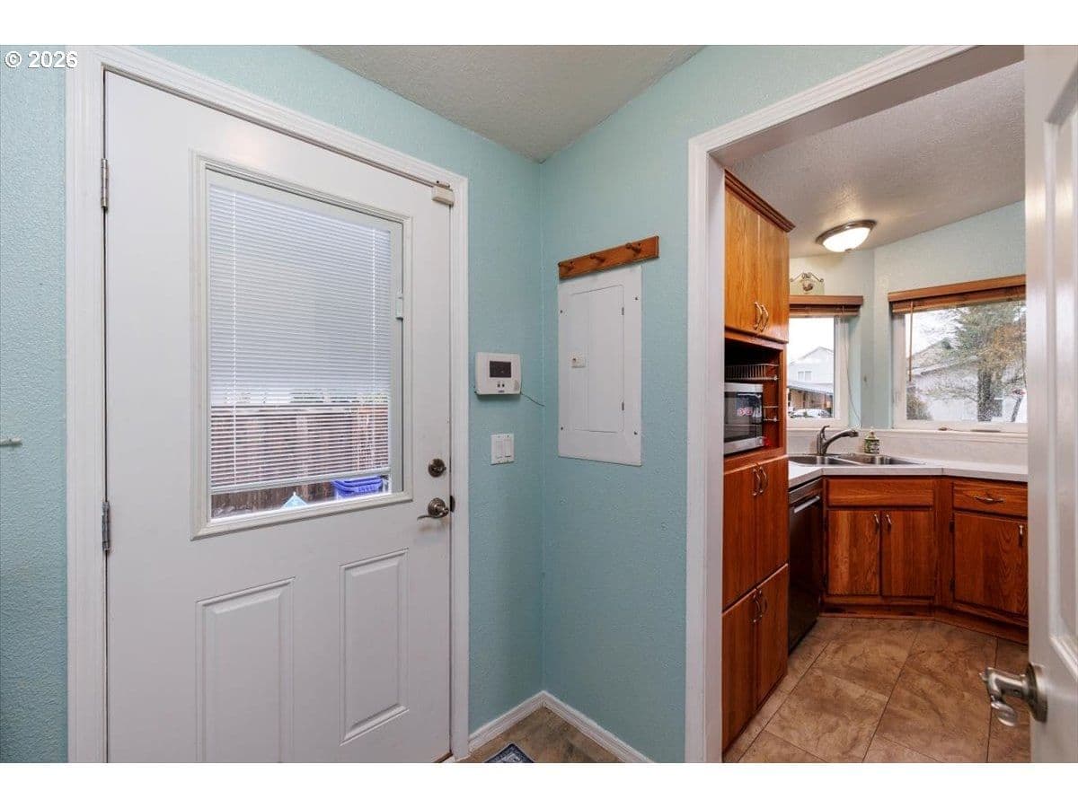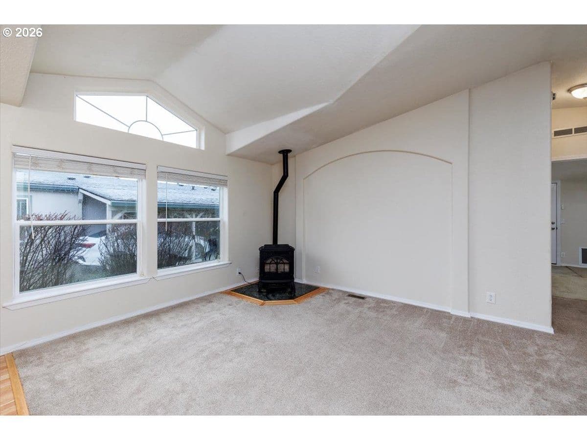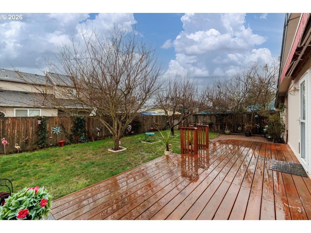 Welcome home to this charming, move-in-ready single-level gem! Thoughtfully updated with new gutters, double-pane vinyl windows, engineered hardwood floors, and a cozy pellet stove. Vaulted ceilings add an airy, open feel, while stainless steel appliances—plus fridge, washer, and dryer—make settling in easy. Step outside to a private, fenced backyard featuring a retractable awning over the deck, raised garden beds, a storage shed, and fruit trees—perfect for relaxing or entertaining. Convenient Hillsboro location close to shopping, dining, and public transportation.