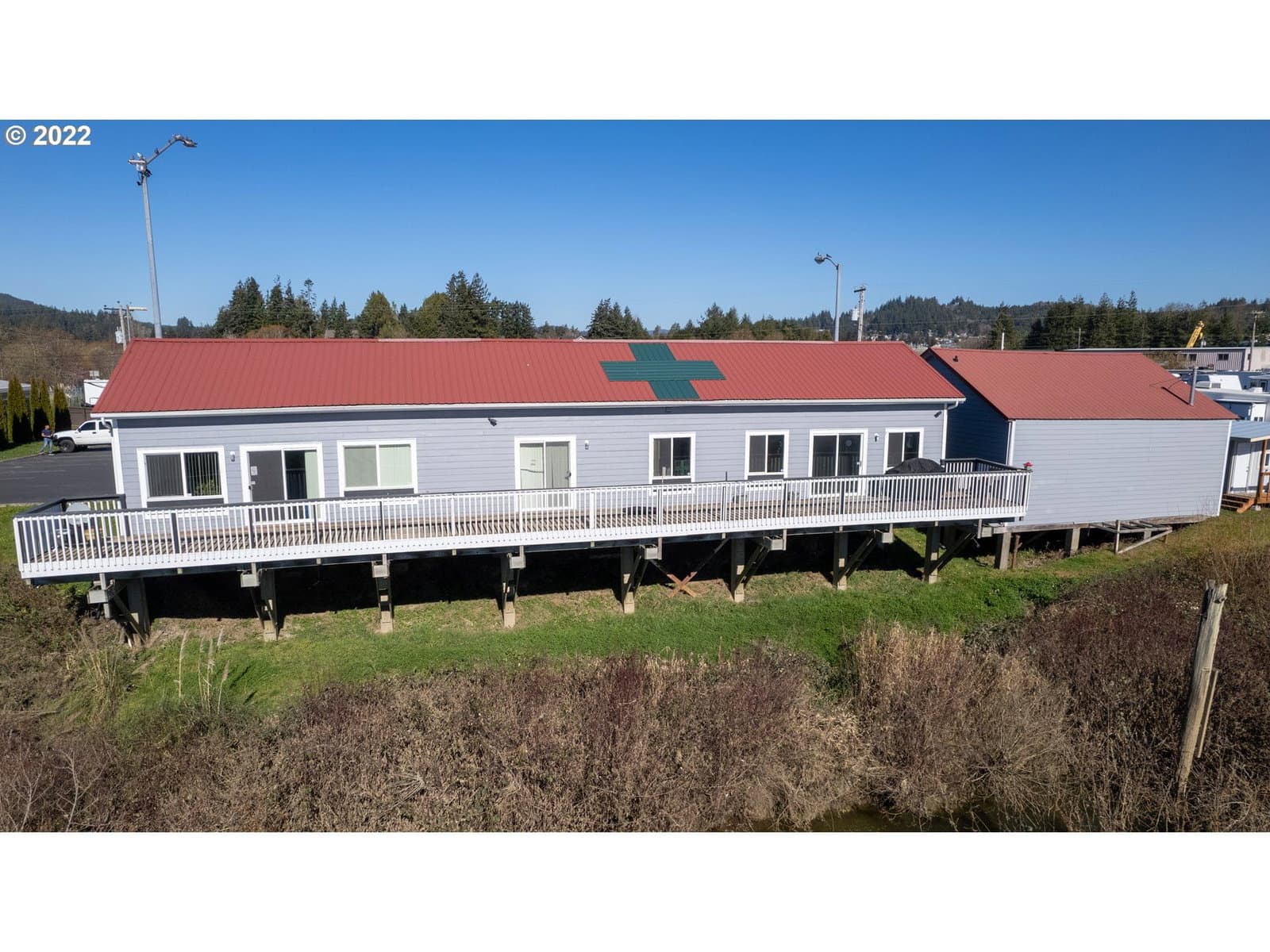 PRICE REDUCED!!! Fantastic opportunity to purchase this beautiful river front, income property generating $3,800 per month with long term leases. Buildings are built to last with metal roof, hardy cement siding, and massive concrete pillar foundation. Excellent layout with common lobby area leading to clean updated spaces with attractive finishes and fixtures. Large deck overlooking the river front. Separate shop with office and bathroom is vacant. Large paved parking. MOTIVATED SELLER!!!