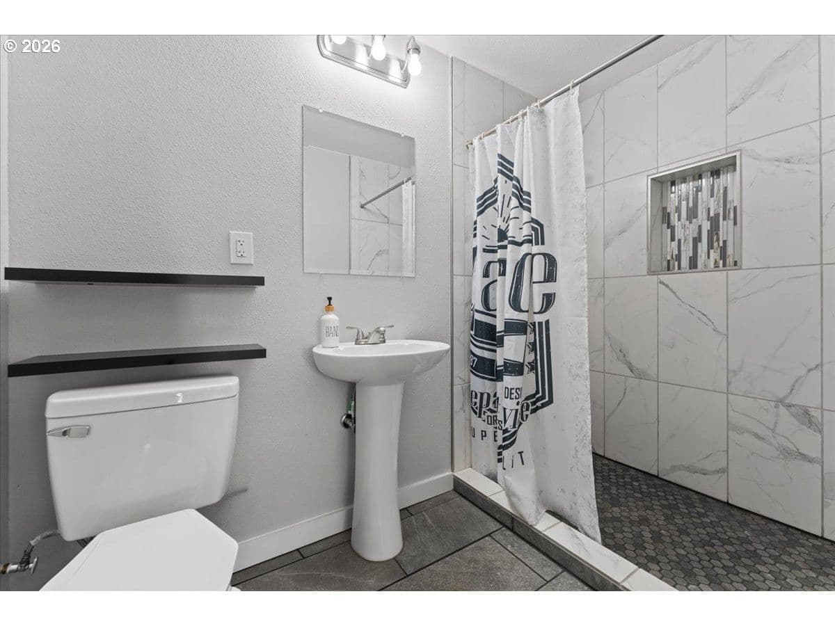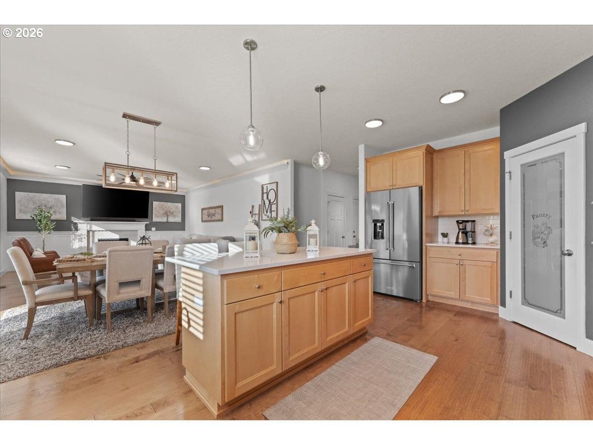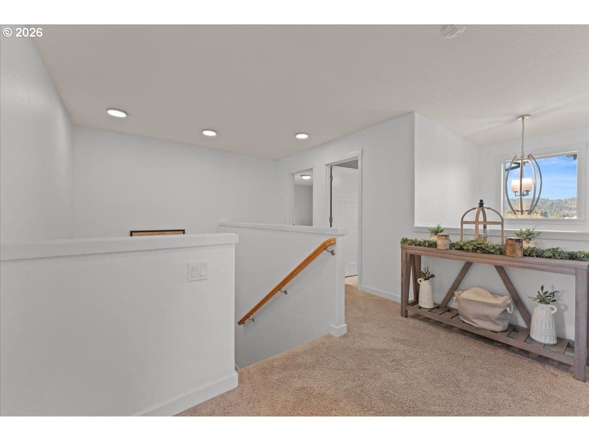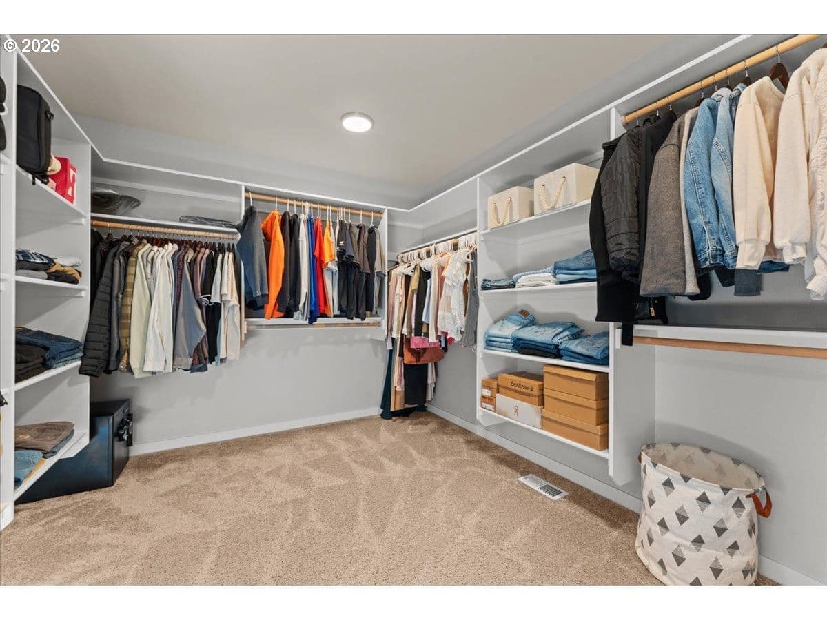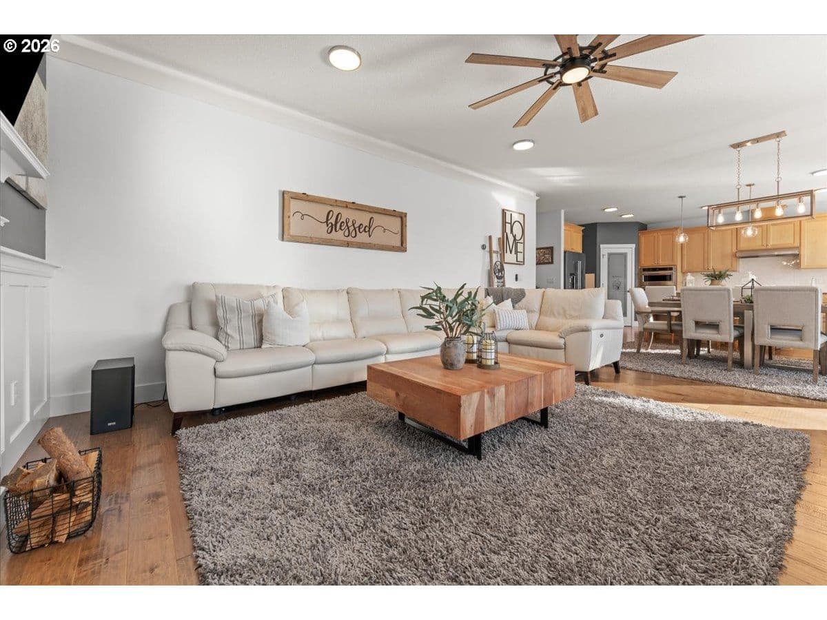 An exceptional property set on a level 2 acres offers a rare combination of a beautiful custom home, expansive grounds & an absolutely incredible shop! Contractors, hobbyists, car collectors, mechanics & entrepreneurs alike will appreciate the massive workshop equipped for serious use. The 45’x54’ shop features 3 roll-up doors, allowing drive-through access. Ideal for RVs, boats, car collections, inventory storage & creative pursuits. The shop includes it’s own bathroom w/tile shower, tankless water heater, utility sink + is prepped for HVAC installation. Sun-drenched & spotless, the house is completely move-in ready! Work from home in style in a bright, private office at the front of the house. Designed for both form & function, the generous kitchen will delight your inner chef, featuring wood cabinetry, sleek quartz countertops, walk-in pantry & modern engineered hardwood floors. The 2023 stainless steel KitchenAid suite includes a 5-burner gas range + built-in electric oven, all surrounding a generous island & eat-in bar. The heart of the home is the expansive, open-concept great room—ideal for hosting lively dinner parties, or curling up on a massive sectional for cozy movie nights. Escape to the primary suite w/high ceilings, generous walk-in closet, f/s tub, shower & 2 single vanities. A flexible 4th bedroom makes an excellent office, playroom, or craft space. Upstairs laundry adds everyday convenience (2023 Samsung washer & dryer included). Storage abounds throughout the home, shop & backyard shed. Set perfectly between Oregon City, Molalla, and Canby, w/access to Hwy 213, shopping, dining & major medical, while maintaining a peaceful small-town feel. Level, securely fenced w/garden & fruit trees & endless possibilities for a pool, sports court or play area. Located on a private cul-de-sac loop with friendly neighbors, colorful sunsets & no through traffic. This is a truly special property offering space, flexibility & exceptional amenities—inside and out!