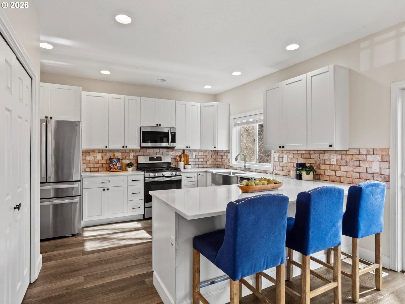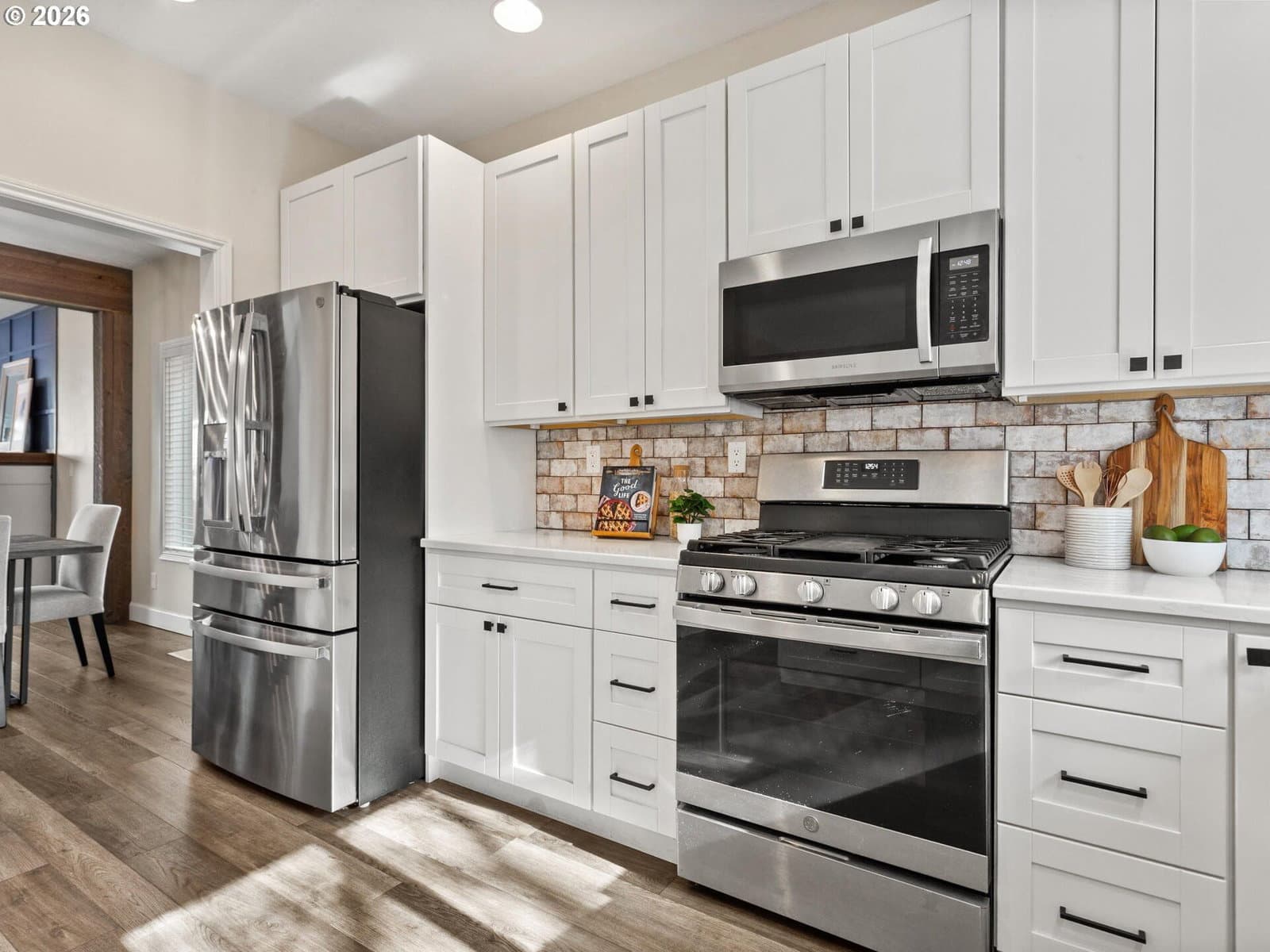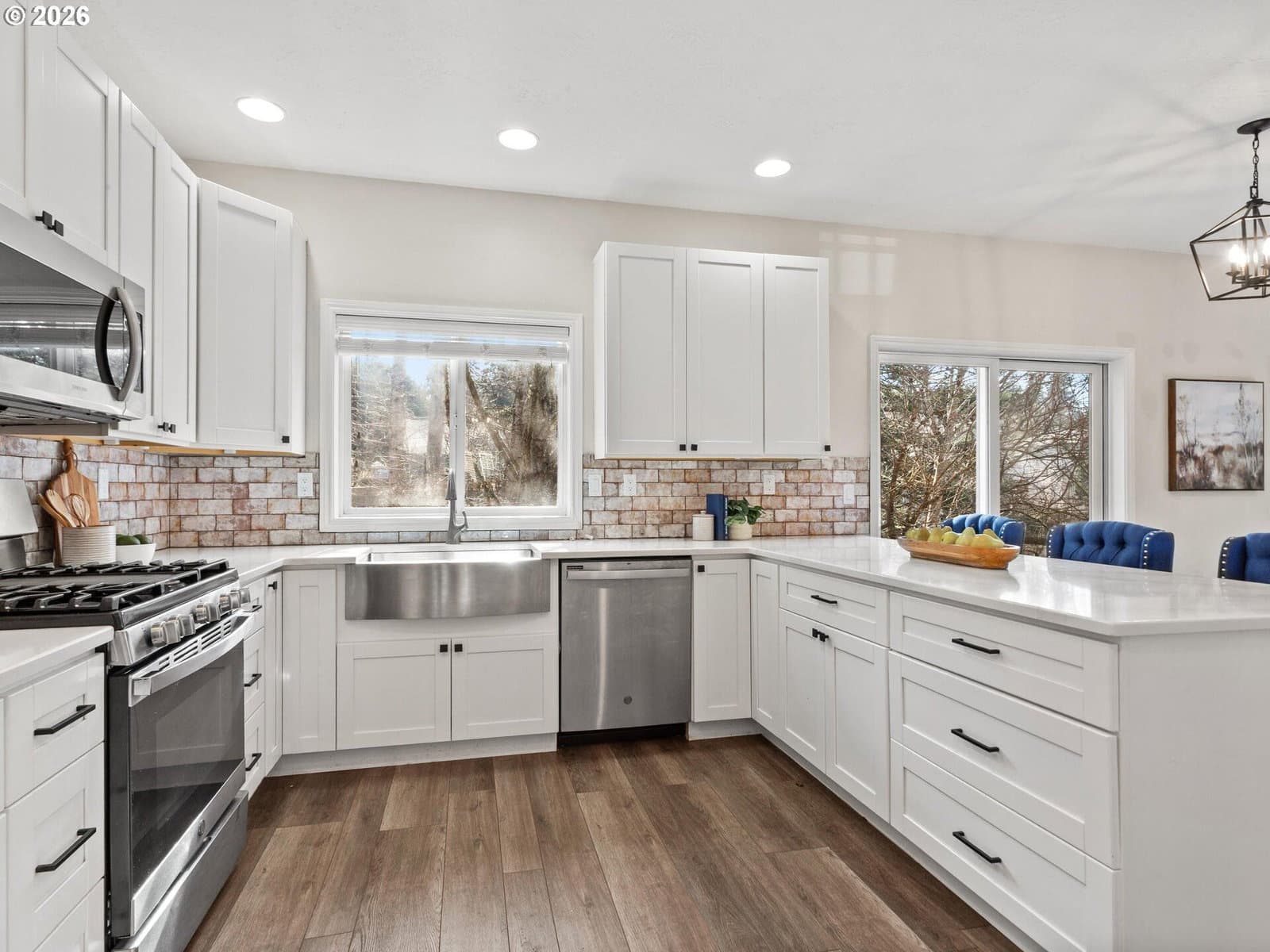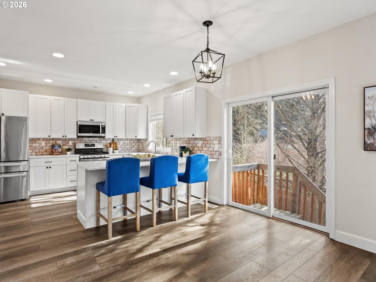 Head to toe remodel in quiet Damascus neighborhood right up the street from community park. Backing to greenspace for true privacy. New high end laminate flooring! Completely remodeled kitchen with new cabinets, quartz counters, tile backsplash, pantry, and stainless appliances. High ceilings throughout. Exposed beams, wainscoting, amazing natural light. Stunning Primary Suite with barn door, completely updated primary bath with new vanities, fixtures, jet tub and walk-in closet. Rare 5 bedroom floorplan for 4 bedrooms plus office. Main floor bedroom. Brand new deck overlooks serene greenspace. Completely ready to move in and enjoy!