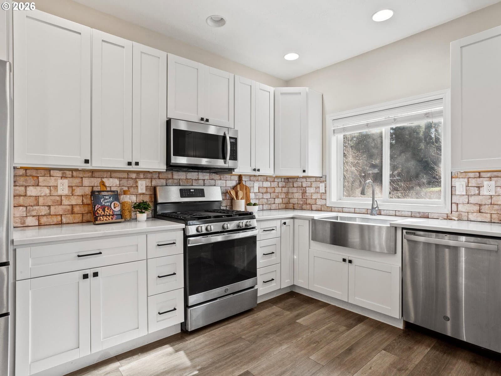 Gas Water Heater, Dishwasher, Disposal, Free-Standing Range, Microwave