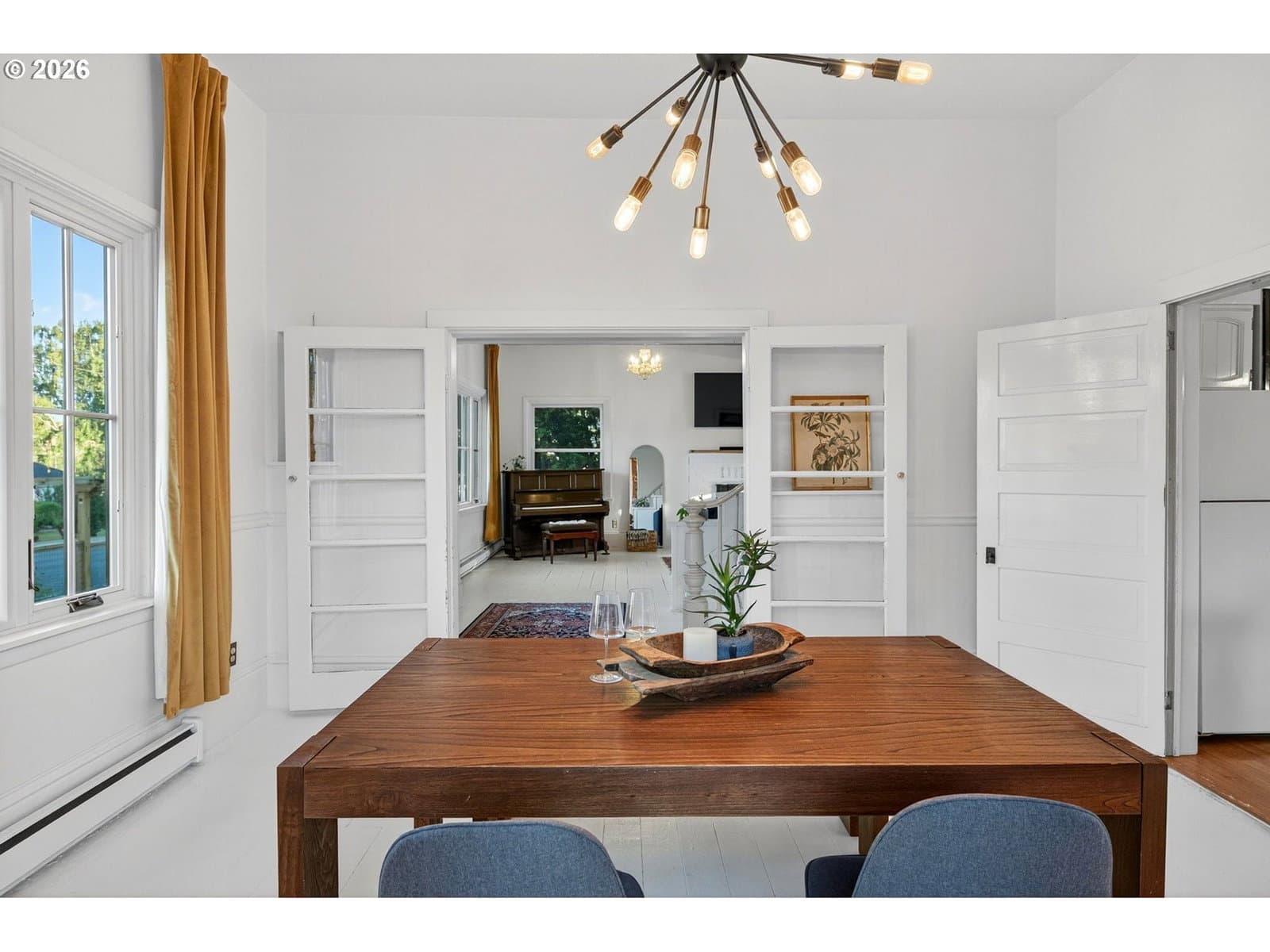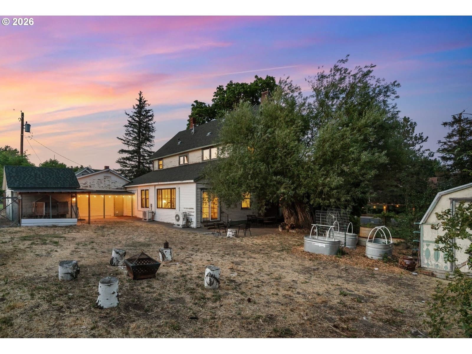 Set on a sunny corner lot in the heart of Dufur, Oregon, this 4-bedroom, 2-bath home offers 2,552 sq ft of historic character, thoughtful updates, and sweeping views of Mt. Hood and the surrounding high-desert landscape. Inside, 11.5-foot ceilings, original wood floors, and expansive windows create a light-filled, airy feel throughout. Modern upgrades include updated plumbing and electrical, high-efficiency Fibrex by Andersen windows, and energy-efficient mini splits. These improvements bring comfort and efficiency while preserving the home’s original integrity. The outdoor spaces reflect the pace and practicality of small-town living, with a fenced yard, covered patio, raised garden beds, chicken coop, garden shed, and original ice cellar. This is a rare combination of function and heritage. An attached two-car garage adds everyday convenience. Built in 1862 by William Heisler, one of Dufur’s earliest settlers, this is one of the town’s oldest surviving homes. It has been carefully maintained for over 160 years and remains deeply rooted in the history of the area. What sets this property apart is its connection to Dufur itself, a close-knit, character-rich town where life moves a little slower and community still matters. Walk to local cafés, markets, and seasonal events, and experience a lifestyle shaped by open skies and a strong sense of place. With easy access to The Dalles, the Columbia River Gorge, Mt. Hood recreation, and the Deschutes River, this location offers both quiet retreat and proximity to some of the Pacific Northwest’s most iconic landscapes. A rare opportunity to own a piece of Oregon history, set in one of the Columbia Gorge’s most authentic and quietly compelling communities.