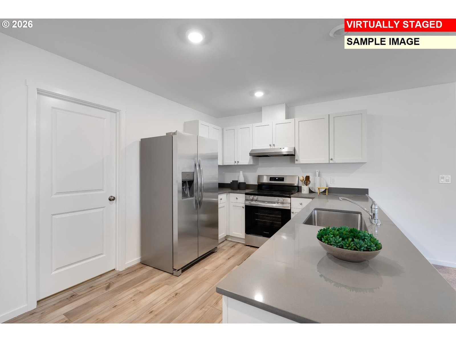 This move-in ready new construction home is located in Oakley Estates, a smaller community just minutes from Fern Ridge Lake and 15 miles from Eugene, with easy access to wine country and the coast. The Jordon plan is a single-level design with an open concept layout that connects the kitchen, dining, and great room, ideal for entertaining and everyday living. Three bedrooms are spaced throughout the home, including a private primary suite tucked into the back corner with a walk-in closet and primary bath. Interior highlights include quartz countertops, shaker-style cabinets, LVP flooring in the kitchen and bathrooms, along with fencing and landscaping. This home features the "Everything's Included" package, where central air conditioning, a refrigerator, washer and dryer, and blinds are included with the sale at no extra cost! Photos are of a similar home - countertops & flooring are as shown, but cabinet colors will vary. Homesite #23. *Incentives available with the use of our preferred lender!*