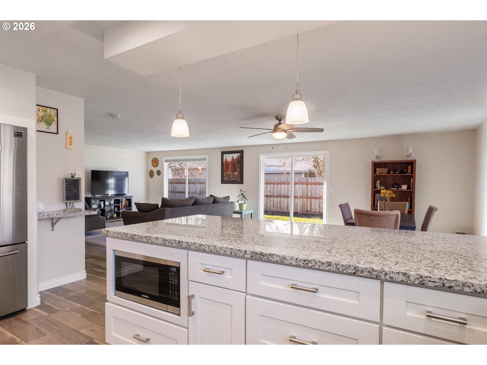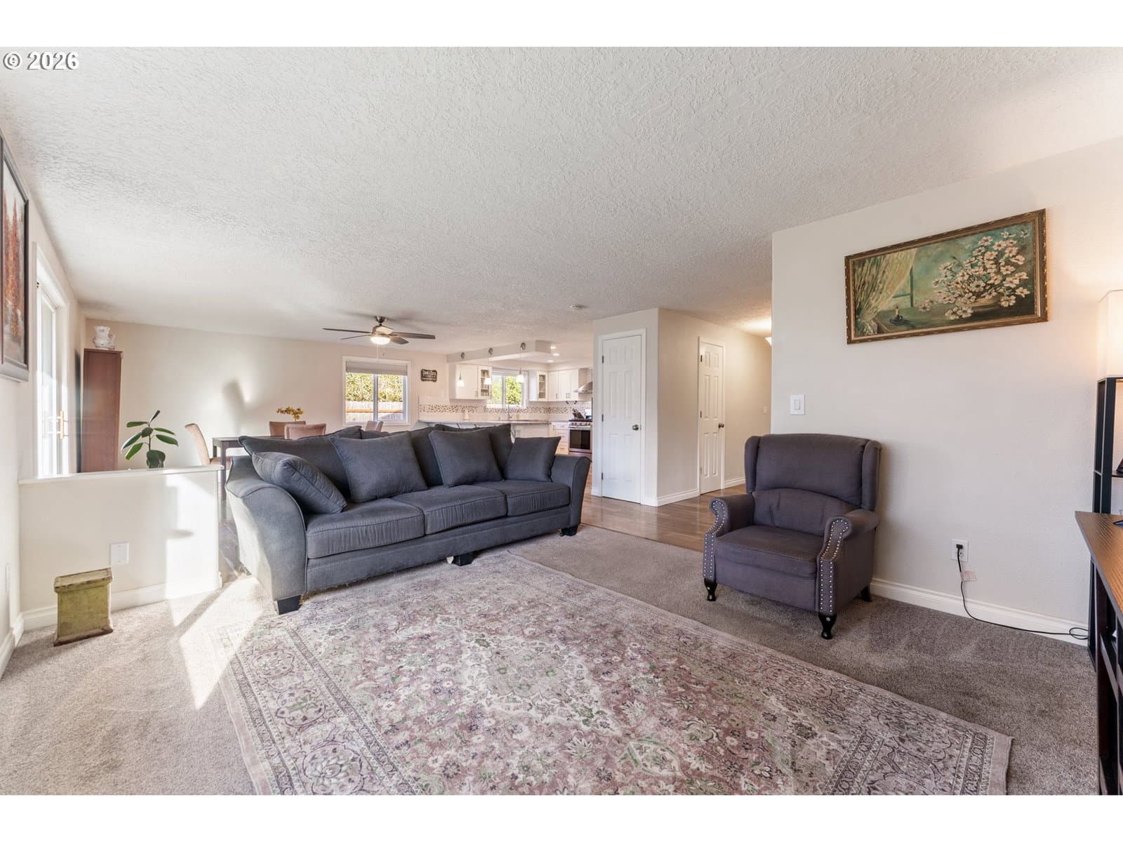 Hard-to-find privacy meets everyday convenience in this exceptional corner-lot home in the desirable Jones Farm neighborhood—just minutes from Intel and major Hillsboro employers. This well-designed single-level great room floor plan offers a rare 4-bedroom, 2-bath layout, ideal for flexible living, work-from-home needs, or hosting guests. The heart of the home is an impressive gourmet kitchen, featuring granite countertops, a 36-inch stainless steel farmhouse sink, generous cabinetry, and a walk-in food pantry—perfect for cooking, entertaining, and everyday living. The open-concept layout flows seamlessly into the main living area, enhanced by beautiful simulated wood laminate flooring, while wall-to-wall carpeted bedrooms provide comfort and privacy. Enjoy the privacy of a spacious corner lot with an exceptionally large side yard, a rare feature offering abundant RV and boat parking secured by a newly installed RV/boat gate. The outdoor space is further enhanced by established old-growth grapevines, a quince tree, and one mature apple tree, creating a charming and productive landscape. Additional highlights include a 2-car garage, thoughtful single-level design, and a prime location that balances neighborhood tranquility with unbeatable proximity to Intel, shopping, dining, and commuter routes. A unique opportunity to own a versatile, single-level home with space, privacy, and exceptional outdoor amenities in one of Hillsboro’s most sought-after neighborhoods. American Home Shield warranty is transferrable to new owner. AHS warranty expires October 2026. [Home Energy Score = 5. HES Report at https://rpt.greenbuildingregistry.com/hes/OR10243762]
