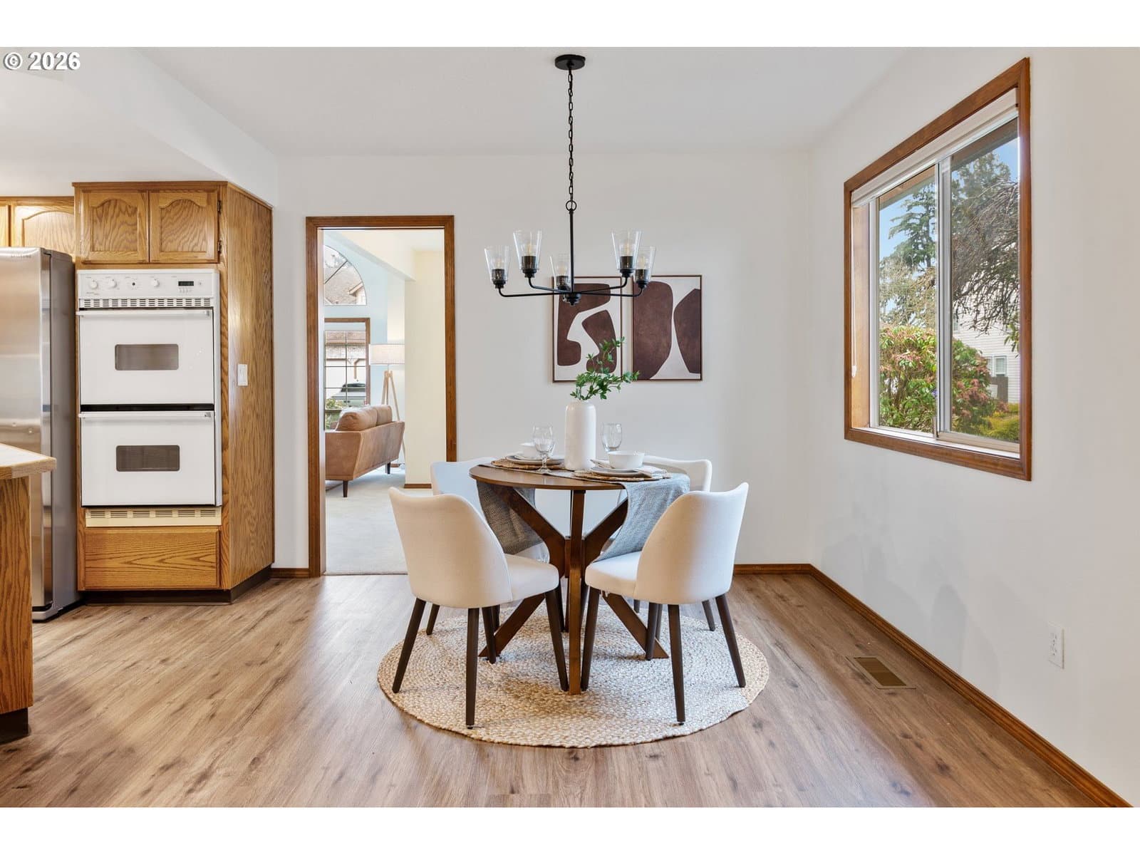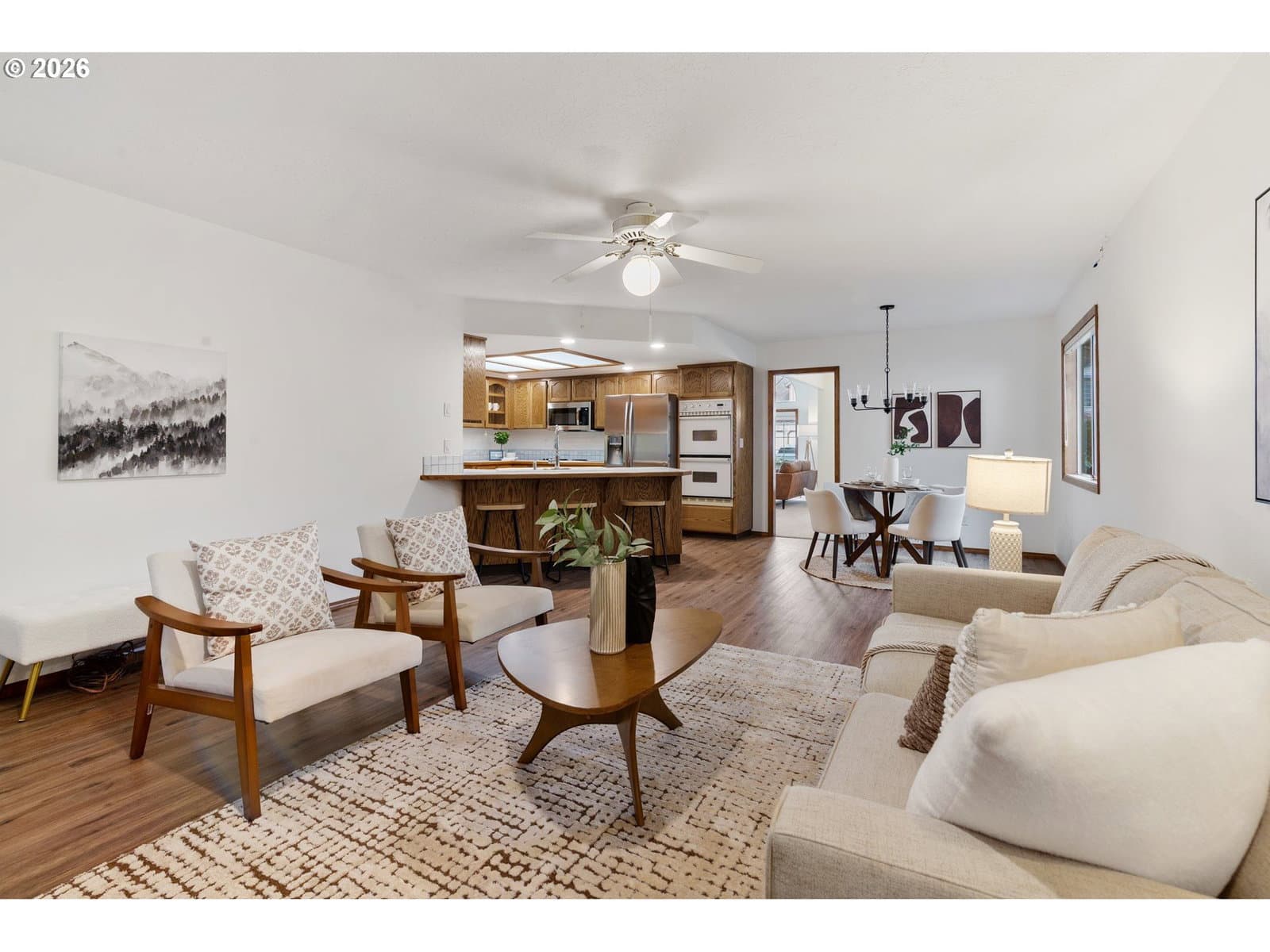 Welcome to this move-in ready, one level traditional home in the coveted Alpine Ridge neighborhood. Fresh interior & exterior paint, new vinyl plank flooring & wall to wall carpeting create a bright, inviting feel throughout. The spacious primary suite offers a walk-in closet and a well-appointed bath with double vanity sinks. The living room features a cozy gas fireplace, vaulted ceiling and a picture window that fills the space with natural light. A generous kitchen with an eating area that opens to the great room, complete with a charming wood stove- perfect for everyday living and entertaining. Outside, enjoy a fully fenced backyard with a covered cement patio, ideal for year-round enjoyment. Additional highlights include four bedrooms, two full baths, central air and an extra deep garage. A wonderful opportunity to own a thoughtfully updated home in a highly sought after Gresham neighborhood offering close proximity to historic downtown Gresham & Troutdale, Main City Park & Gresham Golf Course!