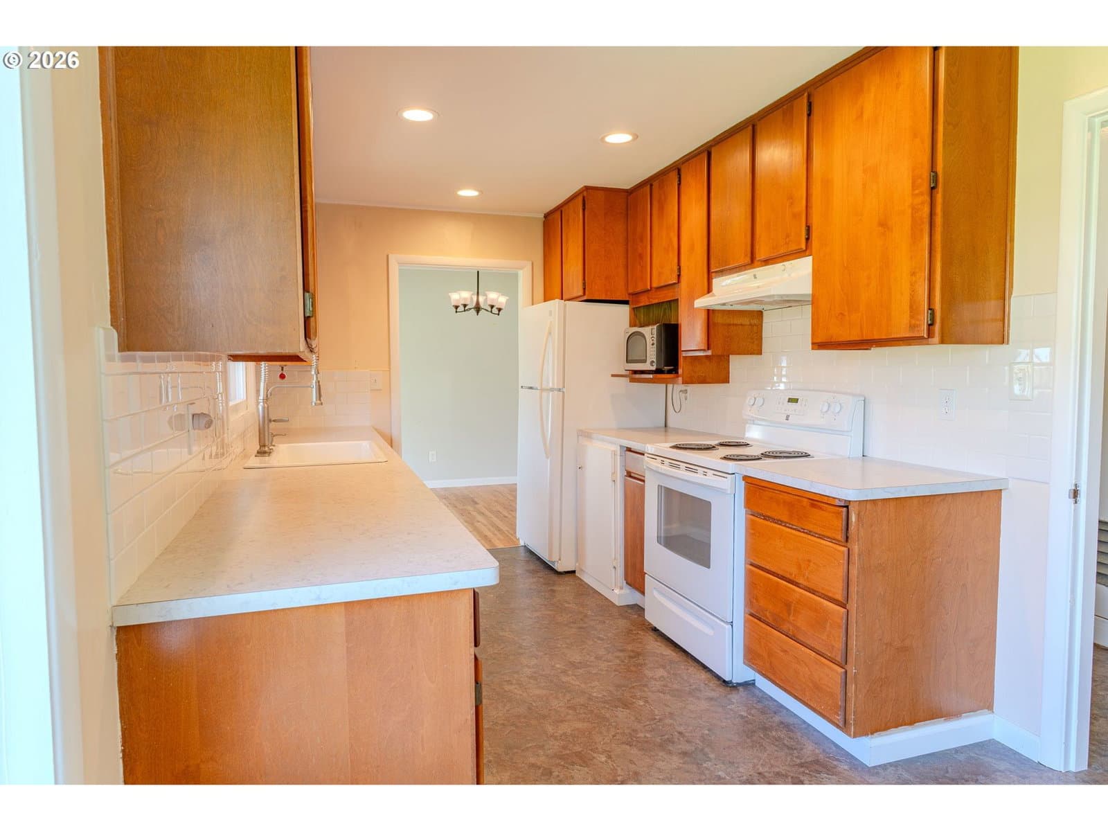 Move-in ready and centrally located in the heart of Clatskanie, this home offers comfort, character, and flexibility. This 2BD/1.5BA ranch-style house features solid hardwood floors throughout most of the space and a beautifully updated main bathroom. The spacious living room is warm and inviting with a cozy wood-burning fireplace, while the adjacent bonus room offers potential for a home office, playroom, exercise room, or easy conversion into a third bedroom. The updated kitchen features classic subway tile and a clean, light feel. Outside, enjoy a large fenced backyard - perfect for pets, entertaining, or relaxing.This is a wonderfully charming home with room to grow - don’t miss this one!!!