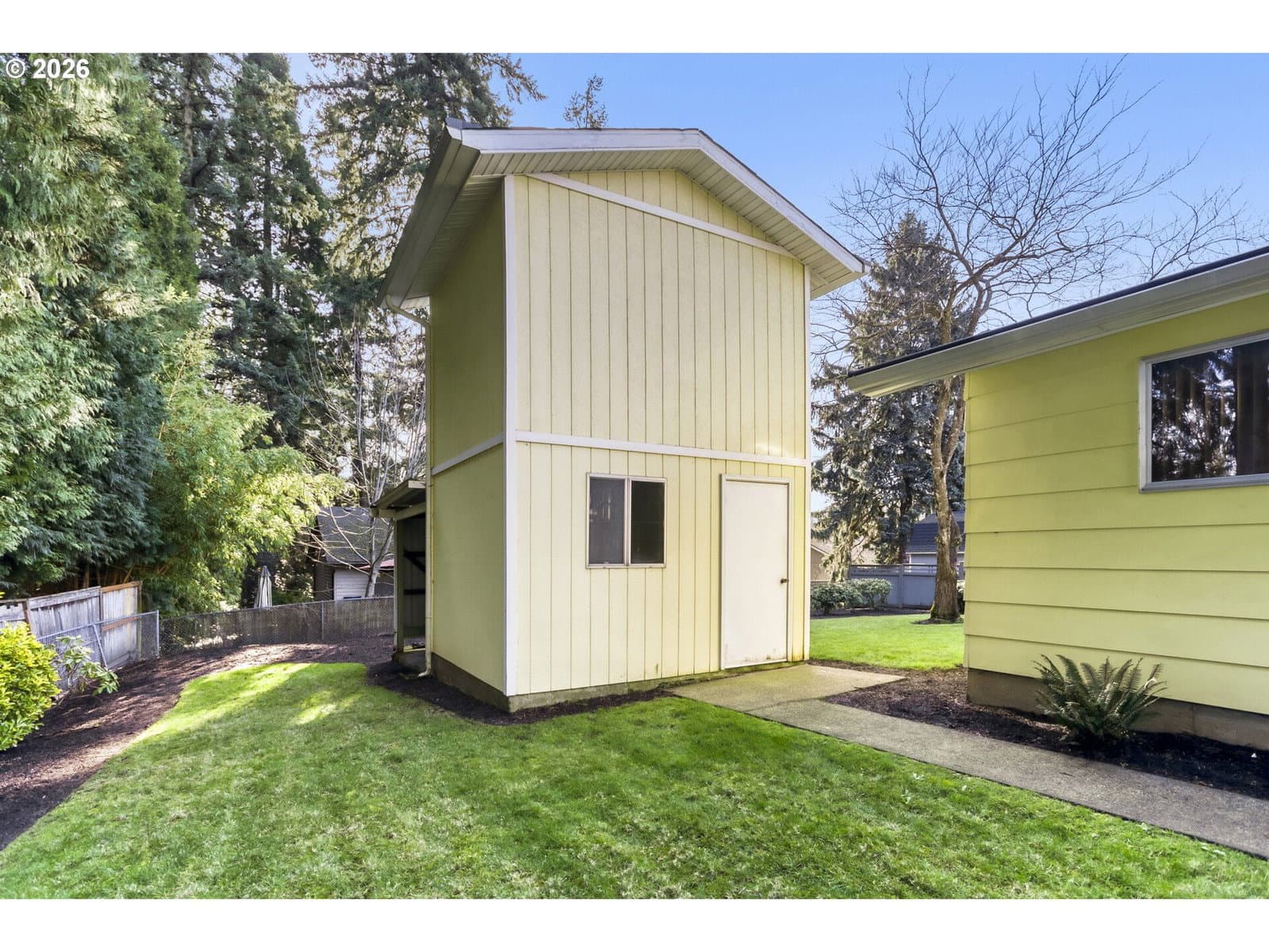 Newly updated one level Mid-Century home ready to move in! Views of wooded area from behind for pricacy! New quartz kitchen counter tops with full subway tile backsplash, and new Luxury vinyl plank floors. Great nook area off the kitchen with sliding glass door leading a 12x19 covered patio! Huge living room with new carpet and has cozy brick fireplace with gas insert that's tempature controlled by remote and has battery back up so it will provide radiant heat during power outage. Mini split Heatpump. Formal dining room. All 3 bedrooms have newly re-finished hardwood floors. Primary suite has a bathroom with walk-in shower. Laundry room with deep sink, Washer & Dryer included. Nice size finished and heated garage! Sprinkler system. Level lot over 10,000 SF with garden areas and mature landscaping. 2 story outbuilding that is 12x9 on each level with additional attached covered storage area. Long paved parking area for smaller RV's, toys or additional veihcles! You will love it! Click on the 3D tour! Please do not park on paved roadway :-)