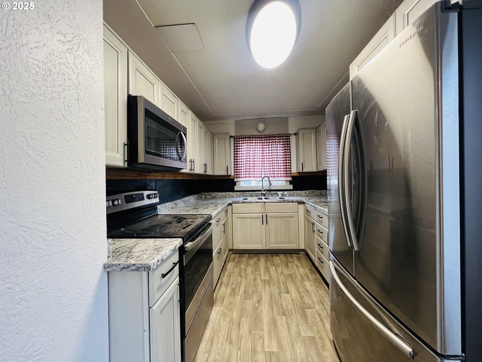 Great starter Home with some updates, New Flooring, newer windows, Newer Cabinets & counter tops, Spacious Living room, Painted exterior about 2 years ago, laundry room inside the home, recently replaced flooring, Carpet & Roof in the Garage, Private back yard and space to add bigger back yard !!