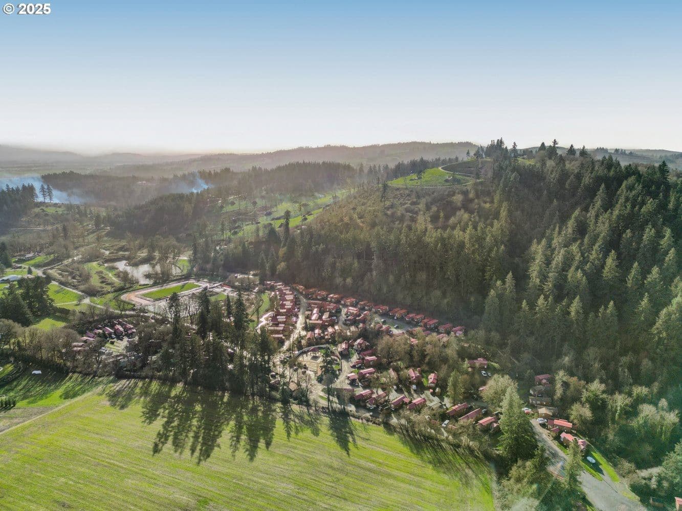 Beautifully maintained 1-bedroom, 1-bath Tiny Home on larger end lot in the tranquil, gated Hope Valley Resort community! Designed for easy living and minimal maintenance, this creek side home offers a peaceful, resort-style lifestyle where less upkeep means more time to relax and enjoy your surroundings. While the home may be tiny, the community and amenities are anything but! Enjoy stunning views of rolling hills and surrounding forest from your covered deck, perfect for morning coffee or evening unwinding. Inside, the home features beautiful flooring throughout, vaulted ceilings, a cozy main-level bedroom, kitchen with fridge, range, microwave and portable dishwasher, dedicated laundry space with 2-in-1 washer/dryer, and an 18x28 upstairs loft ideal for guests, a home office, or flex space. An 11x7 insulated storage shed provides room for your extra belongings. There's plenty of parking for guests. Hope Valley Resorts offers exceptional amenities including a swimming pool, private catch-and-release fishing lake, clubhouse, lodge, fitness center, basketball courts, tennis and pickleball courts, walking trails, community garden, dog park, storage units, and more, all in a serene, natural setting. Ideally located just one mile from Willamette Valley Vineyards and only a 5-minute drive to South Salem dining and shopping, this location truly can’t be beat. Home has new paint, new leaf guard gutters for added peace of mind. Updates include updated bathroom, blinds, carpet in 2025 and new countertops and mini-split in 2024. $992 park rent includes all park amenities plus water, sewer, garbage, and yard debris, making this an effortless, lock-and-leave lifestyle in a beautiful resort-like community. *Sellers are offering seller finance at 4.5% interest -