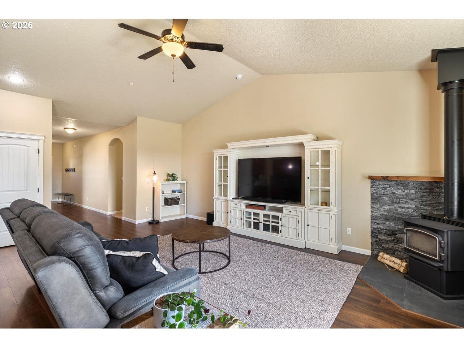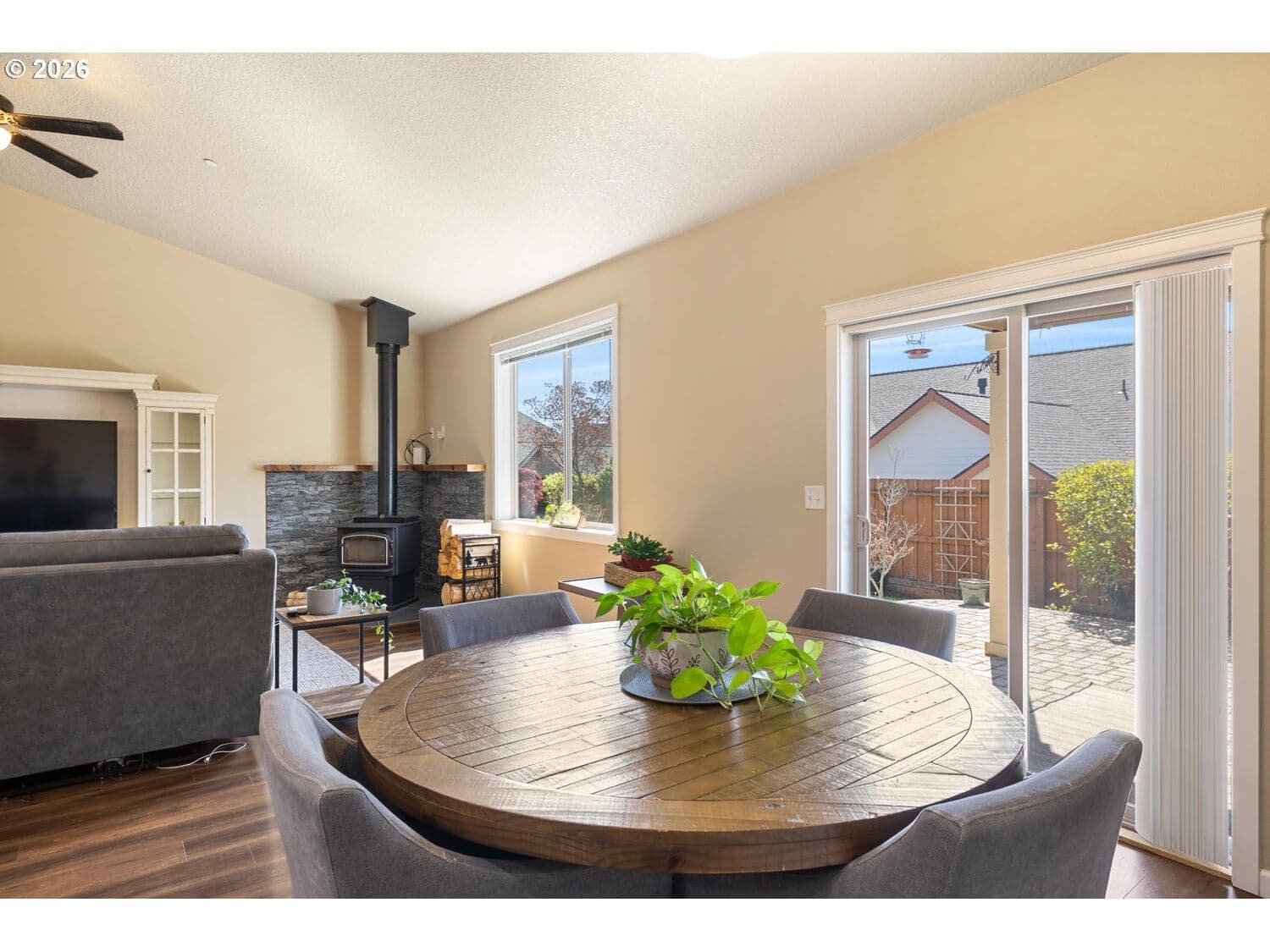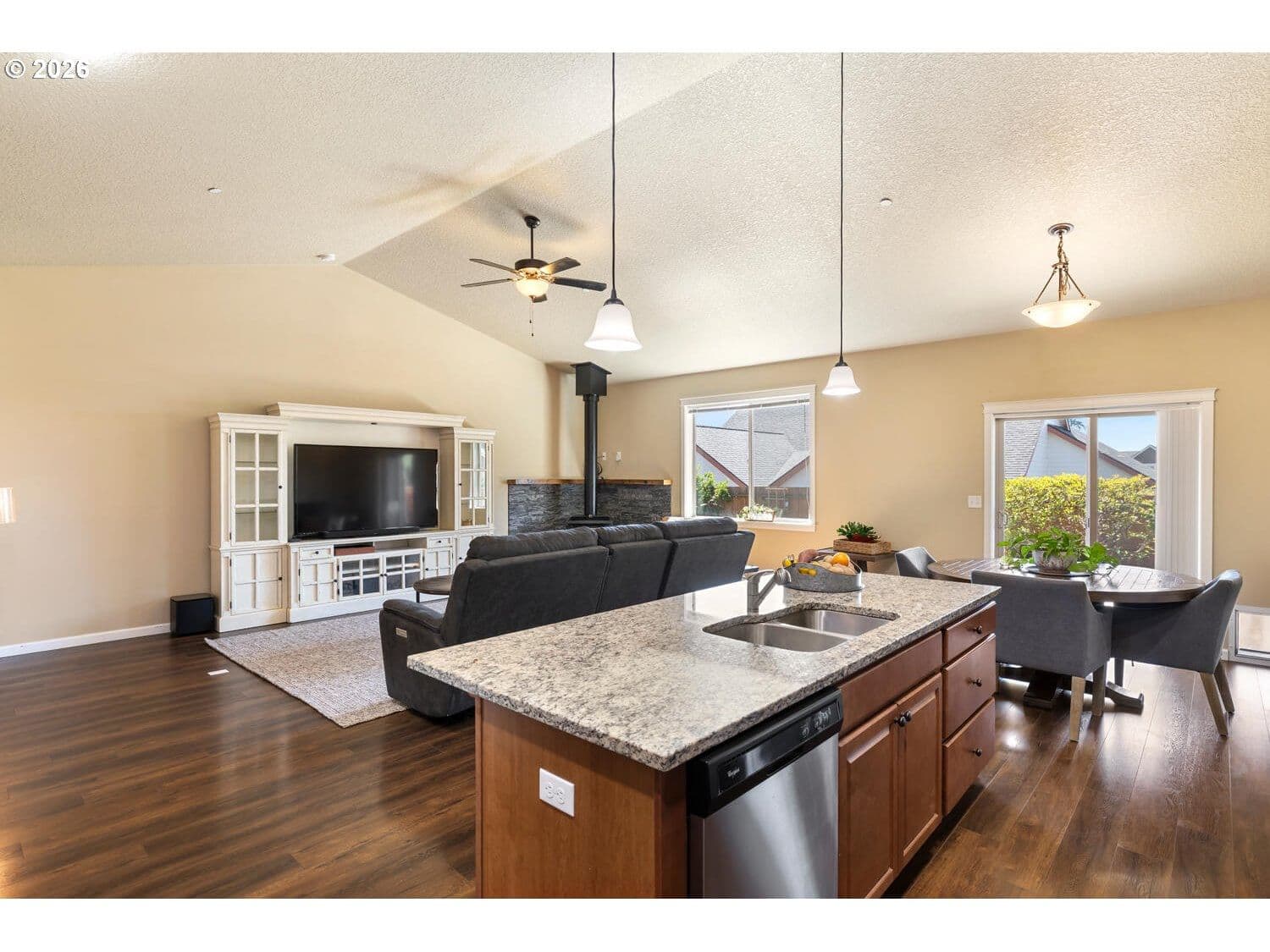 OPEN HOUSE SATURDAY 4/25: Noon to 2:00! There’s something straightforward about a well-designed single-level home. Movement is easy, spaces connect naturally, and daily life doesn’t require much thought or adjustment. Open kitchen and family room sit under vaulted ceilings, giving a sense of volume while keeping everything connected. It’s open without feeling oversized, and functional without feeling tight. Outside of the living space, the property offers a different kind of flexibility. A 3-car garage plus 12 foot gate span side access (with 30 AMP) creates room for the things that don’t always fit neatly—RVs, vans, trailers, or simply extra space to spread out. Original driveway extended 15 X 50. With owned solar and new exterior paint, the focus shifts away from maintenance and toward long-term usability. New freestanding wood stove, a ductless HVAC system for the garage & new Bryant Evolution Fan coil & 20 SEER Heat Pump. It’s a home that supports how people actually live— simple to navigate, adaptable, and built to handle both routine and change.