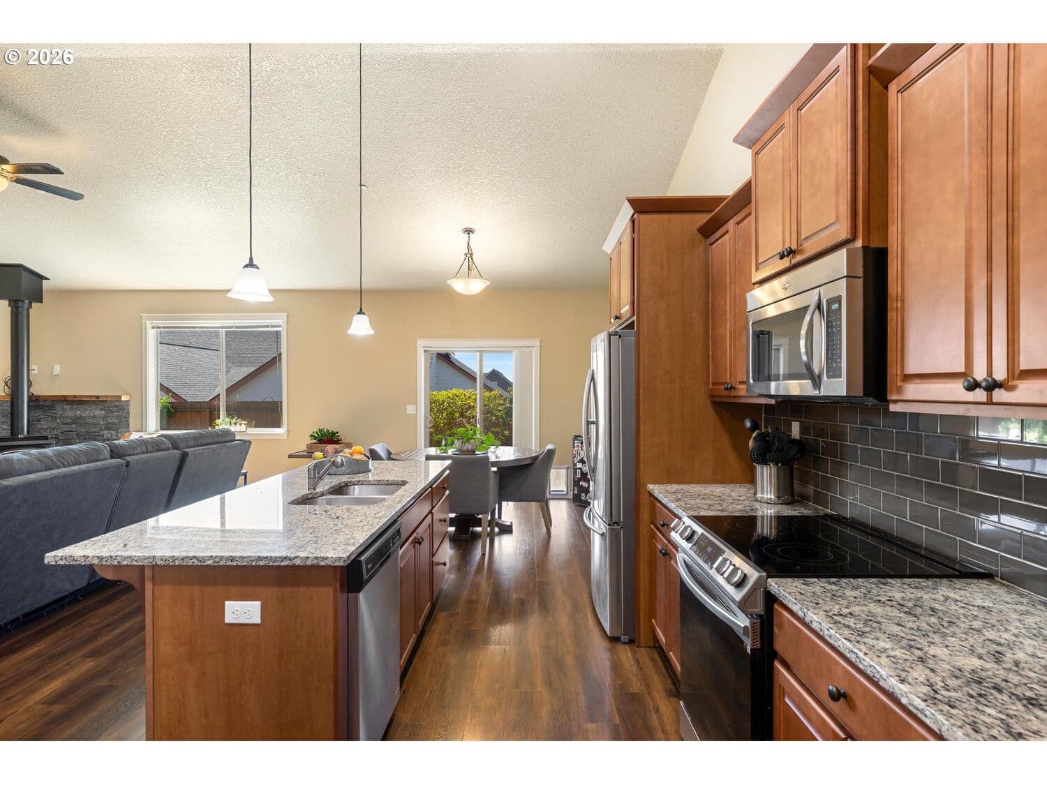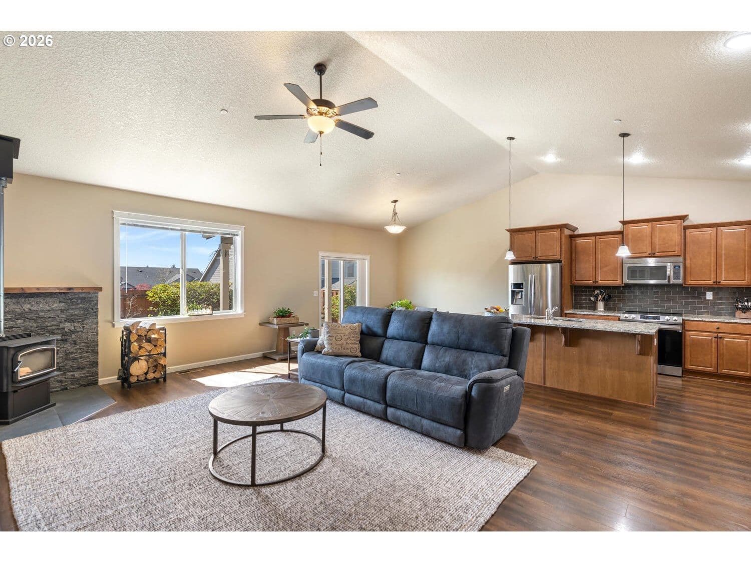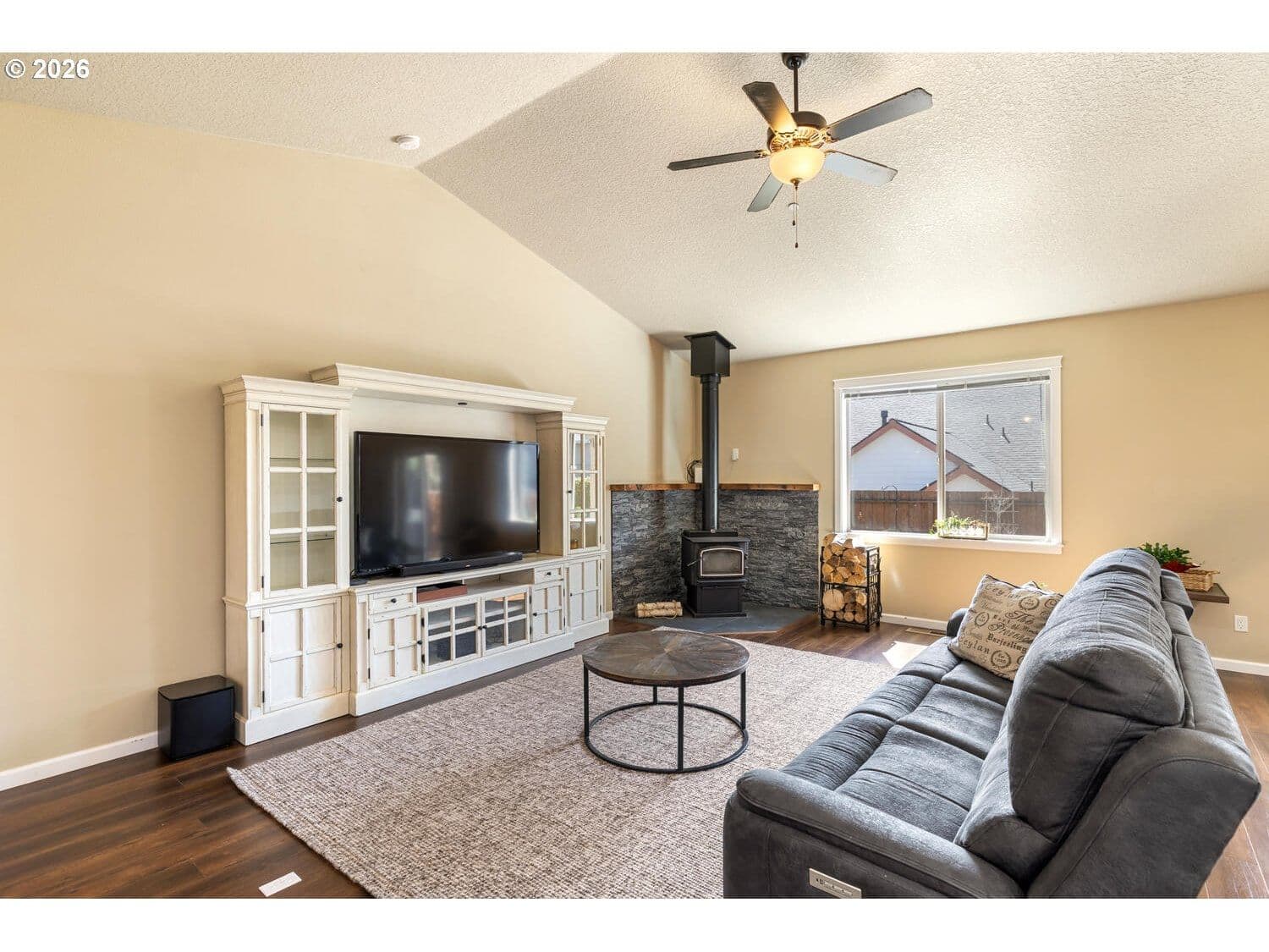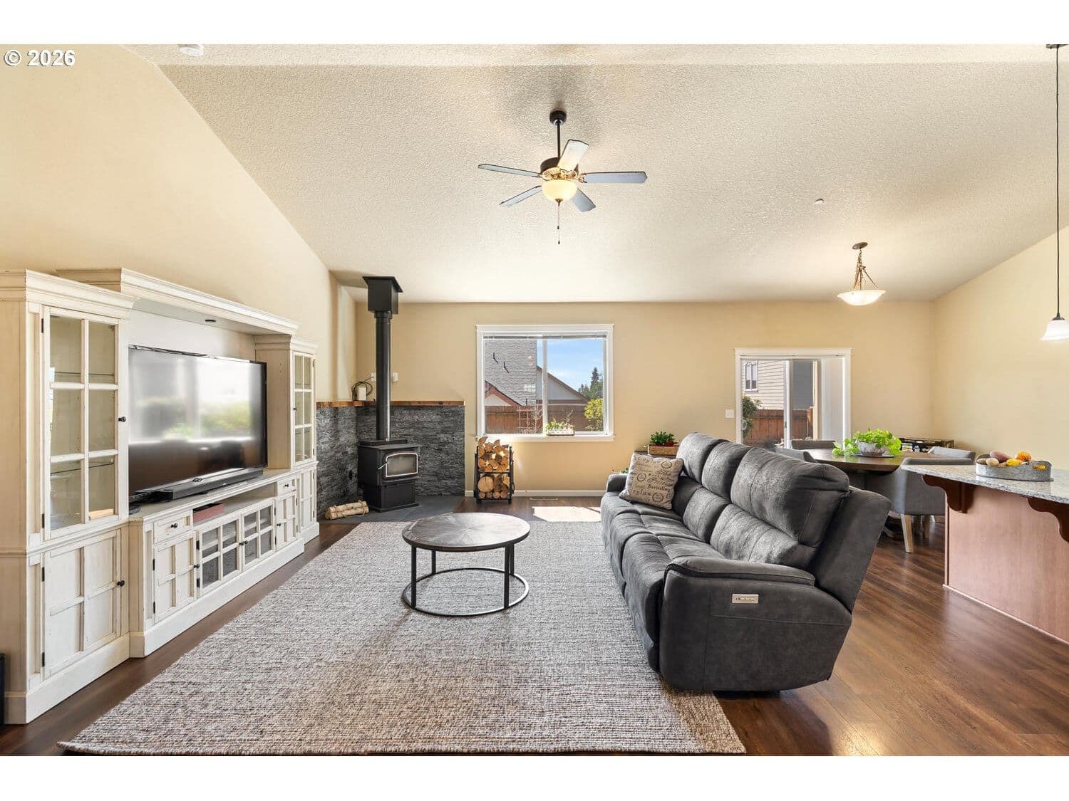 OPEN HOUSE SATURDAY 4/25: Noon to 2:00! There’s something straightforward about a well-designed single-level home. Movement is easy, spaces connect naturally, and daily life doesn’t require much thought or adjustment. Open kitchen and family room sit under vaulted ceilings, giving a sense of volume while keeping everything connected. It’s open without feeling oversized, and functional without feeling tight. Outside of the living space, the property offers a different kind of flexibility. A 3-car garage plus 12 foot gate span side access (with 30 AMP) creates room for the things that don’t always fit neatly—RVs, vans, trailers, or simply extra space to spread out. Original driveway extended 15 X 50. With owned solar and new exterior paint, the focus shifts away from maintenance and toward long-term usability. New freestanding wood stove, a ductless HVAC system for the garage & new Bryant Evolution Fan coil & 20 SEER Heat Pump. It’s a home that supports how people actually live— simple to navigate, adaptable, and built to handle both routine and change.