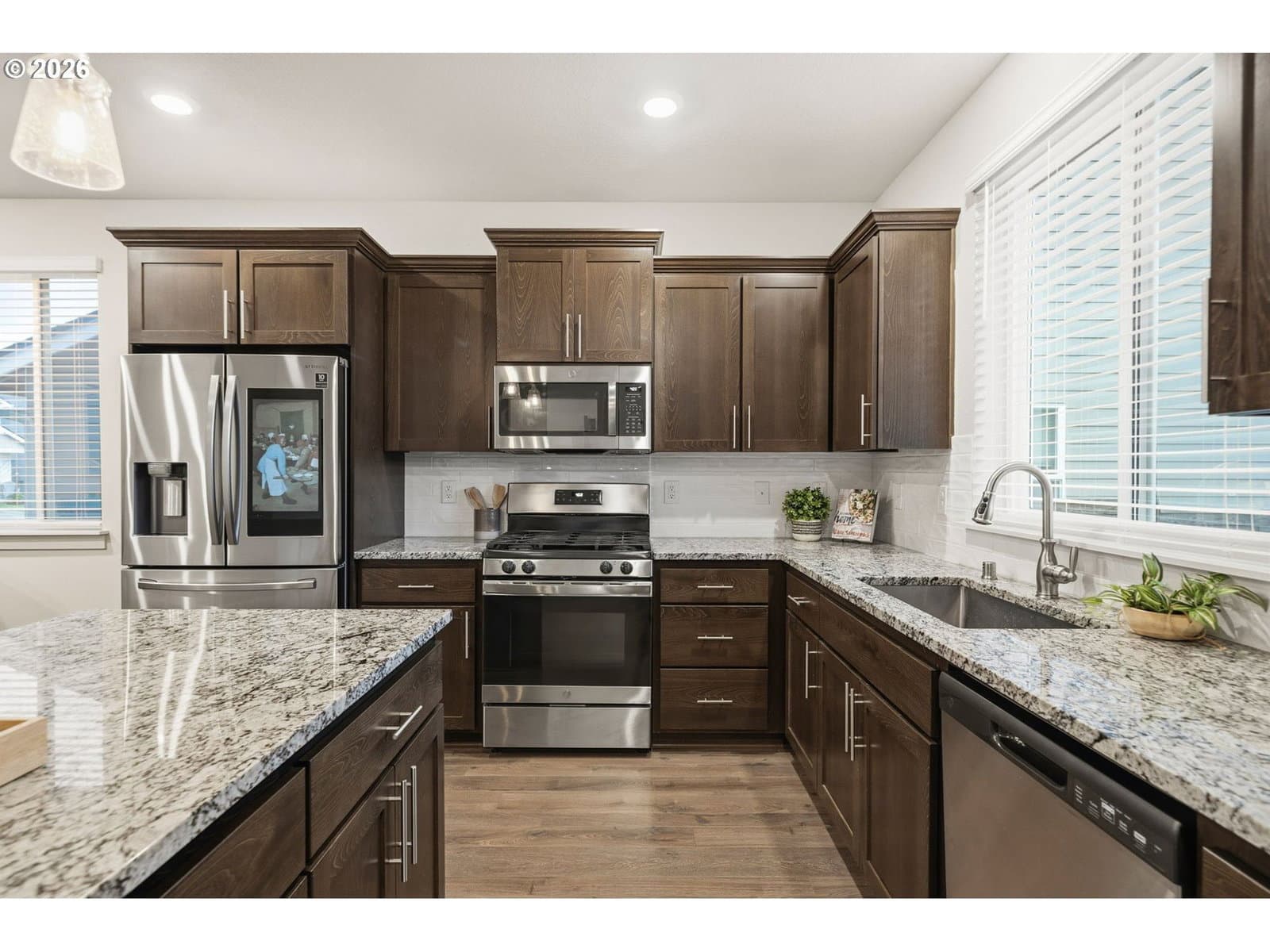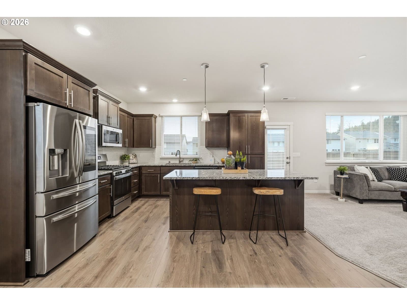 BEST VALUE IN THE NEIGHBORHOOD!!!Like-new home in the highly sought-after Green Mountain neighborhood of Camas! This light-filled, open-concept home features a stunning kitchen with a large granite island, stainless steel gas appliances, walk-in pantry, and modern finishes throughout. The main level boasts durable laminate flooring, a cozy gas fireplace, and a flexible entry space. Upstairs offers a spacious Owner’s Suite with walk-in closet and tiled shower, plus two additional bedrooms and a full bath.Enjoy smart home features including a smart lock and doorbell, tankless water heater, and high-efficiency heat pump with A/C. The fully fenced yard includes a patio and sprinkler system. Green Mountain amenities include a community center with pool and hot tub, park, playground, courts, trails, and more. Conveniently located near top-rated schools, shopping, dining, and Camas Meadows Golf Course! 12 minutes to downtown Camas, 23 minutes to PDX, 25 minutes to downtown Vancouver and 15 minutes to the new Camas/Washougal Waterfront.