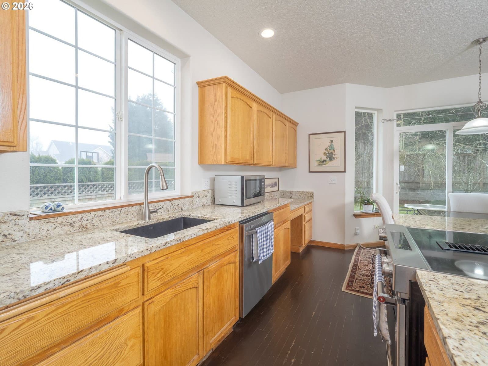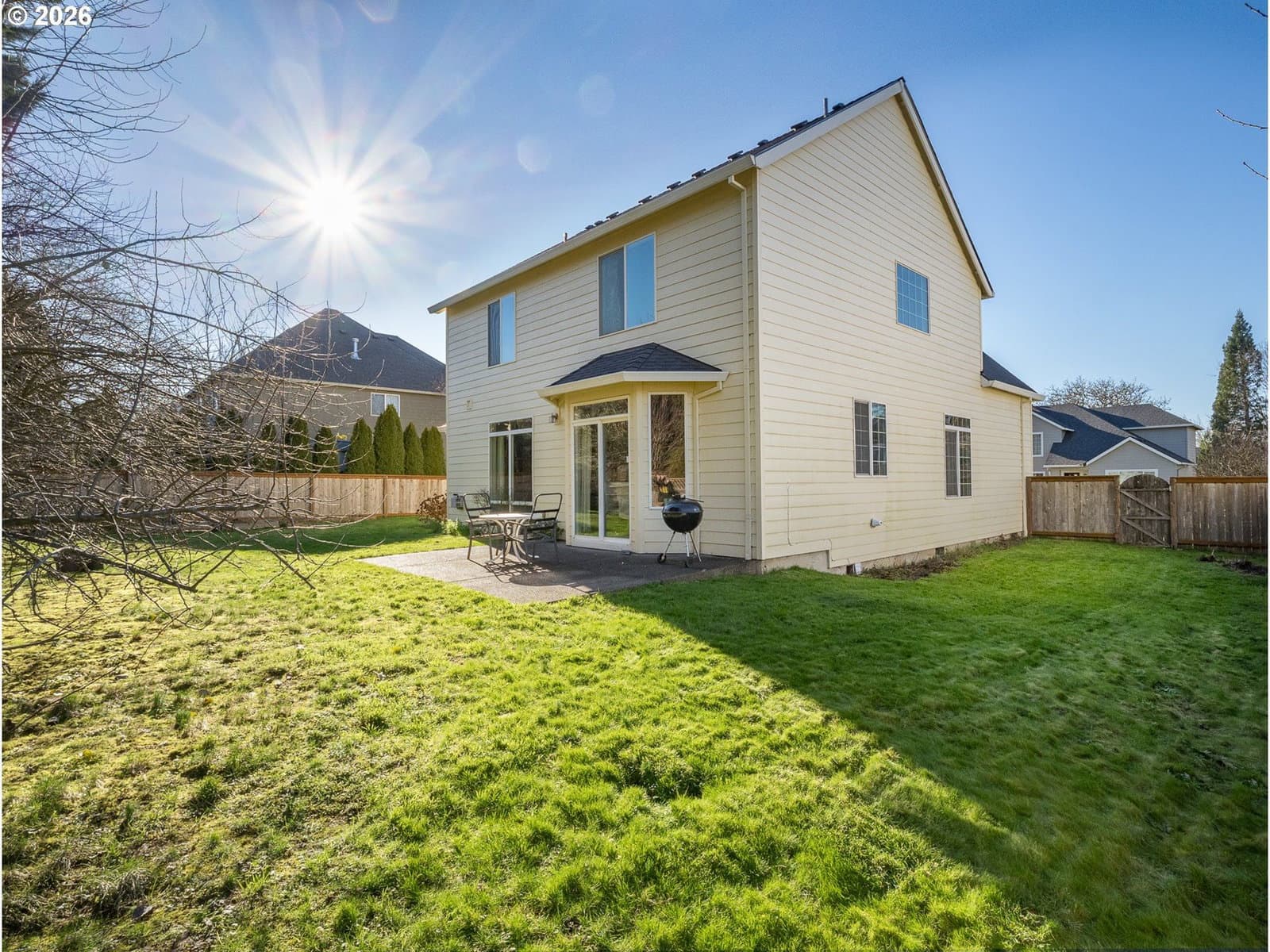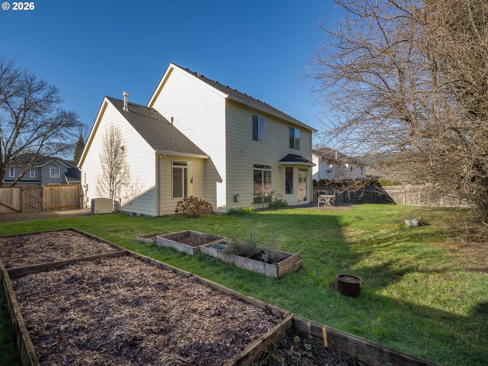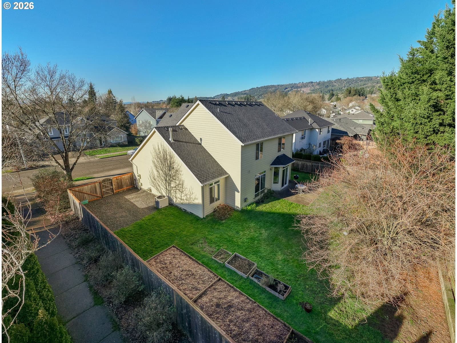 Light filled, functional, and full of charm, this home checks all the boxes. From the moment you arrive, the curb appeal shines, complete with RV parking behind a wide swinging gate and a brand new roof that adds peace of mind. Step inside to a bright front living room with vaulted ceilings and a dramatic picture window that floods the space with natural light. The heart of the home features a beautifully updated kitchen with new granite countertops, newer stainless steel appliances, abundant cabinetry, and a generous island perfect for meal prep, homework, and gathering with friends. The kitchen flows seamlessly into the family room, where a cozy gas fireplace sets the scene for relaxed evenings. A sunny breakfast nook opens through sliding doors to the patio and fenced backyard, complete with raised garden beds, ideal for summer dinners and weekend projects. A main level 4th bedroom offers flexibility as a home office, playroom, or guest retreat. Upstairs, you will find three additional bedrooms, a convenient laundry room, and a primary suite with a walk-in-closet, dual sink vanity, a walk in shower, soaking tub, and peaceful views of Chehalem Mountain. All of this in a desirable neighborhood near Tom Gail Park. This is the kind of home that feels good the moment you walk in. Call today to schedule your private showing.